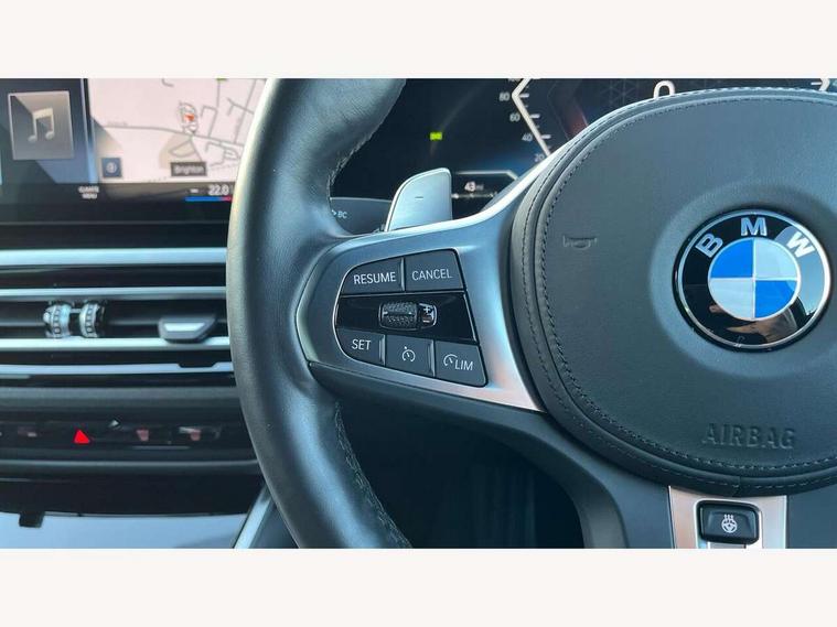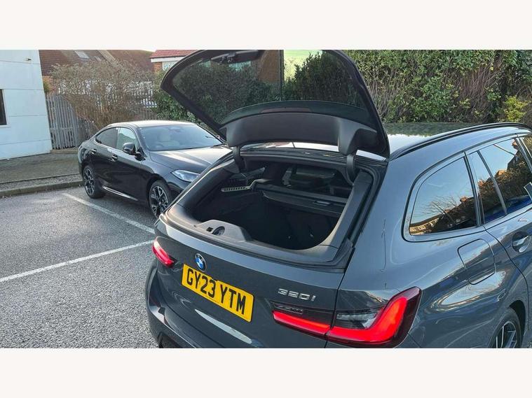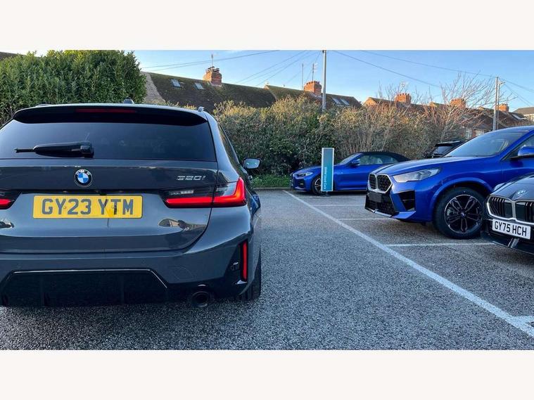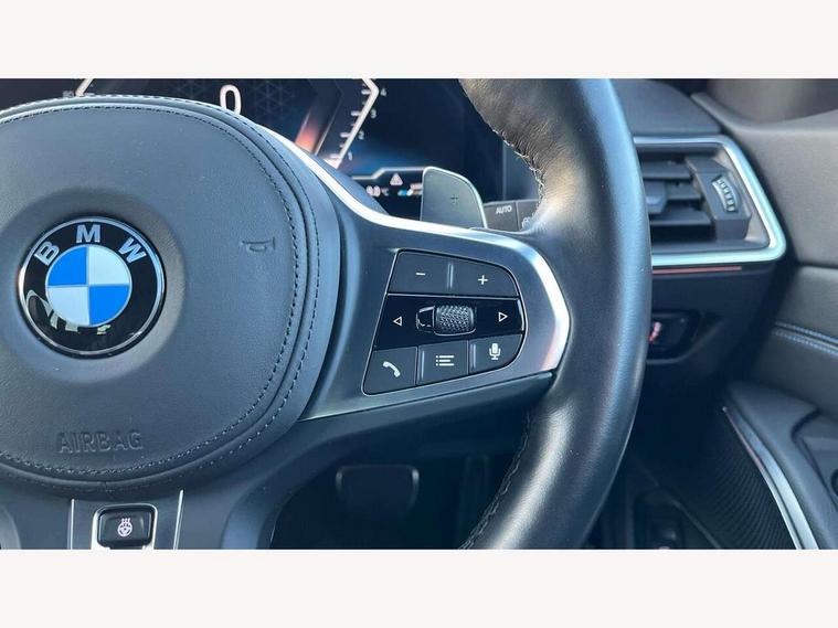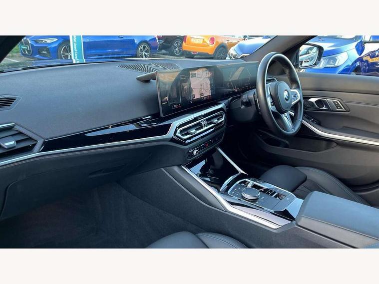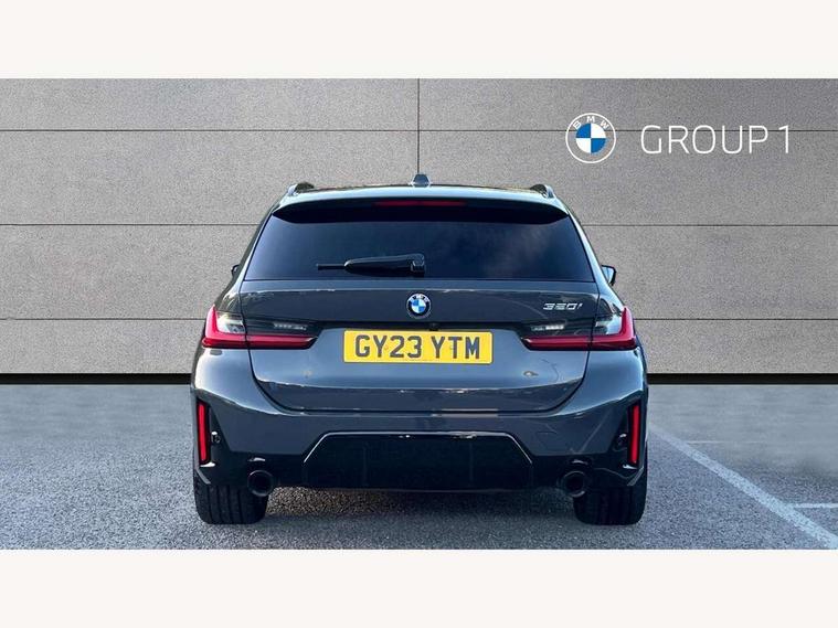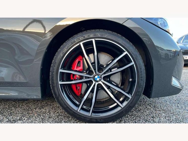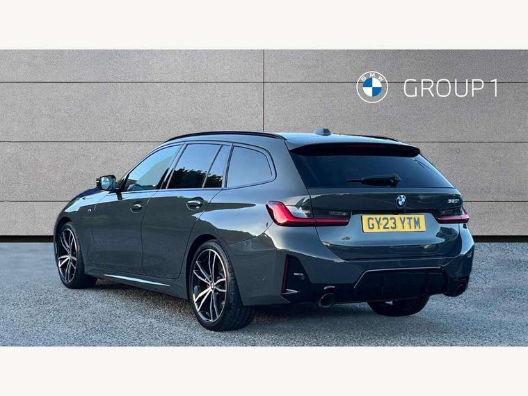 Active guard plus, Attentiveness assist, Automatic Start/stop button, BMW iDrive, BMW Teleservices, Condition based service, ConnectedDrive Services, Driving experience switch, Live cockpit plus with Navigation + 12.3" instrument display + 14.9" display, Intelligent voice assist, 2 USB, 4G LTE connect, Oil sensor for level and grade, Preparation for driver assistance, Shifting point display, Variable sport steering, Double joint spring strut front axle, Fuel tank breather system, M sport suspension, Sport automatic transmission with steering-wheel mounted gearshift paddles and launch control, DAB tuner, 3rd brake light, Acoustic glazing, Automatic headlight beam throw control with load dependent regulating reaction, dynamic compensation of braking dive and acceleration squat, BMW emblem, engine compartment lid and tailgate, Body colour roof fin, Door sill strips, Electric windows - front and rear, with open/close fingertip control, anti-trap facility and comfort closing, Follow me home headlight function, Front and rear bumper system with replaceable deformation elements, Front apron plastic in body colour, Fuel filler flap - right rear in body colour, Heated washer jets, High gloss shadow line exterior trim, High gloss shadow line roof rails, Illuminated bow type door handles in body colour drivers side with door lock, Interior rear view electrochromatic mirror with automatic anti dazzle function, LED headlights with LED daytime running lights and LED turn indicator, LED rear lights, Licence plate panel integrated into front bumper and tailgate, Matt black B-pillar finsher, Matt black window recess cover, Model designation on right side of tailgate, One piece front bumper cover including towing eye cover in body colour, Rain sensor with automatic headlight activation, Rear side wing doors, Rear wiper, Reversing lights, Side frame decorative moulding black matt, Visible exhaust tailpipe finisher, Welcome lights in interior and door handle area, 12V power socket in front storage compartment, 2 front cupholder in centre console with clamping elements and matt black inlay, 3 seat bench in 2nd row, 3 zone automatic air conditioning, 40:20:40 split folding rear seat with loading system, Ambient inside door handle light, Ambient light design projected onto the left and right entering and exiting area, Ambient lighting front and rear with 9 selectable colours, Ambient storage compartment lighting in the centre console, Anthracite headlining, Armrest integrated in front and rear door trim + front centre console armrest, BMW ID, Contour lighting in instrument panel and door trim panel, Cruise control operation in steering wheel, Driver backrest width adjustment, Folding rear centre armrest with 2 cupholders, Front and rear ambient footwell lighting, Front and rear door exit lighting (left / right), Front and rear headrests, Front and rear reading lights, Front and rear velour floor mats, Front sport seats, Heated front seats, Height adjustable mechanically and infinitely variable steering column, Illuminated armrest storage compartment, Illuminated glove compartment, Illuminated luggage compartment, Lashing eyelets in luggage compartment, M Sport multifunction leather steering wheel, Make-up mirror lights, Single front passenger seat, Standard seat for driver and passenger with manual adjustment, Sunvisors with vanity mirrors and ticket pocket, Toolkit located in luggage compartment, Connected pack professional - 3 Series Saloon/Touring, Interior and exterior mirror pack - 3 Series Touring/Saloon, M Aerodynamics package - 3 Series Saloon/Touring, M sport exterior styling pack - 3 Series Saloon/Touring, Storage compartment pack - 3 Series Saloon/Touring, 3x3 point rear seatbelts, BMW emergency call, Child locks on rear doors, Crash sensor activating of airbags, Unlocking doors, hazard warning lights, interior light, safety battery terminal, Driver and front passenger with seat occupancy detection for driver's and passenger side, Driver and passenger side airbags, body protection at side and airbags deploy from seat backrests, Dynamic brake control, Dynamic stability control + (DSC+) - Anti-lock Braking System (ABS) with brake assist and cornering brake control + Automatic Stability Control (ASC), Dynamic Traction Control - DTC, Electric parking brake including automatic hold function and automatic release of the parking brake when driving off, Electronic differential lock control (EDLC), Head airbags in 1st and 2nd row, head protection at side, curtain airbags open from headliner above 1st and 2nd row, Plastic fuel tank, Side impact protection, Tyre pressure monitoring with three level warning strategy, Ventilated front and rear disc brakes, Warning triangle and first aid kit, Alarm system, Centre lock switch, Closing system with central locking, Electronic vehicle immobiliser,