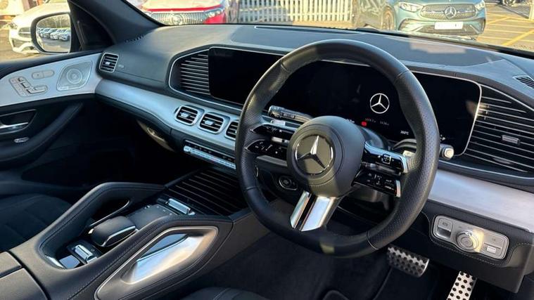 12.3 High resolution wide screen cockpit display with choice of three display styles Classic, Progressive or Sport and unique ambient lighting setting, 360 degree view camera, Active parking assist with PARKTRONIC, Attention assist, Brake wear warning display, Direct steer speed sensitive steering, DYNAMIC SELECT with a choice of driving modes (ECO, Comfort, Sport and Individual), Easy-pack tailgate - Powered opening/closing automatically, ECO start/stop function, Hard-disk navigation, MBUX voice control activated by keywords "Hey Mercedes", Mercedes Benz emergency call system, Mercedes me connect - vehicle set up and monitoring, Outside temperature display, Pre-installation for digital key transfer, Remote boot release, Service indicator (ASSYST), Status display for rear seat belts in instrument cluster, Traffic sign assist, Trip computer in multifunction display showing current fuel consumption, Wireless charging, Wireless smartphone integration including Apple CarPlay and Android auto, 85 litre fuel tank, 9G TRONIC 9 speed automatic transmission, Airmatic air suspension with adaptive damping system, Diesel particulate filter (DPF), Mild Hybrid starter alternator, Additional USB connection, Bluetooth interface for hands free and audio streaming, Burmester surround sound system, DAB digital radio tuner, Front and rear USB ports, Sound personalisation, Adaptive brake lights, AMG bodystyling front and rear aprons, Auto headlights, Automatically dimming rear view mirror, Body coloured bumpers, Electric windows with one touch opening/closing and obstruction sensors, Electrically adjustable, heated, folding exterior mirrors, Exterior styling - front bumper, radiator grille and front air intakes, Heat insulating dark tinted glass, LED 3rd brake light, LED daytime running light signet, LED rear lights, Magic vision control, Multibeam LED headlights with adaptive highbeam assist plus, Radio aerial integrated into rear window, Rain sensing windscreen wipers, Rear side wing doors, Rear wiper, Roof rail system, Top surround of side windows in polished aluminium, Transparent Bonnet, Visible twin pipe exhaust system integrated into bumper, Waistline in polished aluminium, 3 spoke flat bottomed Multifunction sports steering wheel in nappa leather, 4 way adjustable front head restraints and 2 way rear head restraints, 4 way lumbar support for driver and front passenger, 40:20:40 split folding rear seats, AMG floor mats, Artico/Microcut microfibre upholstery, Automatic child seat recognition sensor, Black fabric roof liner, Electric height/reach adjustable steering column, Electrically adjustable front seats with memory function, Front centre armrest with stowage compartment and illuminated grab handles, Gearshift paddles on steering wheel, Glove compartment - lockable, air conditioned and illuminated, Heated front seats, Interior lighting - 64 colour Ambient lighting, Luggage compartment cover, Seat occupancy sensor for front passenger seat, Second row three seats, Single front passenger seat, Sports pedals in brushed stainless steel with rubber studs, Sunvisors with illuminated vanity mirrors, THERMATIC 2 zone automatic climate control, Touchpad, Keyless go comfort package - GLE, Night package - GLE, Active bonnet, Airbags - driver and front passenger, front sidebag, pelvis bag and window airbags, Anti-lock braking system (ABS), Black seat belts, Childproof locks manually operated for rear doors and electrically operated for rear power windows, Drivers knee airbag, Electronic parking brake, Electronic Stability Programme (ESP), ISOFIX child seat points with automatic child seat recognition, Perforated front brake discs and brake calipers with Mercedes-Benz lettering, Pre safe impulse side, Three point rear seat belts, Tyre pressure monitoring system, Warning triangle and first aid kit, Alarm system/interior protection/immobiliser, Central locking with interior switch, automatic locking and crash sensor with emergency opening function, Chrome surround in electric key, Guard 360 degree vehicle protection plus, Brushed aluminium trim elements, Dashboard and door beltlines in ARTICO man made leather with contrast top stitching, 21" AMG 5 twin spoke light alloy wheels painted in bi colour, TIREFIT with tyre inflation compressor,