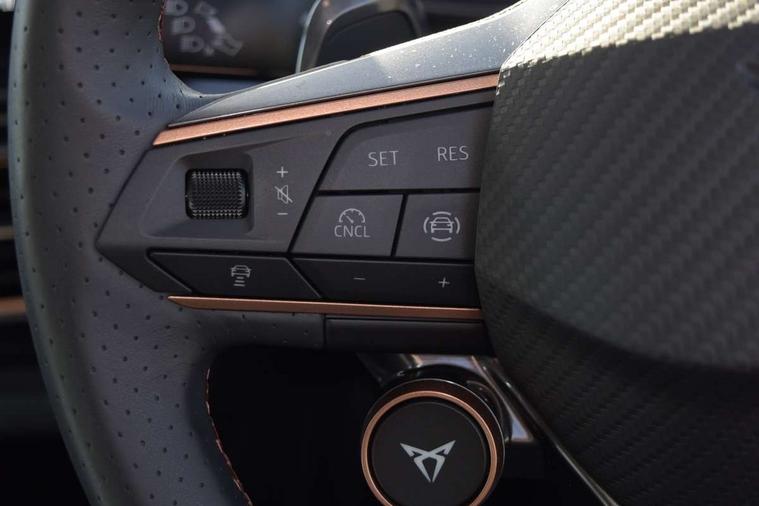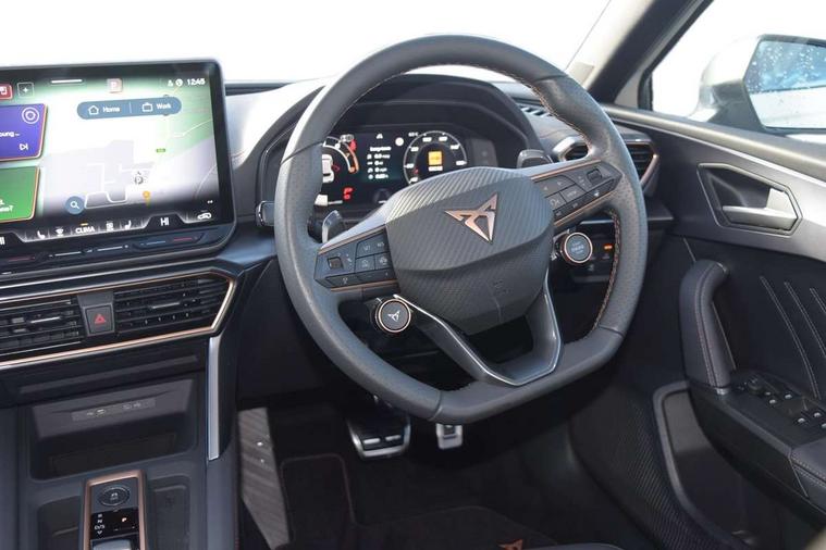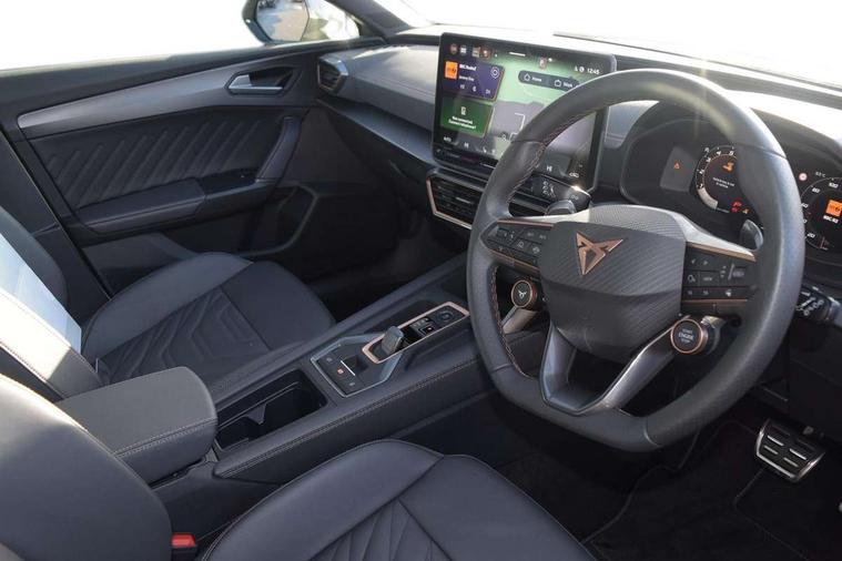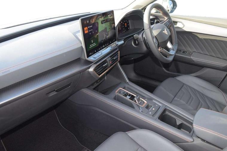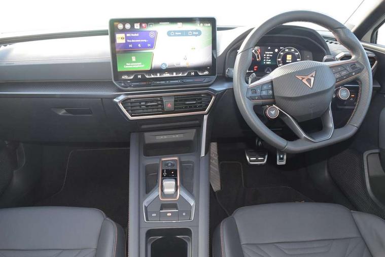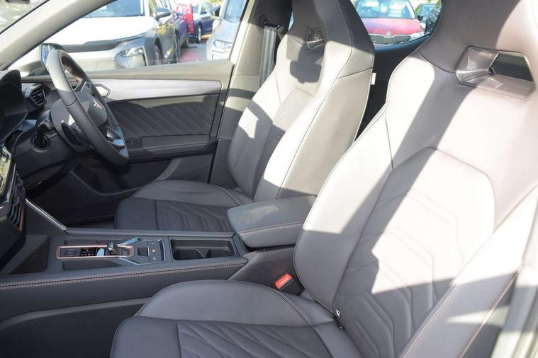 Adaptive cruise control with follow-to-stop and speed limiter, CUPRA mode drive profile selection with throttle response and gearshift mode, Digital cockpit, Driver alert system, Dynamic road sign display, E-call, Four x USB Type C ports (2 in front and 2 in rear), Front and rear parking sensors, Front assist with forward collision warning braking reaction to vehicles, pedestrians and cyclists, Front cross traffic assist, Full link smartphone integration with Mirror Link, wireless Apple CarPlay and wired Google Android Auto, Intelligent park assist, Lane change assist with emergency assist, Lockable tailgate, Rear view camera, RPM, trip computer, outside temp gauge, instrument light brightness, low fuel warning light, lights on reminder, gearshift indicator, Service interval indicator, Side and exit assist, Start/stop system with regenerative braking, Wireless phone charger, Auxiliary input socket, Auto dimming rear view mirror, Body colour door handles, Body coloured bumpers, Cupra matrix LED ultra headlight with variable light distribution, high definition LED w/signature w/ceremony, Cupra sports bumpers, Dark tinted rear windows, Electric front/rear windows, Electrically adjustable, heated and folding door mirrors, High beam assist, High-resolution matrix beam plus digital projection, LED front fog lamps with cornering function, LED rear fog lamp, Rain sensing wipers, Rear diffuser with twin oval exhaust pipe on each side, Rear side wing doors, Rear wash/wipe, Separate daytime running light with automatic headlight control and coming home feature, Third brake light, Welcome light with logo projector in door mirrors, 12v power supply in centre console, 3 seat bench in 2nd row, 5 headrests, 60/40 split rear bench seat with armrest, Ambient lighting (glovebox, footwell, ambient lighting multicoloured), Black headlining, Cupra sports pedals, CUPRA Supersports, heated steering wheel with satellite buttons, Electrically adjustable driver seat and lumbar support with memory function + manually adjustable passenger seat, Folding boot cover, Front and rear reading lights X 4, Front centre armrest, Heated front seats, Height/reach adjust steering wheel, Illuminated interior front door sills, Interior wraparound lighting, ISOFIX points in outer rear seats with top tether anchorage points, Leather upholstery, Single front passenger seat, Storage pockets on rear of front seats, Sunvisors with illuminated mirror, Three zone climate control, Dynamic and comfort pack - Leon Cupra, Media system plus with 12.9" display + navigation pack - Leon Cupra, 3 point seatbelts on all rear seats, ABS, Brake control system - ESC and brake booster, Child proof door locks, Cupra black brake calipers, Disc brakes in front, Driver and front passenger airbags with front passenger airbag de-activation, front side and curtain airbags, Electronic parking brake, Hill hold control, Pre-crash front and rear seat belt tensioner, window closure and hazard lights, Rear disc brakes, Seat belt reminder for front and rear seats, Tiredness recognition system, Tyre pressure monitoring system, Anti theft alarm system with interior monitoring in cab, backup horn and towing protection, KESSY Advanced - Keyless start, keyless entry, Locking wheel bolts, Chrome and copper interior detailing, 19" Mistral machined R black and silver alloy wheel with 91Y tyres, Breakdown kit, Tool kit,