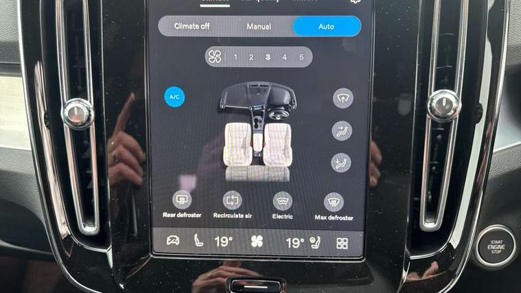 12.3" Progressive Driver Display, 9" centre console portrait touch screen, Adjustable steering wheel force, Android auto (Wired), Apple carplay (wired), Bluetooth handsfree system, Driver alert control, Driver assistance (pilot assist and adaptive cruise control), Driver awareness - Blind spot information system with steer assist, cross traffic alert with autobrake and rear collision warning and mitigation, E-call, Front and rear parking sensors, Front park assist, Google automotive services - Enabled entertainment apps, navigation with google maps, voice recognition with google assistant, Hands free power tailgate, Intelligent speed assistance, Lane keeping aid, Oncoming Lane Mitigation, Speed sensitive steering, Volvo cars services with app - Driving journal, emergency and breakdown call, engine remote start, remote door locking/unlocking and vehicle dashboard, Wireless/Inductive Mobile Phone Charging, Automatic transmission with start/stop and manual change functions, Dynamic chassis, DAB Digital radio, Steering wheel mounted remote controls, Adaptive brake lights with high level LED brake lights, Auto dimming feature for exterior door mirrors, Auto dimming interior mirror, Auto folding and heated power door mirrors, Automatic headlamp levelling, Automatic LED Headlights + Active high beam incorporating daytime running lights, Front aluminium tread plates, Front and rear electric windows, High gloss black front and rear skid plate, High gloss black front bumper deco, High gloss black mesh front grille with high gloss black surround, High gloss black window trim, Home safe and approach lighting, Integrated roof rails in high gloss black, LED front fog lights, Puddle lights, Rain sensor with automatic windscreen wiper activation, Rear side wing doors, Rear wiper, Roof antenna, Roof spoiler, Visible VIN plate, 12V socket in front tunnel console and luggage compartment, 2-Zone electronic climate control with CleanZone air quality system and pollen filter, 3 seat bench in 2nd row, 3 Spoke tailored steering wheel with chrome trim, 60/40 versatile split folding rear seat, Centre console cupholders and storage, Charcoal carpet and floor mats, Charcoal headlining, Connect suede textile/microtech upholstery, Flexible load floor and grocery bag holder, Front headrests, Front seat cushion extensions, Glovebox bag hook, Heated front seats, Height adjustable passenger seat, Height/reach adjustable steering column, High gloss centre tunnel deco, High level illumination - Front door pocket, front side step (under door), tailgate, instrument panel, front door inlay, rear courtesy&reading lights, Integrated waste bin, Isofix attachments on outer rear seats, Load cover, Load protection net, Mid level illumination - Front footwell, luggage & glovebox compartment, front cabin courtesy & reading lights, illuminated vanity mirrors+ticket holder, Multi directional lumbar support for driver and passenger seat, Power driver seat with memory + exterior mirrors memory, Rear armrest with cupholders, Rear headrests, Single front passenger seat, Underfloor luggage compartment storage, Climate pack without heated front seats - XC40, 3x3 point rear seatbelts, City safety with steering support with Pedestrian + cyclist + front collision warning with full auto brake and rear auto brake, Driver and passenger airbags, Drivers knee airbag, Electronic parking brake with auto hold, First aid kit, Front and outer rear seatbelt reminder and pretensioners, Front seats SIPS airbags, Hill descent control - Off-road drive mode, Hill start assist, IC (Inflatable Curtains) - Full Length, Passenger airbag cut-off device, Power child locks on rear doors, Road sign information display, Run off Road Protection, SIPS (Side Impact Protection System), Slippery road and hazard light alert, Stability and Traction Control with Spin control, Engine Drag Control and Corner Traction Control, Tyre pressure monitoring system, Vehicle deceleration control with Anti-lock Brake System, Electronic Brake Distribution and Emergency Brake Assist, Warning triangle, WHIPS whiplash protection system - front, 2 x Key integrated remote control central locking including with deadlocking system and auto open/close windows, Anti-theft alarm including immobiliser/volume sensor + level sensor, Keyless drive includes keyless entry and keyless start, Locking wheel nuts,