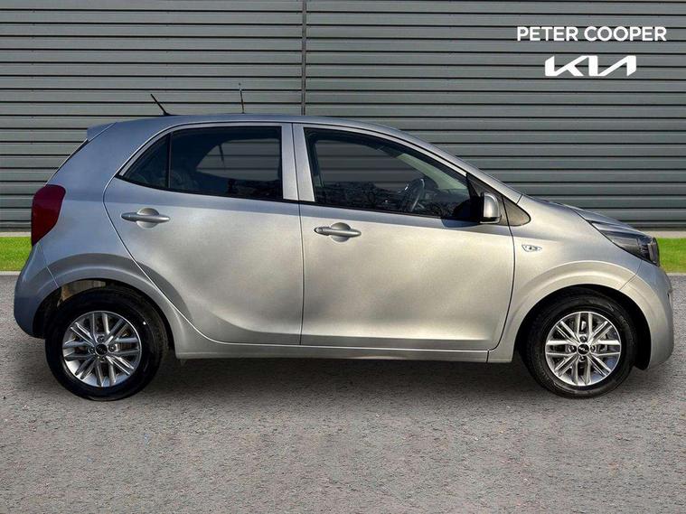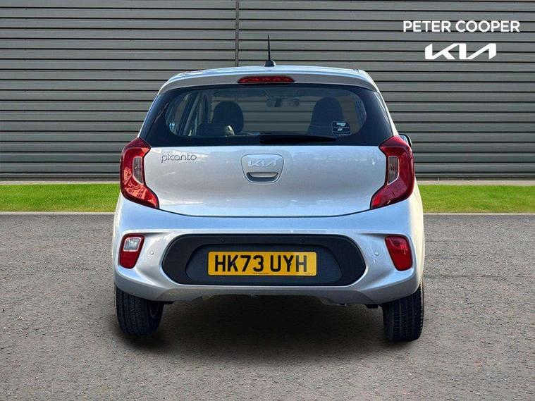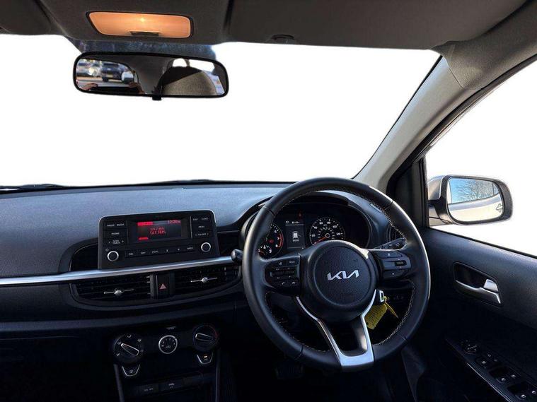 3.8" monochrome audio display with RDS and DAB, 4.2" supervision monochrome cluster display, Emergency call service, Emergency stop signalling system, External temperature gauge, Forward Collision-Avoidance Assist (FCA) - City, Motor driven power steering, Tachometer, Tailgate, Trip computer, 4 speaker audio system, Bluetooth with music streaming, Steering wheel mounted controls, USB ports for connection of a media device, Automatic headlight control system, Black radiator grille with chrome surround, Body colour bumpers, Body colour mirrors and door handles, Day/night rear view mirror, Daytime running lights, Electric adjustable heated door mirrors, Front and rear electric windows with drivers's auto up/down function, Headlamp levelling, Heated rear window, High mount brake light, MFR - Multi Focus Reflector halogen headlights with black bezel, Rain sensor, Rear fog lights, Rear side wing doors, Rear wash/wipe, Speed variable front wipers, Tinted glass, Visible VIN plate, Welcome and follow-me home light functionality, 1 x rear coat hook, 12V power point front, 2 seat bench in 2nd row, 3 x passenger assist grips, 60/40 split/folding 2nd row of seats, All round height adjustable headrests, Cupholders in centre console, Driver and front passenger sunvisor with vanity mirror, Driver seat height adjust, Front cabin lights, Glovebox, High gloss lower centre fascia trim, door armrest and air vents, ISOFIX Child seat top tethers and anchor fixings, Leather trimmed steering wheel and gearshift, Luggage area light, Luggage area parcel shelf, Manual air conditioning, Passenger front seatback pockets, Premium cloth upholstery, Silver paint finished interior door handles, Single front passenger seat, Slide/reclining front seats, Tilt adjustable steering wheel, Advanced Driver Assistance Pack - Picanto, 2 x 3-point rear seatbelts, ABS/EBD, Automatic unlocking of doors in case of impact, ESC + BAS + VSM + HAC, Front passenger airbag cut-off switch, Front seatbelt height adjusters, Front seatbelt pretensioners, Hill hold control, Hill start assist control (HAC), Knee airbags, Rear child proof door locks, Seatbelt warning, Side impact protection, Torque vectoring brake based and straight line stability (SLS), Traction control, Twin curtain airbags, Twin front airbags, Twin front side airbags, Tyre pressure monitoring system, Anti theft alarm, Engine immobiliser, Folding key, Locking wheel nuts, Remote central door locking, 14" alloy wheels, Tyre mobility kit,