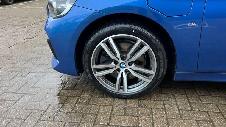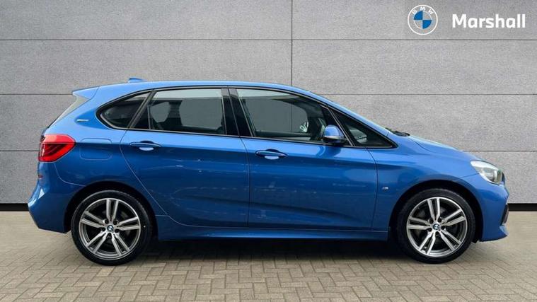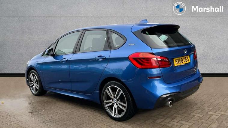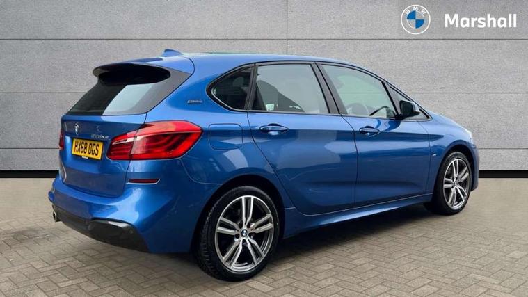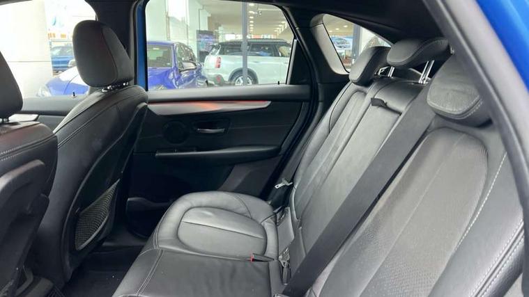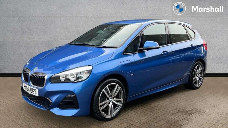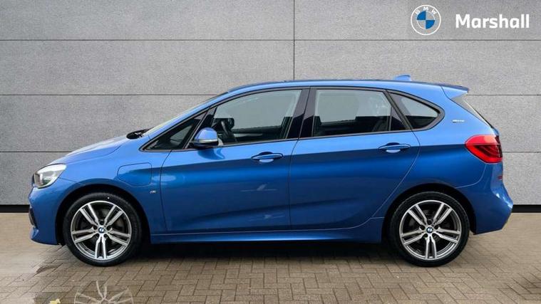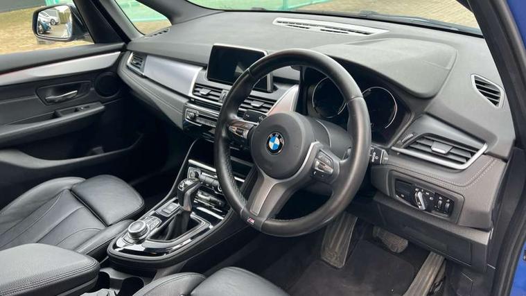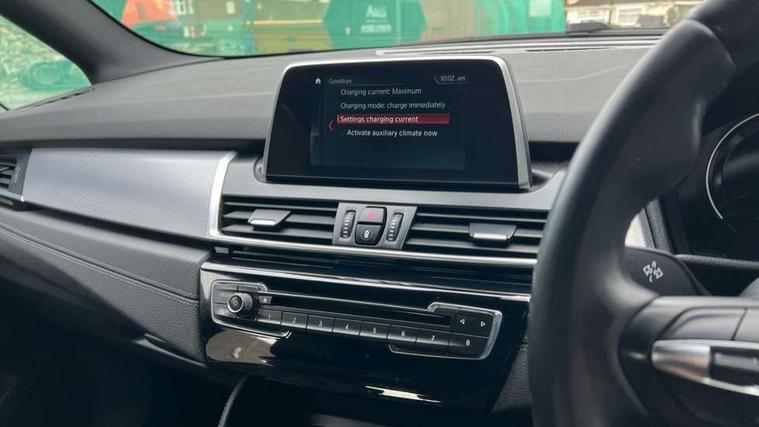 Active Guard incl speed limiting and lane departure functions with auto steering, and front collision warning with brake intervention, Attentiveness assist, Automatic tailgate operation, BMW Online services, BMW Teleservices, Brake pad wear indicator in front and rear, Check Control warning system for monitoring of lights and door/luggage compartment open warning, Connected eDrive Services, eDrive button activates auto eDrive, max eDrive and save battery modes, eDrive specific displays in instrument cluster and CID, Instrument cluster with speedometer with miles per hour read out, tachometer and fuel gauge, Lights on warning by audio warning signal when ignition is switched off, On board computer - average speed+fuel consumption, service interval, clock/date, odometer/trip meter, outside temperature display and ice warning, Personal Profile - automatic lock when driving away selectable, Service interval indicator, Servotronic variable electric power steering (EPS), Speed limiter, 2.4kW AC charging with 5m cable, Battery pre-conditioning, Drive performance control with ECO PRO comfort + sport mode, Electronic differential lock, Intervention on the front axle when DSC deactivated, Lithium-ion high voltage battery (7.7 kWh) fitted under rear seats, 2x USB sockets in front, BMW professional radio/CD/MP3, DAB Digital radio, Body colour - front and rear bumpers, door handles, mirror caps, roof mouldings, Chrome kidney grille with extra wide black, high gloss black vertical slats, Clear lenses direction indicator lights, Direction indicator side lights integrated exterior mirrors, Dynamic brake lights, eDrive designation on C Pillar, Electric windows - front and rear, with open/close fingertip control, anti-trap facility and comfort closing, Electrically adjustable door mirrors with aspheric on driver side, convex on passenger side with integrated indicators, Follow me home headlights, Front and rear bumper system, Green tinted heat protection glazing, Halogen headlights, Headlight beam throw control, High level third brake light, LED daytime running lights, Lightweight engineering, M aerodynamic body styling with dark shadow elements, Rain sensor including auto headlights activation, Rear fog lights, Rear window aerial, Rear window wiper integrated under roof spoiler, Reversing light in rear light cluster, Shark fin antenna, Single chrome exhaust tailpipe, Visible VIN plate, Welcome lighting, Ambiance lighting - switchable, Anthracite headlining, Automatic two zone climate control air conditioning, Cabin pre-conditioning via iDrive or BMW i Remote App, Central locking switches for door, fuel filler cap and luggage compartment, Child seat ISOFIX attachment for two outer rear seats and front passenger seat with anchorage points, Dakota leather upholstery with perforation and contrast stitching, eDrive badging on engine cover and gear selector, Four grab handles integrated in roof lining, Front and rear side armrest integrated into door trim, Front armrest, Front door sill finishers with M designation, Front head restraints, Front sports seats with electric side bolster adjustment, Glovebox with light, Illuminated charging socket with visual display of charge status, Interior lighting, front centre over interior mirror and rear centre automatic interior light activation when door is opened, Luggage compartment access via BMW roundel, Luggage compartment lighting, M Sport multifunction leather steering wheel, Manual 40:20:40 split folding rear seat with removal of 60:40 sliding bench, Multi-function controls for steering wheel, Rear centre armrest, Steering wheel column manual adjustment, Sunvisors with vanity mirrors and ticket pocket, Three rear headrests, Two cupholders, Velour floor mats, Extended storage pack - 2 Series Active/Gran Tourer, 3 point seatbelts on all seats, front pyrotechnic belt tensioners, stopper and belt force limiters, rear coded belt buckles, Airbag - Front driver and passenger, front and rear head, front side, curtain head protection, manual deactivation of front passenger airbag possible, Anti lock braking system (ABS) with brake assist, Battery safety cut-off, BMW emergency call, Brake drying, Brake energy regeneration, Braking lock, Braking readiness, Child proof locking system in rear door, Crash Sensor - activates hazard/interior lighting + unlocks doors, Dynamic stability control + (DSC+), Dynamic Traction Control - DTC, Electrically operated hand brake, Front ventilated disc brakes, Hill start assist, Rear disc brakes, Seat belt security check for driver and front passenger, Seatbelt warning, Side impact protection, Twin horns, Tyre pressure monitoring system, Warning triangle and first aid kit, Locking wheel bolts, Remote control with integrated key with silver highlight and M designation, Thatcham 1 alarm system with remote control and engine immobiliser, Contrast stitching on instrument panel, 18" Burnished M double spoke alloy wheels finished in ferric grey - style 486 with run flat tyres, Reduced rolling resistance tyres,