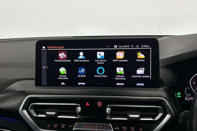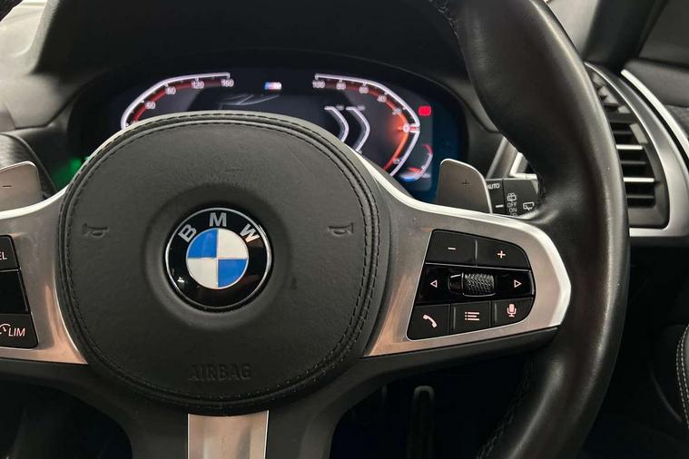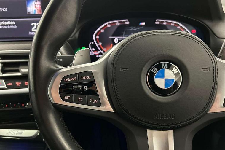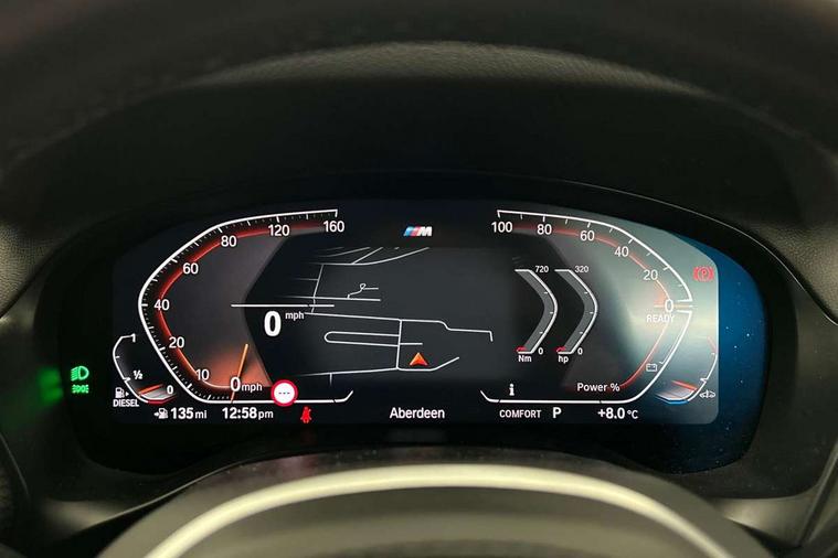 Active Guard, Attentiveness assist, BMW Live Cockpit Professional nav system including 12.3" instrument display + 12.3 high resolution control display, BMW Online services, BMW Teleservices, Brake pad wear indicator in front and rear, Check Control warning system for monitoring of lights and door/luggage compartment open warning, Condition based service - BMW service history, electronic service booklet, integrated owner's handbook, Connected drive services, Cruise control with brake function + speed limiter, Electric boot lid, Front/rear Parking distance control, iDrive Controller with 8 favourite buttons, Instrument cluster with speedometer with mph readout, tachometer, fuel gauge and oil temperature gauge, Lights on warning by audio warning signal when ignition is switched off, Oil sensor for level and grade, warning by check control system, On board computer - average speed+fuel consumption, service interval, clock/date, odometer/trip meter, outside temperature display and ice warning, Optimum shift indicator, Personal Profile - automatic lock when driving away selectable, Run flat indicator, Stop/start system, Variable sports power steering with drive performance control Sport+ mode, Diesel particulate filter, Incorrect fuelling protection, Larger capacity fuel tank, M sport suspension, Multi-link rear suspension, Performance Control, Sport automatic transmission with gearshift paddles, BMW professional radio/CD/MP3, DAB tuner, Acoustic glazing, Automatic windscreen wipers and automatic headlight, Black finish on B pillars, Body colour door handles, Body colour electric adjust heated aspherical door mirrors, Body colour roof mouldings, Body coloured bumpers, Direction indicator, side repeaters, integrated in exterior mirrors, Dynamic brake lights, Exhaust tailpipes - dual, round, split left and right with chrome finisher, Fingertip control / anti-trap function on electric window, Folding wing mirrors with auto dimming, Follow me home headlights, Front and rear bumper system with replaceable deformation elements, Front and rear electric windows, Gloss chrome tailpipes finishers, Green tinted heat insulating glass, Heated windscreen washer jets, High beam assistant, High gloss black shadow line roof rails, High gloss shadowline exterior trim in decorative moulding side frame/recess cover/guide rail/B, C pillars/mirror frame and triangle with mirror base, High level 3rd brake light incorporating LED Technology, Interior rear view electrochromatic mirror with automatic anti dazzle function, LED tail lights, Lightweight engineering, M aerodynamic bodystyling, M Sport entry door sill strips, Model designation, Rain sensor, Rear side wing doors, Rear wing door, Rear wiper, Shark fin antenna, Side exterior M designation badges, Visible VIN plate, Welcome lighting, Windscreen wipers with adjustable interval, 12V power point in luggage area, 12V power socket in front centre console, 3 rear headrests, 3 seat bench in 2nd row, 3 zone automatic air conditioning, 4 lashing points to secure luggage, 40:20:40 split folding rear seat with loading system, Ambient lighting, Anthracite headlining, Automatic interior light when door is opened/ignition switched off or via remote key, Driver seat backrest width adjustment, Floor mats in velour, Foldable storage floor with compartment, Four grab handles integrated in roof lining, Front and rear bottle holders integrated into door trim storage compartments, Front and rear side armrests integrated into door trim, Front centre armrest with storage compartment, Front footwell lights, Front head restraints, Front passenger seat, Front sports seats, Front/rear courtesy lights with soft on/off dimming, Front/rear reading lights, Heated front seats, Isofix rear child seat preparation, Leather gear knob, Luggage area underfloor compartment, Luggage compartment lighting, M sport leather steering wheel, Multifunction steering wheel, Parcel shelf removeable and storable under boot floor, Reach and rake adjustable steering column, Rear centre armrest with 2 cupholders, Removable / retractable luggage cover, Slope adjustable rear seats, Storage compartment in rear centre console and front/rear door trims, Sun visors with vanity mirrors and ticket pocket, Toolkit located in luggage compartment, Two front cupholders with removable oddments tray/lid, Vernasca leather upholstery, Connected pro pack - X3, Driving assistant pack - X3, ADB - Automatic Differential Brake, Anti-lock braking system (ABS) with brake assist, Automatic Stability Control (ASC), Battery safety cut-off, BMW emergency call, Brake drying, Brake energy regeneration, Braking pre-tensioning, Child locks on rear doors, Cornering brake control (CBC), Crash Sensor - activation of central locking release, hazard warning light and interior lighting, Deactivation of fuel pump in the event of a crash, Driver and front passenger front and side airbags with passenger deactivation and ITS front and rear head airbags, Driver and front passenger knee airbag, DSC+, Dynamic brake control, Dynamic Traction Control - DTC, Electromechanical parking brake, Hill descent control, Hill start assist, Seatbelt security check for front seats, Side impact protection, Three point seatbelts to all seats with front and outer rear pyrotechnic belt tensioners and seat belt force limiters, Two tone horn, Tyre pressure sensor, Ventilated front and rear disc brakes, Warning triangle and first aid kit, Central locking switch for all doors, fuel filler cap and luggage compartment, Electronic engine immobiliser, Locking wheel nuts, Remote control including two integrated key - one button for open/close all lockable content, windows and separate button for open luggage compartment, Remote control Thatcham category 1 alarm, Start/stop button with Comfort Go keyless engine start and auto Start/stop deactivation button, Low rolling resistance tyres,