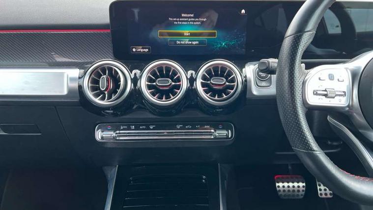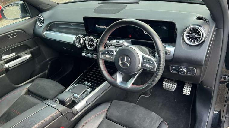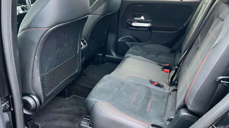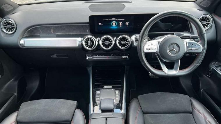 10.25" Digital instrument cluster display screen, 10.25" Digital media screen display, Active lane keeping assist, Attention assist - Monitors steering behaviour and long journey fatigue, Brake pad wear indicator warning light, Car wash mode, Cruise control with limiter, DYNAMIC SELECT with a choice of driving modes (ECO, Comfort, Sport and Individual), ECO start/stop function, Fluid level warning indicator for fuel, oil, coolant and washer fluid, Hard disk navigation, Hey Mercedes Voice activation, Lamp failure indicator, Mercedes me connect including emergency call system, accident recovery, breakdown and maintenance management, Mercedes me remote services, Outside temperature gauge, Owners manual and service booklet in English, Parameter steering system, Pre-installation of private car share, Radio aerial integrated into front and rear windshields, Service indicator (ASSYST), Smartphone integration with Apple CarPlay and Android auto, Speed limit assist, Trip computer in multifunction display with current consumption indicator, Comfort suspension, Rear axle multi-link, DAB digital radio tuner, MBUX multimedia system with DAB digital radio and touchpad including satellite navigation, Mercedes Benz sound system (225 W) with 10 speakers, 1 central speaker, speakers on doors, a tweeter on door, one sub woofer + boost amplifier, Pre installation for Mercedes Benz Link, USB (type C) port in front stowage compartment, USB (type C) ports (2) in stowage compartment, Adaptive brake lights, Aerial for GPS, AMG bodystyling door panels black grained with chrome plated inserts, AMG bodystyling front apron with chrome splitter, AMG bodystyling rear apron with diffuser optics and chrome trim element, AMG specific front and rear bumper including underride guard in high gloss chrome, Beltline strips and weather strip in chrome, Body coloured door handles with chrome insert for keyless entry, Body coloured door mirror caps, Electric adjustable and heated door mirrors with integrated LED side indicators, Exhaust system with dual flow exhaust pipes (non-functional), Front and rear electric windows, Headlamp assist automatic headlamp activation, Heated glass rear windscreen + timer control, High level LED third brake light, Interior mirror with black reading lamps and frameless, LED high performance headlamps with integrated LED daytime running lights, LED tail lamp, Polished aluminium roof rails, Privacy glass with dark tinting on rear side windows and rear window, Radiator grille with pins in chrome and single louvre with chrome insert, Rain sensor windscreen wipers, Rear fog lamp, Rear side wing doors, Rear wing door, Rear wiper, Two visible tailpipe trim elements exhaust, 3 seat bench in 2nd row, 3 spoke multifunction sport steering wheel in nappa leather, Air conditioning - Two zone thermotronic luxury automatic climate control with display, AMG sports pedals with brushed stainless steel surfaces and black rubber studs, Artico man-made leather/Microfibre Dinamica upholstery with red contrast stitching, Automatic child seat recognition sensor, Black floor mats with AMG lettering, Black roof lining, Fore/aft adjustment rear seats, Freight packaging with tie-down hooks, Front centre armrest with stowage, Front door sills with illuminated changeable cover, Front passenger grab handle with brushed side silver chrome, Front sports seats with adjustable head restraints, Galvanished gear shift paddles on steering wheel, Heated front seats, Height/reach adjustable steering column, Interior lighting - 64 colour Ambient lighting, Luggage net on driver/front passenger seat backrest, Rear armrest with two integral cup holders for drinks, Rear seat easy entry, Single front passenger seat, Stowage compartment in centre console, Stowage compartment with retractable cover, Third row of seats for two people on rear seat, Touchpad on center console, Twin front cup holders, Two outer rear seat isofix and top tether child seat fixing points, Interior lighting with light and sight pack - GLB, Keyless go pack - GLB, Mirror pack - GLB, Parking pack - GLB, Seat comfort package - GLB, 3 rear 3 point seatbelts, Active bonnet pedestrain safety measure which detects an impact and raises bonnet by 65mm, Active brake assist includes forward collision warning system with autonomous braking, Adaptive brake assist with hold function and hill start assist, Airbags - kneebag for driver, Anti-lock braking system (ABS) with brake assist, Childproof locks manually operated for rear doors and electrically operated for rear power windows, Crash responsive emergency lighting, Curve dynamic assist, Driver and front passenger head and sidebags, Driver and front passenger windowbags, Dual stage driver and front passenger airbags, Electronic parking brake, Electronic stability programme with acceleration skid control, Front and rear seatbelt reminder, Front brake callipers with Mercedes Benz lettering, Front passenger seat occupancy sensor, Tyre pressure monitoring system, Warning triangle and first aid kit, Remote central locking and crash sensor with emergency opening function, Thatcham category 1 alarm system with immobiliser and interior protection, Urban guard vehicle protection - Anti theft alarm system, tow away protection with visual and acoustic warning and alarm siren, Vehicle key with decorative surround in chrome, Black air vents with chrome surround, Carbon structure trim, 19" AMG 5 twin spoke light alloy wheels painted in tantalite grey with high sheen finish, Summer tyres, Tirefit tyre sealant kit,