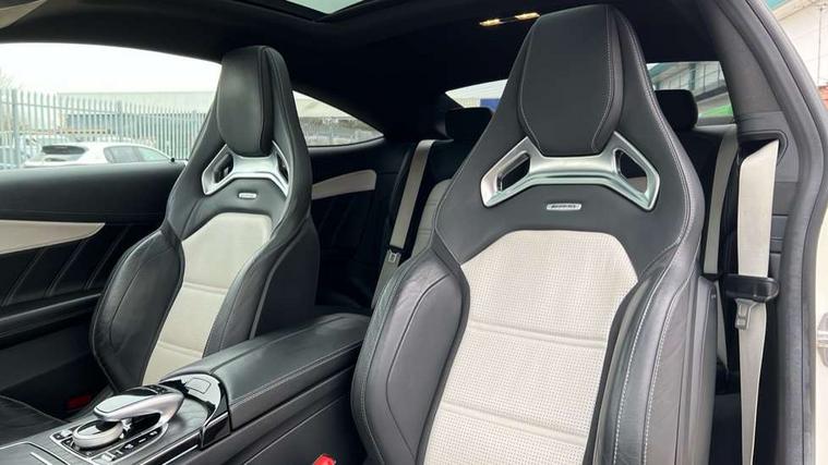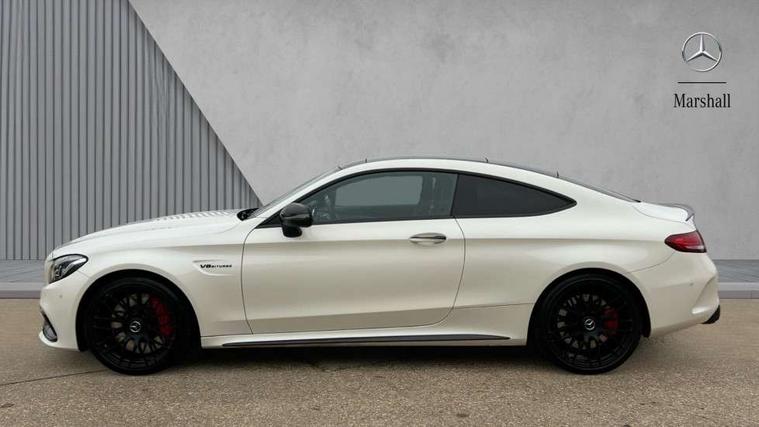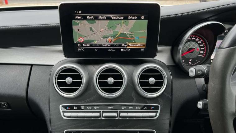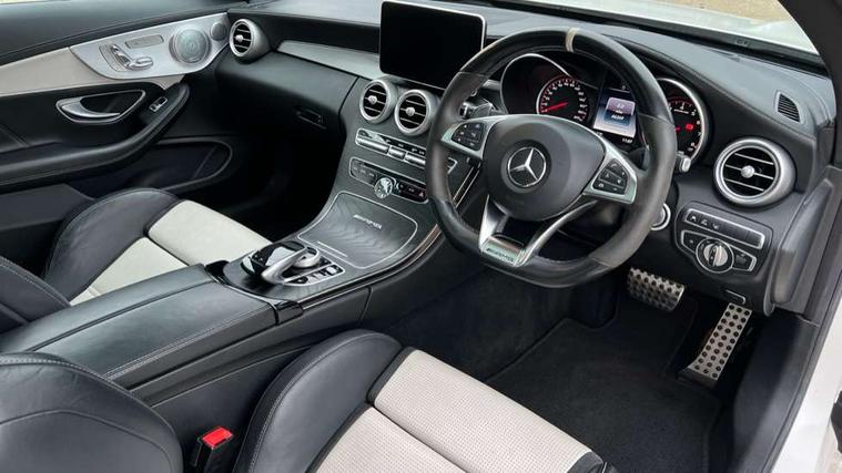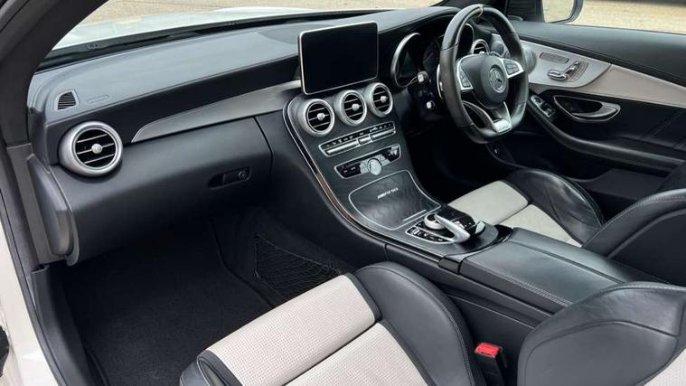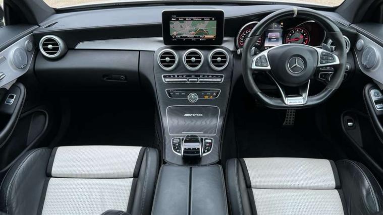 8.4" high resolution display, Active park assist with parktronic system, AMG instrument cluster, Attention assist, Bluetooth interface for hands free telephone, Collision prevention assist plus, COMAND online nav with colour display, radio/CD/DVD/MP3, SD card, 10GB music, Emergency Call system, speed limit assist, linguatronic voice control, DYNAMIC SELECT with a choice of driving modes (ECO, Comfort, Sport, Sport+ and Individual), Instrument cluster with 5.5-inch TFT multi-function display, Multi function trip computer, Outside temperature gauge, Remote boot release, Service indicator (ASSYST), Speed sensitive steering, 66 litre fuel tank, AMG rear axle limited slip differential lock, AMG Ride Control sports suspension, 2 USB ports, Burmester surround sound system, DAB digital radio module, Frontbass loudspeakers, Steering column mounted multifunction controls, Adaptive brake lights, AMG boot lid spoiler in body colour, AMG front, rear apron and side skirts, AMG performance exhaust system, Auto dimming driver's door mirror, Auto dimming rear view mirror, Body coloured bumpers, Electric adjustable/heated/folding door mirrors, Electric front sliding and fixed rear panoramic glass sunroof, Electric windows one touch open/close, Green tinted glass, Heated windscreen washers, Intelligent LED headlight system with active Light System, cornering light function, Adaptive High Beam Assist and blue LED locator lighting, LED daytime running lights, LED tail lights, Rain sensor windscreen wipers, Side windows surround in polished aluminium, 2 cupholders in front centre console, 2 rear head restraints, 3 spoke AMG steering wheel in Nappa leather/Dinamica, 4-way lumbar support for drivers seat, 4-way lumbar support for front passenger seat, 40:20:40 split folding rear seats, Advanced multicolour ambient light and LED interior light, AMG floormats, AMG illuminated door sills, AMG performance seats, Artico man-made leather dashboard and beltline with contrast stitching, Auto dual-zone climate control system, Auto Mercedes-Benz child seat recognition sensor, Door courtesy lamps, Electric front seats, Electric height adjustable front seats, Electric height/reach adjustable steering column, Front centre armrest with storage compartment, Front footwell illumination, Heated front seats, Illuminated front/rear door handle recesses, Illuminated glovebox, Isofix rear child seat fastenings, LED reading lights, Nappa leather upholstery, Sports pedals with stainless steel surfaces and rubber studs, Steering wheel gearshift paddles, Sunvisors with illuminated vanity mirrors, Driver's pack - C63 AMG, Exclusive pack - C class, Memory pack - C Class, Stowage space pack - C Class, 2 rear seatbelts, ABS + BAS, Active bonnet, Adaptive brake system, Drivers knee airbag, Drivers pelvis airbag, Dual stage driver/passenger airbags, Electronic parking brake, ESP with ASR, Front side airbags, Grey seatbelts, Hill hold control, Hill start assist, Red brake calipers, Tyre pressure monitoring system, Warning triangle and first aid kit, Window airbags, Alarm system/interior protection/immobiliser, Chrome surround electric key, Keyless entry and keyless start, Remote central locking, Tyre inflation kit,
