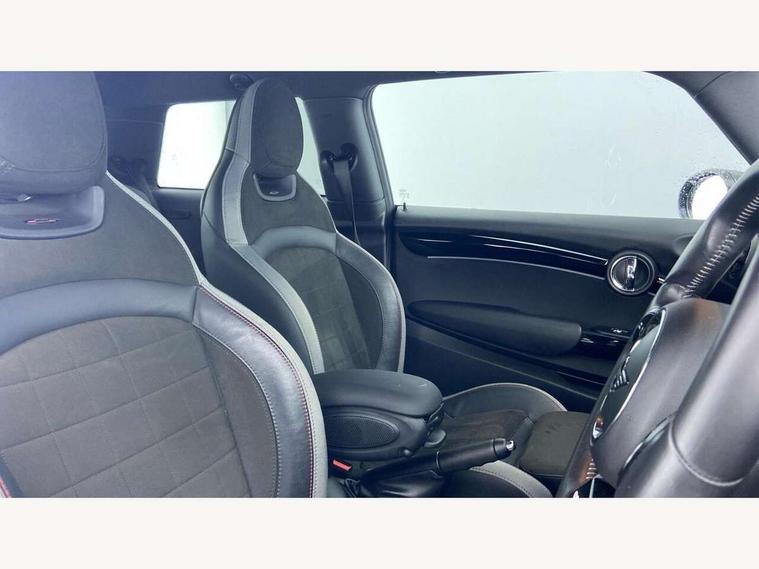 Apple CarPlay, Automatic start/stop function with brake energy recuperation, Compatible mobile phone bluetooth with audio streaming, Cruise control with brake assist, Electro-mechanical speed dependant steering assistance, Flexible car sharing preparation, Instrument cluster, MINI Driving Modes - centre toggle switch to control driving setting (sport, mid and green), Mini E-call, MINI TeleServices, On board computer, Rear park distance control, Service interval indicator, 6 Speed manual transmission including gear change indicator display, Double Vanos system, Fully variable valve control, High precision injection, Intelligent adaptive suspension, Performance Control, 8.8" touchscreen with LED ring, FM tuner and DAB digital radio, 3rd brake light, Automatic headlight activation switch, Body colour fuel filler cap, Chrome border high gloss black slats radiator grille, Dynamic brake lights, Electric front windows, Exhaust tailpipe on left with chrome finisher, Heated rear window, Heated windscreen washer jets, JCW Aerodynamic kit - Front and rear bumpers with sporty JCW styling and part-painted side sills with MINI John Cooper Works door sill finishers, John Cooper Works rear spoiler, LED headlight with closed ring and daytime driving lights, Metal door sill strips with MINI imprint, Model logo Cooper on right of tailgate, Rain sensor window wipers, Rear fog lights, Rear LED lights with union jack design, Rear window wiper, Side scuttle panel with integrated indicator, Sun/heat protection glass, White indicator lenses, 12V Accessory socket in centre console, 2 seat bench in 2nd row, 4 lashing eyes in luggage compartment, 60/40 split folding rear seat, Anthracite headliner including grab handles and clothes hooks, Carbon black colour line - Knee roll and door armrest, Chrome interior highlights, Cupholders, Front and rear isofix with front passenger airbag deactivation, Front floor mats in velour, Glove compartment, Height and length steering column adjustment, Interior lighting with 12 different colours across the dashboard, underneath door bezel with illuminated laser-engraved design on central display, JCW Sport seats with integrated headrests, adjustable thigh support and John Cooper Works logo, Leatherette gearshift lever and handbrake gaiters, LED reading lights, vanity mirror lights, front foot well light and spotlight on front seats, Manual air conditioning, Mechanical seat adjustment - forward/back & backrest for front seats and driver seat height adjust, Multifunction steering wheel, Passenger seat height adjuster, Single front passenger seat, Storage compartments in doors, Sunvisors with vanity mirrors, Walknappa leather steering wheel with grey seam and John Cooper Works badge on Piano Black lower steering wheel spoke, Piano black exterior pack - Mini Hatchback Cooper, 3 point seatbelts on all four seats, 6 Airbags - front, side, head and seat belt tensioners, Anti-lock braking system (ABS), DSC - Dynamic Stability Control, Front and rear disc brakes, Single tone fanfare horn, Tyre pressure monitoring system, Alarm system with tilt sensor, monitoring doors, bonnet interior and tailgate, Electronic vehicle immobiliser, Start/stop toggle with keyless go, Piano black interior trim, Tool kit,
