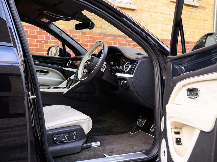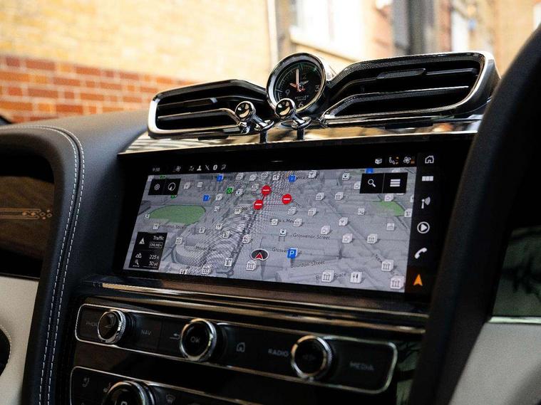 10.9" touch screen high resolution and configurable infotainment display and digital drivers information display, Advanced navigation function with text, search, 3D, satellite maps, speed limit, dynamic traffic route guide, telephone, Text-speech + voice, Bentley branded clock, Bentley GPS tracking system full fitment, Bentley safeguard plus, Blind spot assist, Bluetooth and WIFI enabled, Emergency services call system, Four drive dynamics modes (bentley, comfort, sport, custom), Front/rear park distance control, Hands free power tailgate, MMI Screen, My Bentley connected car services, Power latching to all doors for easy entry, Redesigned instrument panel lower trim rolls, incorporating a storage compartment on the passenger side, Seamlessly integrated technology with wireless apple car play and android auto, Speed sensitive variable ratio electric power steering, Touch screen remote, Traffic jam assist, Voice control system, Wireless phone charging compartment, Air suspension with continuous damping control, Bentley Dynamic ride with electronic all wheel steer, Permanent all wheel drive with centre torsen differential, Bluetooth audio streaming, DAB Digital radio, 3rd brake light, Adaptive low beam, Auto dimming rear view mirror, Automatic headlights, Azure exterior door badges, Azure fascia badge, Bentley badge in tailgate opening switch, Black painted shark fin aerial, Body colour door mirrors, Body coloured lower bodywork - Standard paint range, Bright chromed matrix style grille to lower bumper apertures, Bumper design with large side intakes and sculptured surfaces, Clamshell rear tailgate design with Bentley lettering under the wings, Elec/heat/adj/fold door mirror+memory, Electric tilt/slide panoramic sunroof, Fender design reduces over bodied perception, Fixed rear spoiler, Front and rear fog lamps, Full LED supplementary lamps and tail lamps, Full matrix LED headlamps with high beam assist, Full width clamshell design and deeply contoured rear tailgate panel, Heated rear windscreen, Jewel fuel and oil filler caps, Large dominant B shaped side wing vent front position, LED daytime running lights, Long fender vent above the power line on body side, Lower door side mouldings, Number plate aperture position under rear bumper, Oval split tailpipe, Phone antenna amplifier, Rain sensing wipers, Rear side wing doors, Rear wiper, Self levelling wheel badge, Trailer sway mitigation, Tunnel detection for auto light control, V8 exterior badge, Wet arm wipers and heated water jets, 12V power in rear centre console, 12V socket in glovebox, 12V socket in luggage compartment, 3 seat bench in 2nd row, 4-Zone HVAC, Air Ioniser, Azure seat emblems, Black (Beluga) boot carpet, Electric tilt and reach adjustment steering column with memory and easy entry function, Electronic accessory preparation, Embroidered Bentley emblems, Fluted seat design, Foams and cover design on all seats, Folding luggage compartment cover, Front and rear cupholders, Indented steering wheel, Interior mood lighting, Isofix attachments on outer rear seats, Key box, Lockable cooled glovebox, Luggage rails, Rear dual window switches, Rear seat climate control, Rear seat massage function, Single front passenger seat, Sports pedals, Stowage with instrument panel, doors (front and rear), armrests and console, Twin front armrests, Two metal bulls eye vents with organ stops and redesigned centre vents, Wing pockets for small items, Front seat comfort specification pack - Bentayga, Harmony diamond quilt specification pack - Bentayga, Touring specification pack - Bentayga, 3 rear seatbelts, ABS/EBD, Child safety lock, EDL, Electronic park brake with move-off assist, Electronic stability control, Electronic tyre pressure monitoring, ESP + MSR + ASR, Exit warning, Front and rear head airbags, Front and rear thorax airbag system, Front passenger airbag deactivation, Front seatbelt pretensioners with force limiters, Hill descent function, Hydraulic Brake Assist (HBA), Rear outer seatbelt pretensioners with force limiters, Rollover mitigation, Side airbags, Traction control, Immobiliser, Keyless entry, Keyless ignition, Preparation for vehicle tracking, Remote central locking, Volumetric anti theft alarm, Veneered centre fascia panel,