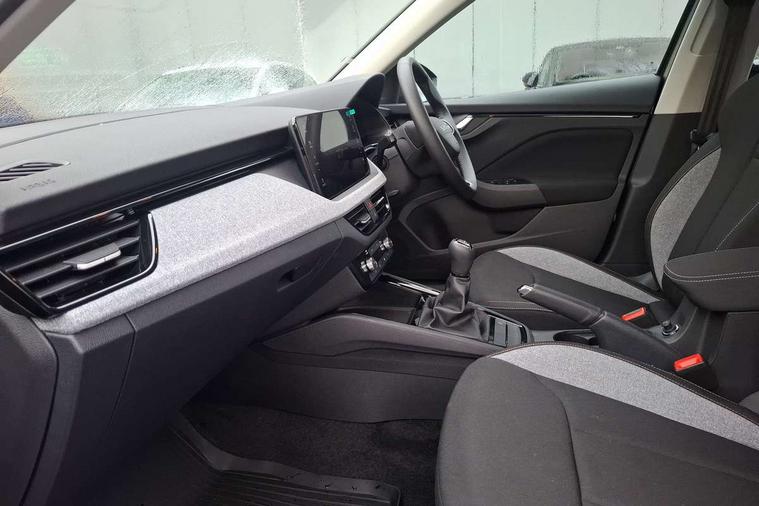Advanced driver attention and drowsiness monitor, Bluetooth system, E-call, Front assist system, PAS, Rear parking sensors, Rear view camera, Service indicator, Speed limiter, Traffic sign recognition, Virtual cockpit with 10.25" display, Wireless smartlink, 4 USB C ports, 8 Speakers, 9.2" Skoda navigation display, DAB Digital radio, Auto dimming rear view mirror, Automatic headlight control with coming home and leaving home feature, Black roof rails, Body colour bumpers, Body colour door mirrors and handles, Chrome grille surround, Front and rear electric windows, Full LED headlights, Heated rear window, LED brake lights, LED daytime running lights, LED front turning lights, LED high beam, LED low beam, LED third brake light, Rear LED fog light, Rear side wing doors, Rear wiper, Ticket holder inside windscreen, 12V socket in luggage compartment, 3 seat bench in 2nd row, Black hotstamping, Cargo elements, Chrome inner door handles, Driver and passenger sun visors with vanity mirror, Dual zone climate control, Front and rear roof lights, Front centre armrest, Front head restraints, Glove compartment with illumination, Height adjustable driver seat, Height adjustable front passenger seat, Ice scraper, Inner circulation control with pollen filter, ISOFIX on front passenger seat, Isofix preparation for back seats, Krepp recycled decor inserts, Leather gearknob and handbrake lever, Loft cloth upholstery, Manual lumbar support for front seats, Net package and top tether hooks in boot space, Net under rear shelf, Overhead glasses storage compartment, Pocket on the back of both front seats include mobile phone pockets, Rake/reach adjustable steering wheel, Reading lights, Satin black door inserts, Single front passenger seat, Textile floor mats, Third rear headrest, Top tether for front passenger seat, Umbrella in driver's door, 3x3 point rear seatbelts, Airbags - driver and front passenger, Disc brakes, ESP, Extended and predictive pedestrian/cyclist protection, Front passenger airbag deactivation switch, Front side airbags with curtain airbags, Hill hold control, Manual leather parking brake, Manual rear child locks, One tone horn, Seatbelt reminder for driver an co-driver, Traction control, Tyre pressure monitor, Anti-theft alarm system with interior monitoring, backup horn, towing protection and remote central locking with SAFE system, Anti-theft wheel bolts, Electronic engine immobilizer,