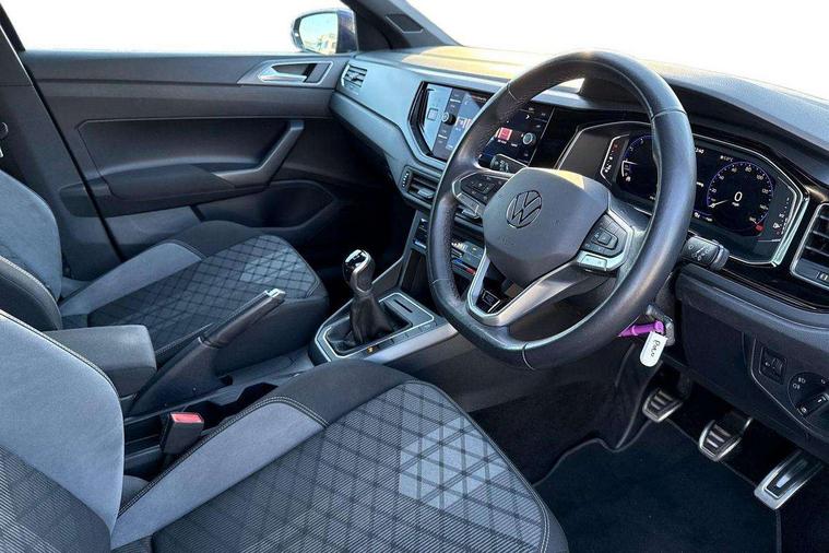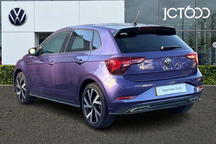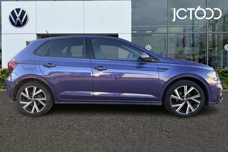 Adaptive cruise control without follow-to-stop and speed limiter, Bluetooth mobile phone interface, Digital Cockpit Pro with 10.25" Display, Driver alert system, Dynamic road sign display, Emergency call service, Power assisted speed sensitive steering, Preparation for We connect and We connect plus, Speedo and rev counter, electronic odometer, trip, service interval display and fuel gauge, Standard rear axle, Travel Assist - Lane keeping system and traffic jam assist, Travel assist including emergency assist, Trip computer, Warning signal and warning light for front and rear seatbelts not fastened, Washer fluid level indicator, Wireless app connect, Front wheel drive, Rear shock absorpion, Start-stop system with battery regeneration (recuperation - energy recovery during braking), DAB Digital radio, Diversity antenna for FM reception, Front and rear 6 speakers, Body colour bumpers, Body colour door handles, Body colour door mirrors, Electric front windows, Front scuff plates with R-Line logo, Heat insulating darkened glass in side and rear windows, Heat insulating glass windscreen, Power folding adjustable/heated exterior mirrors and front passenger exterior mirror lowering function, Rear electric windows, Rear fog light, Rear side wing doors, Rear tinted glass from B-pillar backwards approx 65% tinted, Rear windscreen washer and wiper with interval delay, Third brake light, 12V power socket in centre console, 2 USB-C ports in the front, 2 USB-C charging sockets on the center console in the rear, 3 rear head restraints, 60/40 split folding rear seat and rear seat bench not split, Air care climatronic air conditoning system with active combination filter and 2-zone temperature control, Black roof lining, Ceramique headliner, Chrome plated radiator grille inserts, air vent surrounds and light switch surrounds, Door and side trim panel, Driver and front passenger seat height adjustment, Driver/passenger sunvisors with illuminated vanity mirrors, Front + rear carpet mats, Front centre armrest, Front footwell illumination, Front seat backrest storage pockets, Front sports comfort seats, Handbrake lever handle in leather, Isofix child seat preparation easy-fit (for two outer rear seats, and front passenger seat) compatible with I-size, Karoso artvelours cloth upholstery, Leather trimmed gear knob, LED interior light with switch off delay and dimmer, 2 reading lights front and rear, Luggage compartment cover, Luggage compartment floor, Luggage compartment lighting, Lumbar adjustment for front seats, Multifunction steering wheel, Single front passenger seat, Stainless steel pedals, Standard pedal cluster, Light and sight pack - Polo R-Line/Black Edition, 3 point height adj front seatbelts + pretensioners, 3x3 point rear seatbelts, ABS, Driver and front passenger airbag with front passenger airbag deactivation, Drivers and front passengers safety optimised head restraints, ESC (Electronic stability control) + EDL (Electronic Differntial lock) and ASR (Traction control), Extended and predictive pedestrian/ cyclist protection, Front curtain and side airbags with center airbag, Hill hold control, Manual child lock in rear doors, Single tone horn, Tyre pressure loss indicator, Alarm with interior protection, Anti-theft alarm system with interior monitoring, backup horn, and towing protection, Anti-theft wheel bolts, Electronic engine immobiliser, Chrome applications on rotary light, mirror adjustment, window regulator switches, outlet with frame in black, Dark grey anodised matt decorative inserts in dash and front door panels, Low rolling resistance tyres,