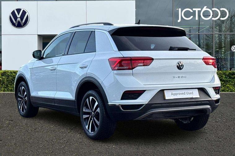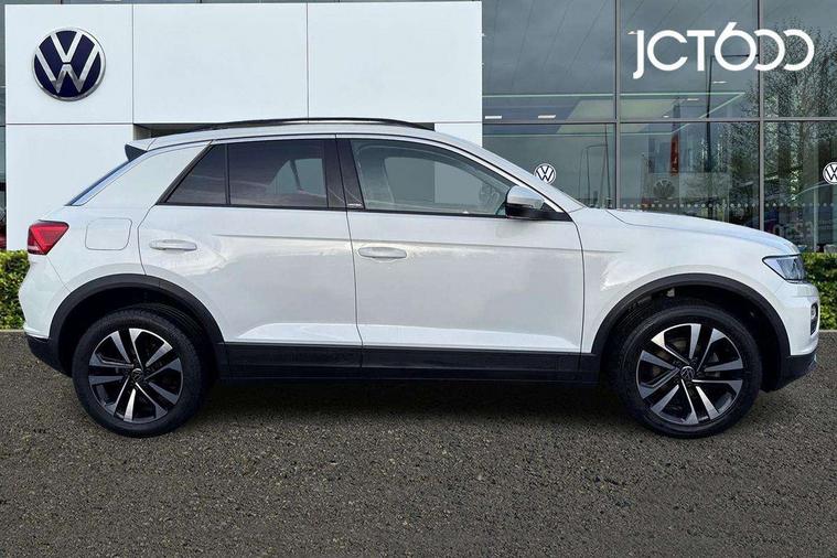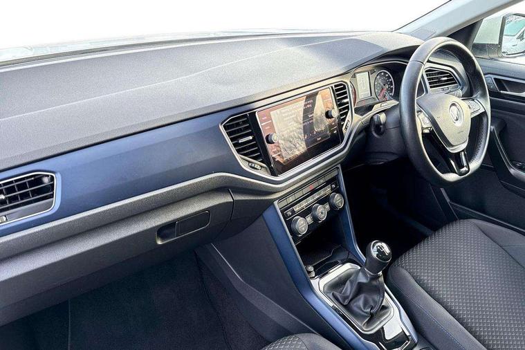 App-Connect, 'Lights On' Reminder warning buzzer, Adaptive cruise control with front assist, radar sensor controlled distance monitoring, city emergency braking, Automatic start/stop system, Bluetooth telephone and audio connection for compatible devices, Car information display, Driver tips and journey analysis, Dusk sensor, Emergency call service, Lane assist with warning text instrument cluster, Modified key software - reduce switch off time for key status change to Long no motion, Multifunction computer with visual gear change recommendation for fuel consumption, Power assisted speed sensitive steering, Ready 2 Discover system with 8" display including streaming and internet, Service interval indicator, Think blue trainer driver tips and journey analysis, Ultrasonic front and rear optical and audible parking sensors, Voice activation, Warning sound and light for doors and tailgate open, Warning sound and light for front seatbelts unfastened, Wireless app connect for apple carPlay, Battery regeneration during braking, 4 X 20 watt output, Centre arm rest including USB type C interface and USB charging socket, DAB Digital radio, Diversity antenna for FM reception, Front and rear 6 speakers, Front USB type C Interface 2X and USB charging socket, Multi device interface (MDI) with USB connection, Music playback - MP3, WMA and AAC files, Premium USB cable in choice of either Apple or Android smartphone compatibility, SD card slot, Simultaneous pairing of 2 compatible mobile devices, Single CD player, glovebox mounted, SMS functionality - read, compose and send SMS messages using touch-screen display, Title and cover art display, Auto dimming interior rear view mirror, Automatic hazard lights activation under emergency braking, Black grained lower door protectors, Black grained wheel arches, Black roof rails, Body colour door handles, Body coloured bumpers, Body coloured door mirrors with integrated indicators, Chrome plated radiator grille inserts, air vent surrounds and light switch surrounds, Darkened 65% privacy glass in side and rear window, Electrically foldable, adjustable and heated door mirrors with puddle lights and reverse activated kerb-view adjustment on passenger's door mirror, Front and rear electric windows, Front fog lights with static cornering function, Front windscreen wiper with intermittent wipe and 4 position delay, Fully galvanised body, Halogen headlights, range adjustable via infotainment system with automatic headlight activation and separate LED daytime running lights, Heated rear window, High level 3rd brake light, LED rear number plate lights, Manual coming/automatic leaving home lighting function, Rain sensor, Rear wash/wipe with intermittent wipe setting, United badge on B-pillar, United logo projection, Volkswagen roundel, 12V socket in centre console storage area, 3 rear head restraints, 4 load lashing points in luggage compartment, Brushed stainless steel pedals, Climate control - 2 zone electronic air conditioning with automatic air recirculation and allergy filter, Drawer under drivers seat, Front + rear carpet mats, Front centre armrest with storage compartment, longitudinal and height adjustable and two rear air vents, Front comfort seats with manual height adjustment, Front cupholders x 2, Front seat back storage pockets, Glovebox, Height adjustable front seats, Height/reach adjust steering wheel, Illuminated vanity mirrors, Instrument lighting, white adjustable panel illumination, Isofix easy fit child seat preparation for 2 outer rear seats, LED interior light with switch off delay/dimmer and 2 front/rear LED reading lights, Load through provision with single cup holder when folded down, Luggage compartment cover, removable, Luggage compartment lighting, Split folding rear seat backrests with centre armrest, Storage compartment in left and right luggage area, Storage compartment in rear doors, Storage compartments in driver and front passenger doors, Three spoke multi-function leather trimmed steering wheel and gearknob, United cuzo cloth upholstery, United door sills, White ambient lighting, Winter pack - T-Roc, 3 rear three point seatbelts, ABS, Curtain airbags, Driver and front passenger safety-optimised head restraints, Drivers and front passengers airbags with passengers deactivation switch, Drivers seatbelt reminder, Electronic parking brake with auto hold, Electronic stability control (ESC) includes ASR, EDL, EDTC and trailer stabilisation function, Front seat side impact airbags, Predictive pedestrian protection, Rigid safety cell with front and rear crumple zones, Three point height adjust front seatbelts + pretensioners, Tyre pressure loss indicator, Ventilated front and rear disc brakes, Volkswagen roadside assistance, Alarm with remote central locking and interior protection, Electronic engine immobiliser, Remote central locking with 2 remote folding keys, Remote tailgate unlocking using key fob, Altantic blue united decorative inserts, 17" Dublin alloy wheels in black high sheen finish with anti theft wheel bolts, Tyre mobility set,