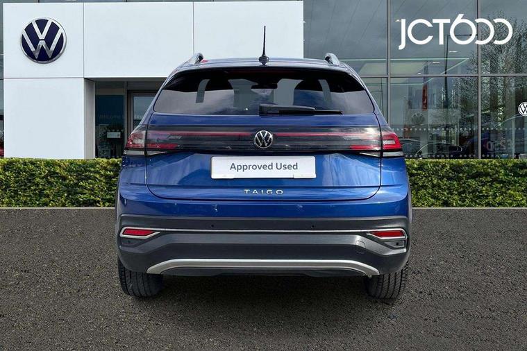 Advanced driver attention and drowsiness monitor, App-Connect including App-Connect Wireless, Digital cockpit pro - 10.25" high resolution TFT dash display screen with customizable menus and information, e-Call (emergency call), Power Steering, Travel assist including emergency assist, Washer fluid level indicator, Wireless Charging including Bluetooth, Rear shock absorption, Start-stop system with battery regeneration (recuperation - energy recovery during braking), Digital radio reception (DAB+), Diversity antenna for FM reception, WeConnect plus, Ambient lighting with logo projection, Aspherical driver's exterior mirror, Auto headlights, Body coloured bumpers and radiator grille with chrome trim and front fog lamps with chrome bezel, Dual chrome twin tailpipes on left and right, Electric windows, External USB type C socket and charging sockets, LED rear combination lamp, LED third brake light, Left convex exterior mirror, Power folding adjustable/heated exterior mirrors and front passenger exterior mirror lowering function, Rear fog light on one side, reversing light on both sides, Rear side wing doors, Rear wash/wipe with intermittent wipe setting, 12V socket in centre console, 2 front reading lights, 3 rear head restraints, 3 seat bench in 2nd row, Air care climatronic air conditoning system with active combination filter and 2-zone temperature control, Black carpets, Child seat anchor for child seat system i-Size, 2x top tether and child seat anchor in front on front passenger side, Chrome bezel for instrument cluster, vents, door handles + gear shift, Driver and front passenger seat height adjustment, Front + rear carpet mats, Front centre armrest, Front footwell illumination, Front sports comfort seats, Height and reach adjustable steering wheel, Interior ambient lighting and surround lighting, Leather trimmed gear knob, Leather wrapped multifunction steering wheel, Luggage compartment floor, Luggage compartment light, Lumbar support for driver's and front passengers seat, Single front passenger seat, Split folding backrest with centre armrest and unsplit rear seat bench, Storage compartment under front seats, Sun visors with illuminated vanity mirrors, Chrome Package - Taigo, Drivers assistance pack - Taigo, IQ.LIGHT - LED matrix headlights pack - Taigo, Light and sight pack - Taigo, 2 x 3-point seatbelts/outer rear seats with ECE label, 3-point seat belts in front with pretensioner and height adjustment, 3-point seatbelt for centre rear seat, Adaptive driver and front passenger airbags with passenger airbag deactivation function, Driver and front passenger safety-optimised head restraints, Electronic stability control, Extended and predictive pedestrian/ cyclist protection, Front and rear disc brakes, Front curtain and side airbags with center airbag, Hill start assist, Manual rear child locks, Single tone horn, Tyre pressure loss indicator, Anti-theft alarm system with interior monitoring, backup horn, and towing protection, Anti-theft wheel bolts, Low rolling resistance tyres,
