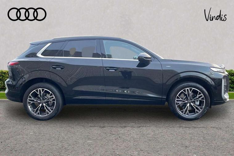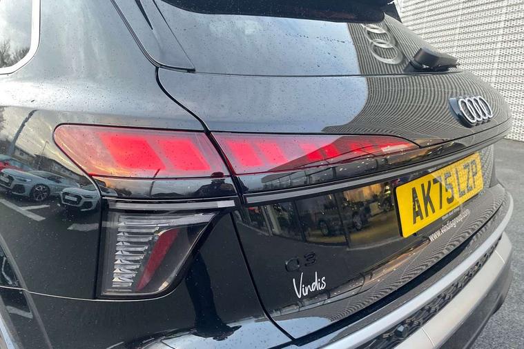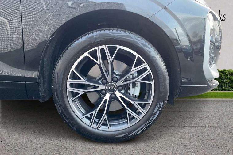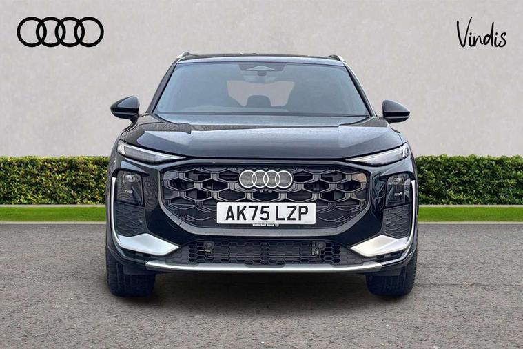 Adaptive cruise control, Audi connect emergency call and service, Audi connect remote and controls, Audi drive select (Balanced/Individual, effeciency, comfort and dynamic), Audi virtual cockpit plus - 11.9" display, Bluetooth interface, Camera based traffic sign recognition, Driver attention and fatigue monitor with driver monitoring, Front cross traffic assist, Lane departure warning with emergency assist, Panoramic curved display with 12.8" MMI navigation plus and MMI touch, Park assist plus with parking system and 360 display, Phonebox light with wireless charging, Reversing camera, Smartphone interface includes wireless Apple carplay/Android Auto, Start/stop system, Swerve assist and turn assist, Traffic sign based speed limiter, Voice control system with natural language interaction, 3 pin 10 amp domestic charging cable, Charging socket CCS type 2, Comfort suspension, Compact charging system, Industrial connector CEE 32A, 230V, Mode 3 charging cable for public charging, 22 KW (AC), Petrol Particulate Filter, 2 USB-C ports with charge and data functions, Audi sound system with 10 loudspeakers, subwoofer, 8 channel amplifier with 260 watts, DAB digital radio module, Acoustic glass for front door windows, Acoustic windscreen, Aluminium roof rails, Aluminium window trim, Audi Q3 lettering on the B-pillars, Auto dimming door mirrors, Auto dimming rear view mirror, Body colour door mirrors, Contrasting finish in volcano grey, Electrically folding, adjustable and heated door mirrors with integrated LED side indicators and kerb view function for passenger side, Full paint finish, Illuminated door sills with aluminium inserts at the front with S logo, LED daytime running lights, LED headlights plus with LED rear lights pro with continous light strip, illuminated Audi rings, rear, LED third brake light, Loading sill protector in stainless steel, Main beam assist, Privacy glass - dark tinted rear window, rear door and side windows, Projection light in the exterior mirrors - Projects a graphic element onto the ground, Q3 badging on the rear, Rain and light sensors, Rear side wing doors, Rear window, rear door windows and rear side windows in clear glass, Rear wiper, Sports bumpers, 3 seat bench in 2nd row, 3 spoke flat top and bottomed leather multi function sport steering wheel with gear shift paddles and "S" badging, 3-zone deluxe automatic air conditioning, 4 way lumbar support for the front seats - electric with horizontal and vertical adjustment in four directions, Black cloth headlining, Convenience auxiliary air conditioning, Front and rear floor mats, Front and rear headrests, Front centre armrest, Heated front seats, Height and reach adjustable steering wheel, Interior storage compartment, Leather/artificial leather upholstery combination with S emblem + front sports seats, Luggage compartment lid, electrically opening and closing, Manual front seats with height adjustment, Rear seat bench plus with split folded 40:20:40, Single front passenger seat, Stainless steel pedals, Steering wheel operating unit, gloss black, Storage compartment in front centre console, Ambient lighting package pro - Q3, S line exterior styling pack - Q3, 3x3 point rear seatbelts, Acoustic vehicle alerting system, Convenience key with safelock, Driver and front passenger airbag with passenger airbag deactivation, Electromechanical parking brake, Electronic stabilisation control including ABS, ASR and EDL, First aid kit with warning triangle and high visibility vests, Front emergency brake assist, Hill hold assist, i - Size child seat mounting on the front passenger side and i - Size and top tether on the outer rear seats, Power operated child locks, Seatbelt monitoring, Three point automatic belts with belt tensioner and height adjustment, Tyre pressure loss indicator, Anti theft wheel bolts, Remote central locking, Thatcham approved category 1 anti theft alarm, Dark aluminium divergence inlay, Interior elements in dinamica microfibre, Interior trims in aluminium look, Tool kit and Jack, Tyre repair kit,