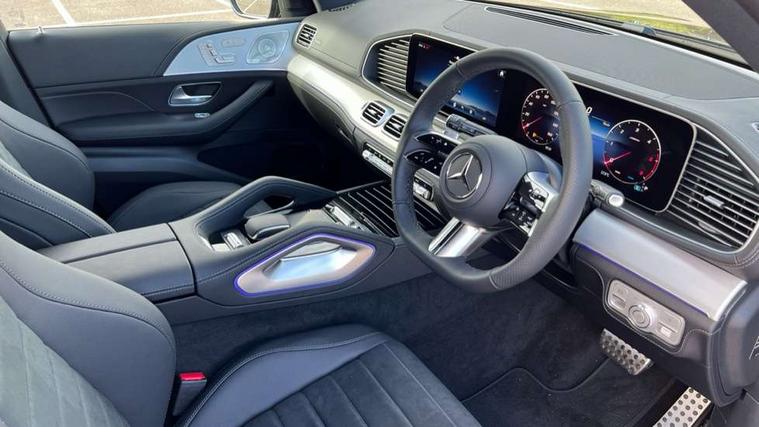 12.3 High resolution wide screen cockpit display with choice of three display styles Classic, Progressive or Sport and unique ambient lighting setting, 360 degree view camera, Active parking assist with PARKTRONIC, Attention assist, Brake wear warning display, Direct steer speed sensitive steering, DYNAMIC SELECT with a choice of driving modes (ECO, Comfort, Sport and Individual), Easy-pack tailgate - Powered opening/closing automatically, ECO start/stop function, Hard-disk navigation, MBUX voice control activated by keywords "Hey Mercedes", Mercedes Benz emergency call system, Mercedes me connect - vehicle set up and monitoring, Outside temperature display, Pre-installation for digital key transfer, Remote boot release, Service indicator (ASSYST), Status display for rear seat belts in instrument cluster, Traffic sign assist, Trip computer in multifunction display showing current fuel consumption, Wireless charging, Wireless smartphone integration including Apple CarPlay and Android auto, 85 litre fuel tank, 9G TRONIC 9 speed automatic transmission, Airmatic air suspension with adaptive damping system, Diesel particulate filter (DPF), Mild Hybrid starter alternator, Additional USB connection, Bluetooth interface for hands free and audio streaming, Burmester surround sound system, DAB digital radio tuner, Front and rear USB ports, Sound personalisation, Adaptive brake lights, AMG bodystyling front and rear aprons, Auto headlights, Automatically dimming rear view mirror, Body coloured bumpers, Electric windows with one touch opening/closing and obstruction sensors, Electrically adjustable, heated, folding exterior mirrors, Exterior styling - front bumper, radiator grille and front air intakes, Heat insulating dark tinted glass, LED 3rd brake light, LED daytime running light signet, LED rear lights, Magic vision control, Multibeam LED headlights with adaptive highbeam assist plus, Radio aerial integrated into rear window, Rain sensing windscreen wipers, Rear side wing doors, Rear wiper, Roof rail system, Top surround of side windows in polished aluminium, Transparent Bonnet, Visible twin pipe exhaust system integrated into bumper, Waistline in polished aluminium, 3 spoke flat bottomed Multifunction sports steering wheel in nappa leather, 4 way adjustable front head restraints and 2 way rear head restraints, 4 way lumbar support for driver and front passenger, 40:20:40 split folding rear seats, AMG floor mats, Artico/Microcut microfibre upholstery, Automatic child seat recognition sensor, Black fabric roof liner, Electric height/reach adjustable steering column, Electrically adjustable front seats with memory function, Front centre armrest with stowage compartment and illuminated grab handles, Gearshift paddles on steering wheel, Glove compartment - lockable, air conditioned and illuminated, Heated front seats, Interior lighting - 64 colour Ambient lighting, Luggage compartment cover, Seat occupancy sensor for front passenger seat, Second row three seats, Single front passenger seat, Sports pedals in brushed stainless steel with rubber studs, Sunvisors with illuminated vanity mirrors, THERMATIC 2 zone automatic climate control, Touchpad, Keyless go comfort package - GLE, Night package - GLE, Active bonnet, Airbags - driver and front passenger, front sidebag, pelvis bag and window airbags, Anti-lock braking system (ABS), Black seat belts, Childproof locks manually operated for rear doors and electrically operated for rear power windows, Drivers knee airbag, Electronic parking brake, Electronic Stability Programme (ESP), ISOFIX child seat points with automatic child seat recognition, Perforated front brake discs and brake calipers with Mercedes-Benz lettering, Pre safe impulse side, Three point rear seat belts, Tyre pressure monitoring system, Warning triangle and first aid kit, Alarm system/interior protection/immobiliser, Central locking with interior switch, automatic locking and crash sensor with emergency opening function, Chrome surround in electric key, Guard 360 degree vehicle protection plus, Brushed aluminium trim elements, Dashboard and door beltlines in ARTICO man made leather with contrast top stitching, 21" AMG 5 twin spoke light alloy wheels painted in bi colour, TIREFIT with tyre inflation compressor,