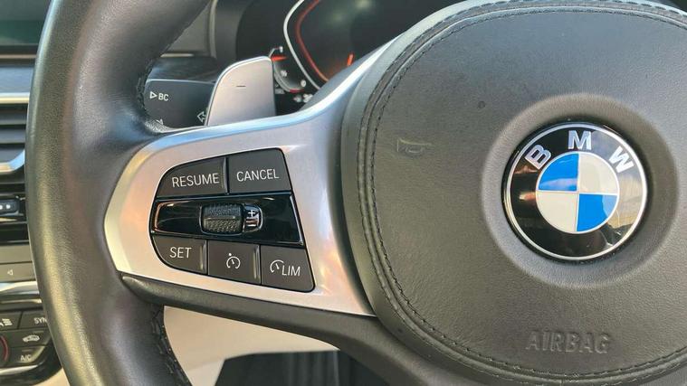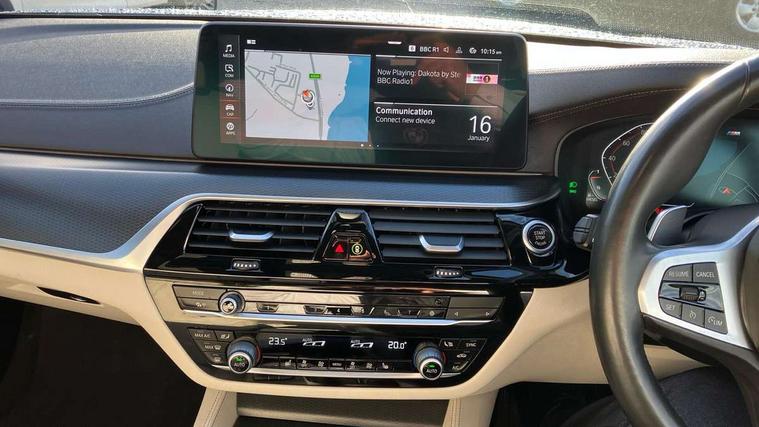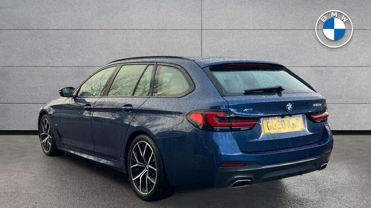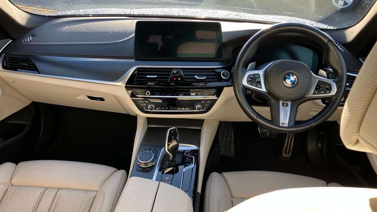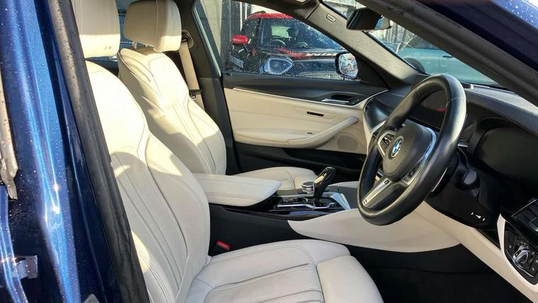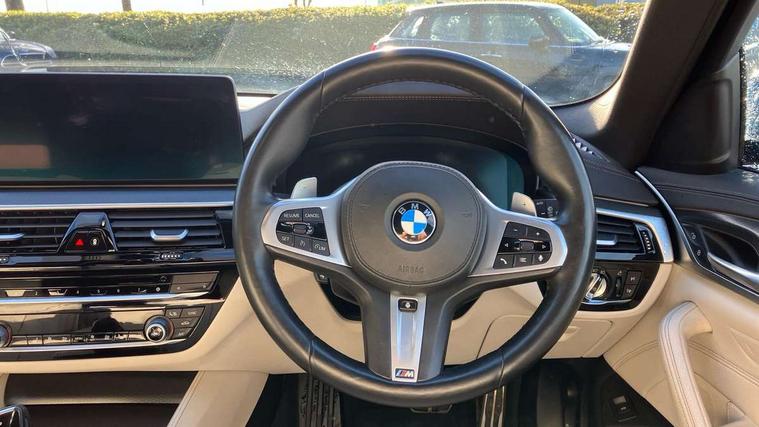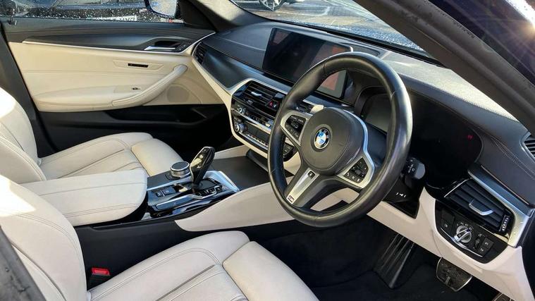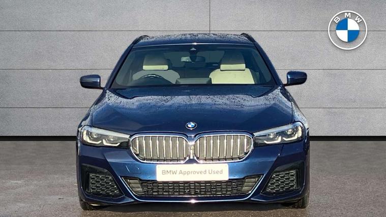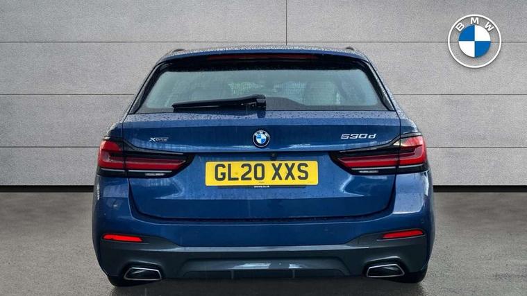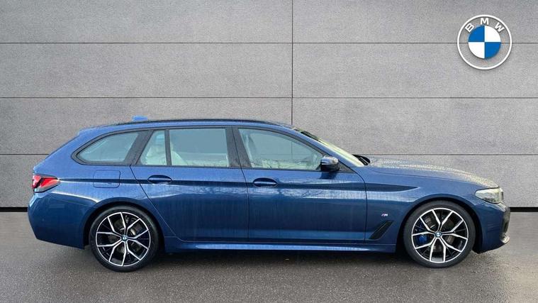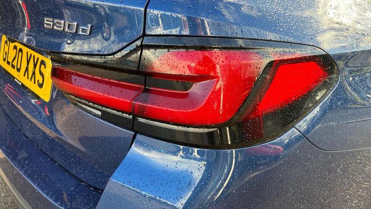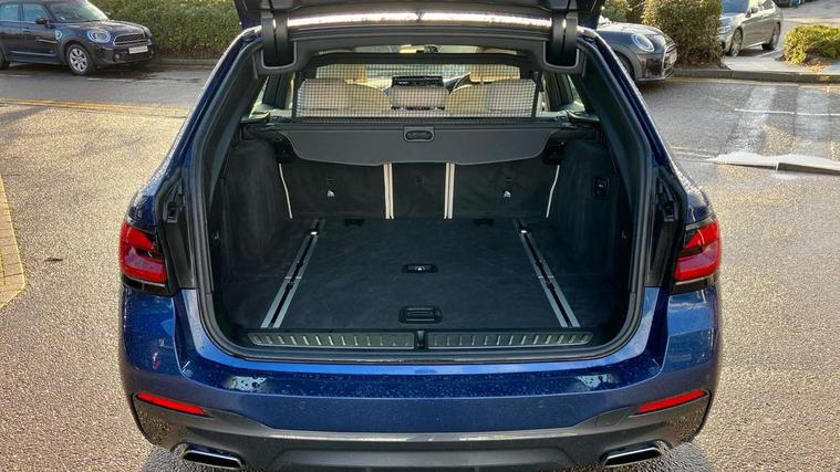 32GB hard disc drive (HDD) memory, Active Guard, BMW ConnectedDrive online services, BMW Live Cockpit Professional sat nav system with 12.3" instrument display and high resolution control display, BMW Teleservices, Brake pad wear indicator, Cruise control with brake assist, Driving experience switch, Electric boot lid - electrically opening/closing rear tailgate, Electric Power Steering (EPS) with Servotronic, iDrive touch controller with shortcut buttons, Intelligent emergency call, Multifunctional instrument panel, Oil sensor for level and grade, On board computer inc. average speed, fuel consumption, liquid crystal Info display, journey computer, outside temperature display, personal profile, On-board diagnosis - OBD, Powered by Operating System 7.0, Service interval indicator, Speed limiting function, Stop/start button, 48V Mild hybrid technology, Diesel particulate filter, Drive performance control with ECO PRO comfort + sport mode, Engine cover with twin turbo designation, M sport suspension, Steptronic sport transmission with gearshift paddle switches on steering wheel, DAB Digital radio, Favourite buttons, Acoustic glazing, All round anti-corrosion system, Automatically dimming rear view mirror, BMW Individual high gloss shadow line includes exterior mirror frame, window frame surround, B pillar finish, air breather in high gloss black, BMW Individual high gloss shadow line roof rails, Body colour door handles, Body coloured bumpers, Door handle illumination, Dynamic brake lights with LED technology, Electric front and rear windows with fingertip open/close + anti-trap facility and comfort closing function, Electrically adjustable and heated exterior mirrors includes integrated direction indicators and automatic parking function, Follow me home headlight function, Heated windscreen washer jets, High gloss black active air stream kidney grille, Independent opening for tailgate window, Interior rear view electrochromatic mirror with automatic anti dazzle function, LED daytime running lights, LED third brake light, M designation on front side panels, left and right in chrome, Rain sensor with automatic headlight activation, Trapezoidal visible exhaust tailpipes, xDrive designation on tailgate, 12V power socket in front and rear, 40/20/40 split folding rear seats with additional mechanism in luggage compartment, Armrest - front and rear integrated door trim, centre console includes storage compartment, rear centre includes 2 cupholders, Child seat ISOFIX attachment with rear outer seats includes top tether, Cup holders (2 front and 2 rear), Front and rear footwell lights, Front reading lights, Height and length adjustable steering column and activation via lateral lever on the steering column, Illuminated M door sill finishers, Lockable glove compartment with light, M specific pedals, M specific velour floor mats, Multifunction controls for leather steering wheel, Rear headrests, Retractable luggage compartment dividing net, Three spoke sport M leather steering wheel, Through loading system with 40/20/40 split folding rear seat, Ambient lighting pack - 5 Series, Connected package professional - 5 Series, Expanded exterior mirror pack - 5 Series, M Aerodynamic pack - 5 Series, 3x3 point rear seatbelts, Airbags - driver/front passenger, rear and side, first and second row seats head airbags, front passenger seat airbag deactivation + knee airbag, Anti-lock braking system (ABS), Automatic Stability Control (ASC), Brake assist function, Brake energy regeneration, Cornering brake control (CBC), Crash sensor activating central locking release, hazard warning lights, fuel cut off and interior lighting, Deformation zones - front and rear with door reinforcements and bumpers up to 2.5 mph, DSC - Dynamic Stability Control, Dynamic brake control, Dynamic Traction Control - DTC, Electromechanical parking brake with automatic drive away release and auto hold function, Electronic brake force distribution, Engine drag torque control, Front and rear brake discs with interior ventilation, Front head restraints with anti-whiplash, Hill start assist, M Sport brake in high gloss blue painted brake callipers with M designation, Mechanical child proof lock on rear doors, Passive protection for pedestrians, Side impact protection, Three point seat belts for all four seats, Two tone horn, Tyre pressure indicator, Warning triangle and first aid kit, Alarm system (Thatcham 1) with remote control and electronic engine immobiliser, Locking wheel bolts,