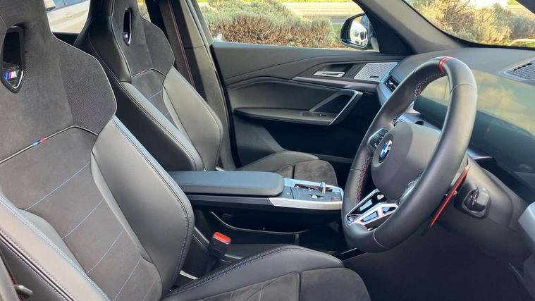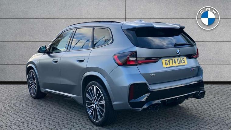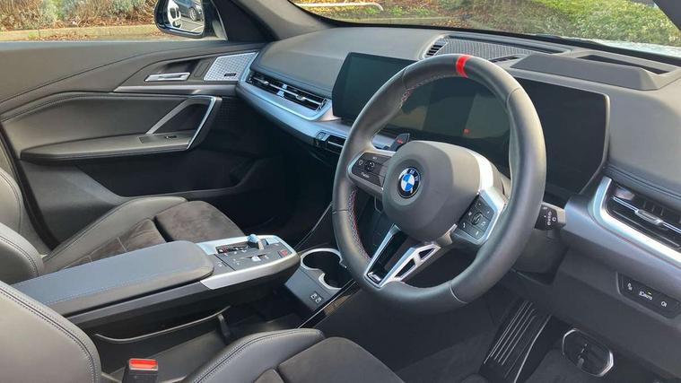 Attentiveness assist, Automatic start/stop function, BMW Live Cockpit Plus with 10.25" instrument cluster and 10.7" display, BMW Operating system 9 with BMW Maps, real-time traffic information, in-car experiences, remote services and smartphone integration, BMW Teleservices, Brake pad wear indicator, Condition based service, Connected eDrive Services, Drive off assistant, Electrically opening/closing tailgate with opening/closing with remote control and contactless opening and closing, iDrive controller, Language version English, My Modes, Parking Assistant with Reversing Assistant, active PDC, Lateral Parking Aid, Rear View Camera and Park Distance Control, Personal Profile - automatic lock when driving away selectable, Servotronic PAS, Tyre puncture warning system, Widescreen display, Aluminium lightweight construction, Double VANOS, EU6 emissions management, High precision injection, Larger Fuel Tank, M Adaptive suspension, Performance Control, Petrol Particulate Filter, Reinforced crankshaft drive, Steptronic transmission with double clutch and gear shift paddles, Twin scroll turbocharger with Valvetronic, xDrive intelligent four wheel drive system, BMW Personal eSim, DAB Digital radio, Harman/Kardon surround sound audio system, 4 exhaust tailpipes with tailpipe trims in pearl chrome, BMW M radiator grille with twin vertical bars in black high gloss including M badge, Dynamic brake lights, Electric adjustable heated door mirrors, Electric windows - front and rear, with open/close fingertip control, anti-trap facility and comfort closing, Folding door handles integrated flush with surface, Follow me home headlights, Front and rear bumper panel with M specific design, in body colour with inserts in black high gloss, Front door exit lights, Heated rear window, High gloss shadowline, Key with M identification, LED 3rd brake light integrated in rear spoiler, LED daytime running lights, LED number plate light, M identification on the sides, M Mirror caps, M roof rails high gloss shadow line, M signature on front right/ left side panel, M spoiler in black high gloss, Model badge X1 on left tailgate, motorisation on right, Rain sensor including auto headlights activation, Rear side wing doors, Rear wiper, Roof mouldings in vehicle colour, Side sill trim panel in M styling, Sun protection glass, Trailer stabilisation logic, Windscreen washer nozzle for rear view camera, Windscreen wipers front with heated washer nozzles, 12V - Power sockets with front centre console and luggage compartment, 2 bag hooks in luggage compartment, 2 cup holders in front, 2 x USB Type C ports for charging in front centre console + 2 x USB Type C ports for charging in rear centre console, 3 rear headrests, 3 seat bench in 2nd row, 3 upper retaining strap clips integrated into rear panels of seat backrests, 40:20:40 split folding rear seats, Ambient interior lighting, Anthracite headlining, Anthracite Velour front and rear floormats, Bottle trays in all doors, Child seat ISOFIX attachment for two outer rear seats and front passenger seat with anchorage points, Clothes hook rear, Driver and front passenger heated seats, Dual zone automatic air conditioning, Front and rear door pockets, Front centre console storage compartment, Front/rear adjustable head restraints, Glove compartment, Light on right in luggage compartment, M sport leather steering wheel, Manual steering column height and depth adjustment, Middle centre console storage compartment, One piece parcel shelf opens together with tailgate and removable, Rear armrest in door trim panel, Single front passenger seat, Sport leather multifunction steering wheel with thumbrests and operation of instrument display, audio, telephone and driver assistance, Storage compartment net in left side trim panel, Storage compartment with folding cover under centre console armrest cushion, Storage tray in right side trim panel, Tilt adjustment incl. cargo function of 2nd row of seats, ABS/EBD, Automatic hold function, Automatic Stability Control (ASC), BMW emergency call, Braking readiness, Cornering brake control (CBC), Crash Sensor - activates hazard/interior lighting + unlocks doors, Driver/Front Passenger airbags, Driver/front passenger side airbags, Dry braking, Dynamic brake control, Dynamic stability control + (DSC+), Electromechanical parking brake, Energy recovery system, First aid kit, Front and rear brake discs, Front and rear head airbags, Front passenger airbag deactivation, Integrated brake system, PC iBrake PostCrash approach control warning with light braking function, Rear door child safety locks, Three point seat belts in all seats, Tyre pressure monitor, Warning triangle, Alarm system with tilt sensor, monitoring doors, bonnet interior and tailgate, Closing system with central locking, Locking wheel bolts, Luxury instrument panel, Tyre repair kit (including Tyre sealant and 12V Compressor),