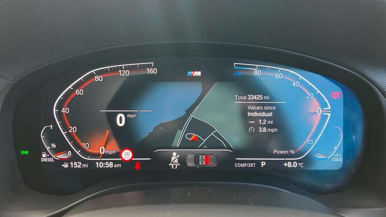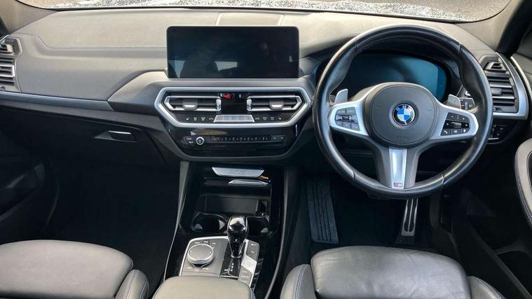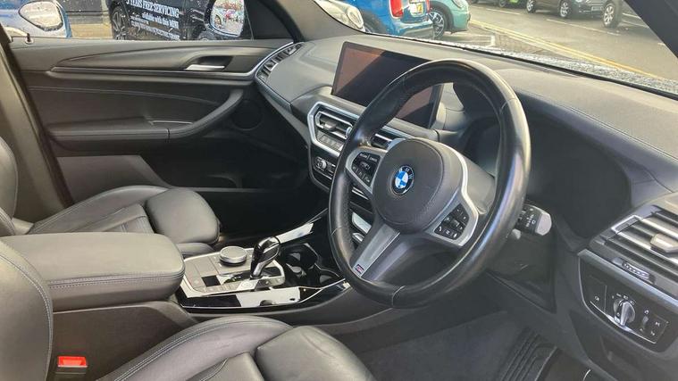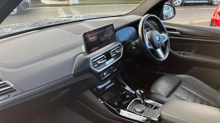 Active Guard, Attentiveness assist, BMW Live Cockpit Professional nav system including 12.3" instrument display + 12.3 high resolution control display, BMW Online services, BMW Teleservices, Brake pad wear indicator in front and rear, Check Control warning system for monitoring of lights and door/luggage compartment open warning, Condition based service - BMW service history, electronic service booklet, integrated owner's handbook, Connected drive services, Cruise control with brake function + speed limiter, Electric boot lid, Front/rear Parking distance control, iDrive Controller with 8 favourite buttons, Instrument cluster with speedometer with mph readout, tachometer, fuel gauge and oil temperature gauge, Lights on warning by audio warning signal when ignition is switched off, Oil sensor for level and grade, warning by check control system, On board computer - average speed+fuel consumption, service interval, clock/date, odometer/trip meter, outside temperature display and ice warning, Optimum shift indicator, Personal Profile - automatic lock when driving away selectable, Stop/start system, Variable sports power steering, Automatic transmission with gearshift paddles, Diesel particulate filter, Drive performance control with ECO PRO comfort + sport mode, Incorrect fuelling protection, Larger capacity fuel tank, M sport suspension, Multi-link rear suspension, Performance Control, BMW professional radio/CD/MP3, DAB tuner, Acoustic glazing, Automatic windscreen wipers and automatic headlight, Black finish on B pillars, Body colour door handles, Body colour electric adjust heated aspherical door mirrors, Body colour roof mouldings, Body coloured bumpers, Direction indicator, side repeaters, integrated in exterior mirrors, Dynamic brake lights, Exhaust tailpipes - dual, round, split left and right with chrome finisher, Fingertip control / anti-trap function on electric window, Folding wing mirrors with auto dimming, Follow me home headlights, Front and rear bumper system with replaceable deformation elements, Front and rear electric windows, Gloss chrome tailpipes finishers, Green tinted heat insulating glass, Heated windscreen washer jets, High beam assistant, High gloss black shadow line roof rails, High gloss shadowline exterior trim in decorative moulding side frame/recess cover/guide rail/B, C pillars/mirror frame and triangle with mirror base, High level 3rd brake light incorporating LED Technology, Interior rear view electrochromatic mirror with automatic anti dazzle function, LED tail lights, Lightweight engineering, M aerodynamic bodystyling, Model designation, Rear side wing doors, Rear wing door, Rear wiper, Shark fin antenna, Side exterior M designation badges, Visible VIN plate, Welcome lighting, Windscreen wipers with adjustable interval, 12V power socket in front centre console, 3 rear headrests, 3 zone automatic air conditioning, 4 lashing points to secure luggage, 40:20:40 split folding rear seat with loading system, 5 seats, Ambient lighting, Anthracite headlining, Automatic interior light when door is opened/ignition switched off or via remote key, Foldable storage floor with compartment, Four grab handles integrated in roof lining, Front and rear bottle holders integrated into door trim storage compartments, Front and rear side armrests integrated into door trim, Front centre armrest with storage compartment, Front footwell lights, Front head restraints, Front sports seats, Front/rear courtesy lights with soft on/off dimming, Front/rear reading lights, Heated front seats, Isofix rear child seat preparation, Leather gear knob, Luggage area underfloor compartment, Luggage compartment lighting, M sport leather steering wheel, Multifunction steering wheel, Parcel shelf removeable and storable under boot floor, Reach and rake adjustable steering column, Rear centre armrest with 2 cupholders, Removable / retractable luggage cover, Seat backrest width adjustment, Slope adjustable rear seats, Storage compartment in rear centre console and front/rear door trims, Sun visors with vanity mirrors and ticket pocket, Toolkit located in luggage compartment, Two front cupholders with removable oddments tray/lid, Vernasca leather upholstery, Connected pro pack - X3, Driving assistant pack - X3, ADB - Automatic Differential Brake, Anti-lock braking system (ABS) with brake assist, Automatic Stability Control (ASC), Battery safety cut-off, BMW emergency call, Brake drying, Brake energy regeneration, Braking pre-tensioning, Child locks on rear doors, Cornering brake control (CBC), Crash Sensor - activation of central locking release, hazard warning light and interior lighting, Deactivation of fuel pump in the event of a crash, Driver and front passenger front and side airbags with passenger deactivation and ITS front and rear head airbags, DSC+, Dynamic brake control, Dynamic Traction Control - DTC, Electromechanical parking brake, Hill descent control, Hill start assist, Seatbelt security check for front seats, Side impact protection, Three point seatbelts to all seats with front and outer rear pyrotechnic belt tensioners and seat belt force limiters, Two tone horn, Tyre pressure sensor, Ventilated front and rear disc brakes, Warning triangle and first aid kit, Central locking switch for all doors, fuel filler cap and luggage compartment, Electronic engine immobiliser, Locking wheel nuts, Remote control including two integrated key - one button for open/close all lockable content, windows and separate button for open luggage compartment, Remote control Thatcham category 1 alarm, Start/stop button with Comfort Go keyless engine start and auto Start/stop deactivation button, Low rolling resistance tyres,