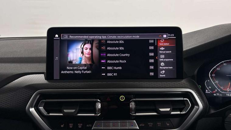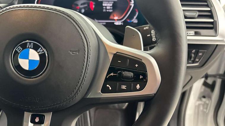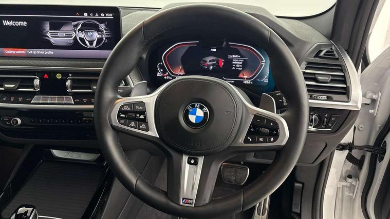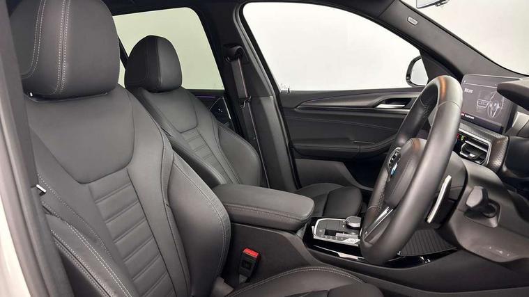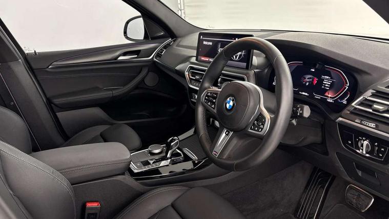 Active Guard, Attentiveness assist, BMW Live Cockpit Professional nav system including 12.3" instrument display + 12.3 high resolution control display, BMW Online services, BMW Teleservices, Brake pad wear indicator in front and rear, Check Control warning system for monitoring of lights and door/luggage compartment open warning, Condition based service - BMW service history, electronic service booklet, integrated owner's handbook, Connected drive services, Electric boot lid, Front/rear Parking distance control, iDrive touch controller with 8 favourite buttons, Instrument cluster with speedometer with mph readout, tachometer, fuel gauge and oil temperature gauge, Lights on warning by audio warning signal when ignition is switched off, Oil sensor for level and grade, warning by check control system, On board computer - average speed+fuel consumption, service interval, clock/date, odometer/trip meter, outside temperature display and ice warning, Optimum shift indicator, Personal Profile - automatic lock when driving away selectable, Run flat indicator, Stop/start system, Variable sports power steering with drive performance control Sport+ mode, Automatic transmission with gearshift paddles, Diesel particulate filter, Incorrect fuelling protection, Larger capacity fuel tank, M sport suspension, Multi-link rear suspension, BMW professional radio/CD/MP3, DAB tuner, Acoustic glazing, Automatic windscreen wipers and automatic headlight, Black finish on B pillars, Body colour door handles, Body colour electric adjust heated aspherical door mirrors, Body colour roof mouldings, Body coloured bumpers, Direction indicator, side repeaters, integrated in exterior mirrors, Dynamic brake lights, Exhaust tailpipes - dual, round, split left and right with chrome finisher, Fingertip control / anti-trap function on electric window, Folding wing mirrors with auto dimming, Follow me home headlights, Front and rear bumper system with replaceable deformation elements, Front and rear electric windows, Gloss chrome tailpipes finishers, Green tinted heat insulating glass, Heated windscreen washer jets, High beam assistant, High gloss black shadow line roof rails, High gloss shadowline exterior trim in decorative moulding side frame/recess cover/guide rail/B, C pillars/mirror frame and triangle with mirror base, High level 3rd brake light incorporating LED Technology, Interior rear view electrochromatic mirror with automatic anti dazzle function, LED tail lights, Lightweight engineering, M aerodynamic bodystyling, M Sport entry door sill strips, Model designation, Rain sensor, Rear side wing doors, Rear wing door, Rear wiper, Shark fin antenna, Side exterior M designation badges, Visible VIN plate, Welcome lighting, Windscreen wipers with adjustable interval, 12V power point in luggage area, 12V power socket in front centre console, 2 x USB Type C ports for charging and data transmission (front centre console) and 2 x USB Type C ports for charging (rear centre console), 3 rear headrests, 3 seat bench in 2nd row, 3 zone automatic air conditioning, 4 lashing points to secure luggage, 40:20:40 split folding rear seat with loading system, Ambient lighting, Anthracite headlining, Automatic interior light when door is opened/ignition switched off or via remote key, Floor mats in velour, Foldable storage floor with compartment, Four grab handles integrated in roof lining, Front and rear bottle holders integrated into door trim storage compartments, Front and rear side armrests integrated into door trim, Front centre armrest with storage compartment, Front footwell lights, Front head restraints, Front passenger seat, Front sports seats, Front/rear courtesy lights with soft on/off dimming, Front/rear reading lights, Heated front seats, Isofix rear child seat preparation, Leather gear knob, Lockable glove compartment, Luggage area underfloor compartment, Luggage compartment lighting, M sport leather steering wheel, Multifunction steering wheel, Parcel shelf removeable and storable under boot floor, Reach and rake adjustable steering column, Rear centre armrest with 2 cupholders, Removable / retractable luggage cover, Slope adjustable rear seats, Storage compartment in rear centre console and front/rear door trims, Sun visors with vanity mirrors and ticket pocket, Toolkit located in luggage compartment, Two front cupholders with removable oddments tray/lid, Connected pro pack - X3, ADB - Automatic Differential Brake, Anti-lock braking system (ABS) with brake assist, Automatic Stability Control (ASC), Battery safety cut-off, BMW emergency call, Brake drying, Brake energy regeneration, Braking pre-tensioning, Child locks on rear doors, Cornering brake control (CBC), Crash Sensor - activation of central locking release, hazard warning light and interior lighting, Deactivation of fuel pump in the event of a crash, Driver and front passenger front and side airbags with passenger deactivation and ITS front and rear head airbags, Driver and front passenger knee airbag, DSC+, Dynamic brake control, Dynamic Traction Control - DTC, Electromechanical parking brake, Hill descent control, Hill start assist, Seatbelt security check for front seats, Side impact protection, Three point seatbelts to all seats with front and outer rear pyrotechnic belt tensioners and seat belt force limiters, Two tone horn, Tyre pressure sensor, Ventilated front and rear disc brakes, Warning triangle and first aid kit, Central locking switch for all doors, fuel filler cap and luggage compartment, Electronic engine immobiliser, Locking wheel nuts, Remote control including two integrated key - one button for open/close all lockable content, windows and separate button for open luggage compartment, Remote control Thatcham category 1 alarm, Start/stop button with Comfort Go keyless engine start and auto Start/stop deactivation button, Low rolling resistance tyres,