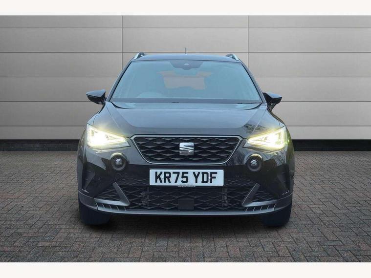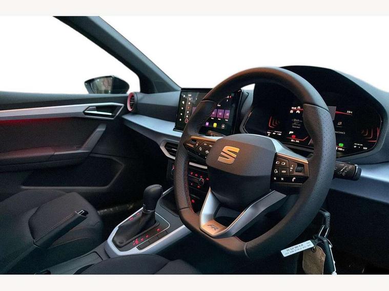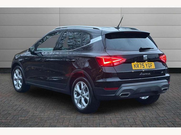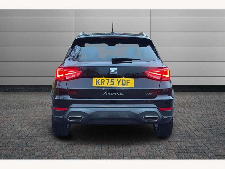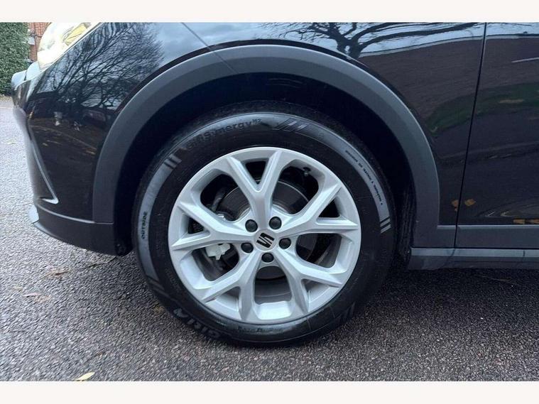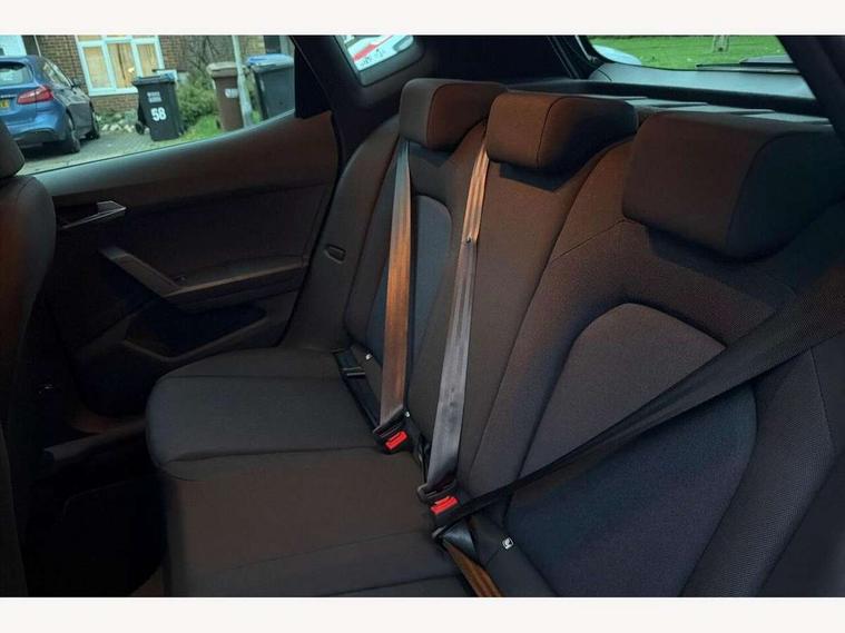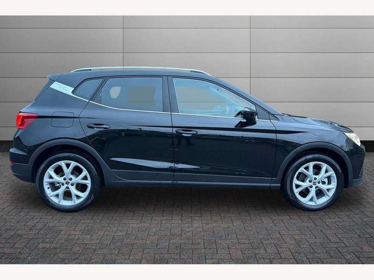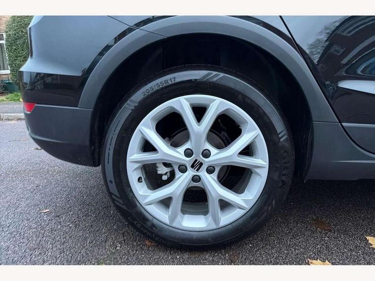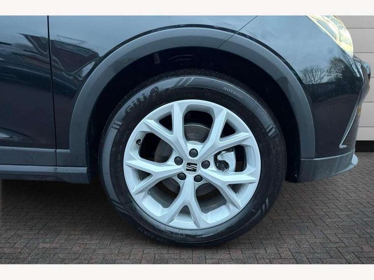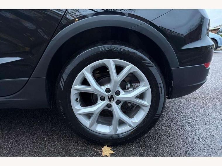 'Lights On' Reminder warning buzzer, 8" Digital cockpit, Digital clock, E-call, Electric speed sensitive power steering, Full link smartphone integration with mirror link, wireless apple carplay, Google android auto + USB Type C cable for apple and android devices, Lane keeping system, Low fuel warning light, Outside temperature display, RPM counter, SEAT Drive profile - Four different models normal-sport-eco-individual, steering response, throttle response and gear shifts mode, Trip computer, Wireless phone charger, 9.2" colour touchscreen with navigation system, voice control and USB port (type c), Bluetooth interface for hands free and audio streaming, DAB digital radio and AM/FM radio, Steering wheel mounted audio controls, Anti theft roof antenna, Auto dimming interior rear view mirror, Automatic activation of hazard warning lights, Body coloured bumpers, Body coloured door handle inserts, Chrome roof rails and window surrounds, Dark tinted rear windows, Electric front/rear windows, Electrically adjustable, heated and folding door mirrors, Front fog lights with cornering function and rear fog light, FULL LED automatic headlights with dynamic headlight range control, coming and leaving home, LED daytime running lights, LED rear tail lights and licence plate lights, Protective side mouldings, Rain sensing wipers, Rear side wing doors, Rear spoiler, Rear window wash/wipe, Roof colour door mirrors, Third brake light, Twin exhaust pipe styling hidden exhaust pipe, Visible VIN plate, 2 cupholders, 3 seat bench in 2nd row, 60/40 split folding rear seat, Aircare filter, Black interior roof, Cloth upholstery, Double boot floor, Driver sunvisor with covered mirror + card holder, Dual zone climate control, Front courtesy light with front reading lights, Gear shift indicator, Height adjustable front seats, Height/reach adjustable steering column, Illuminated air vent surrounds, Illuminated boot, Instrument lighting with brightness control, Interior ambient lighting, Interior light in footwell, central console and door panel, ISOFIX points in outer rear seats with top tether anchorage points, Passenger sunvisor with vanity mirror, Perforated flat bottomed leather steering wheel/gear knob/handbrake with red stitching and FR logo, Potentiometer, Single front passenger seat, Steering wheel mounted gearshift paddles, Two front and three rear height adjustable headrests, Interior chrome pack - Arona, Safe and driving pack (S) - Arona, 3 point seatbelts on all rear seats, ABS, Active front headrests, Child locks on rear doors, Driver and front passenger airbags with front passenger airbag de activation, front side and curtain airbags, Emergency Brake Assist (EBA) and front assist, Front and rear seatbelt reminder, Hill hold control, Multi-Collision braking, Tiredness recognition system, Traction control, Tyre pressure monitoring system, Alarm with back up horn with tow away protection, Deadlock, Electronic engine immobiliser, Locking wheel bolts, Remote central locking, Titan black dashboard, 17" Dynamic alloy wheels,