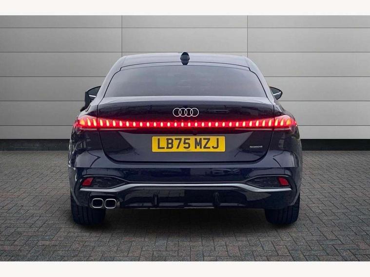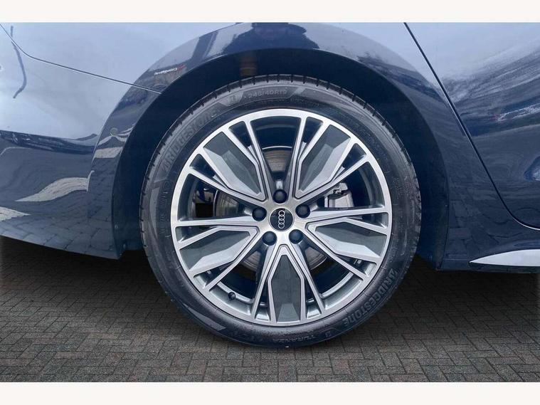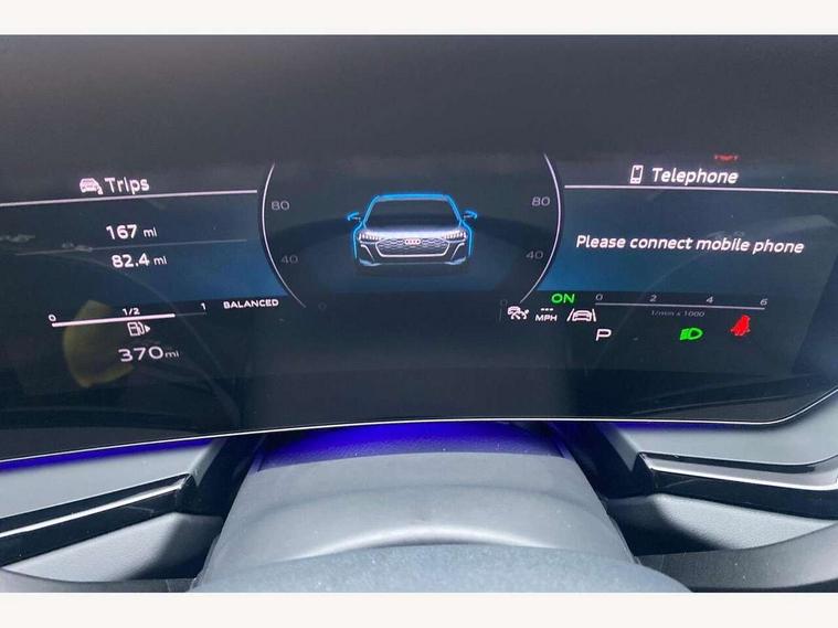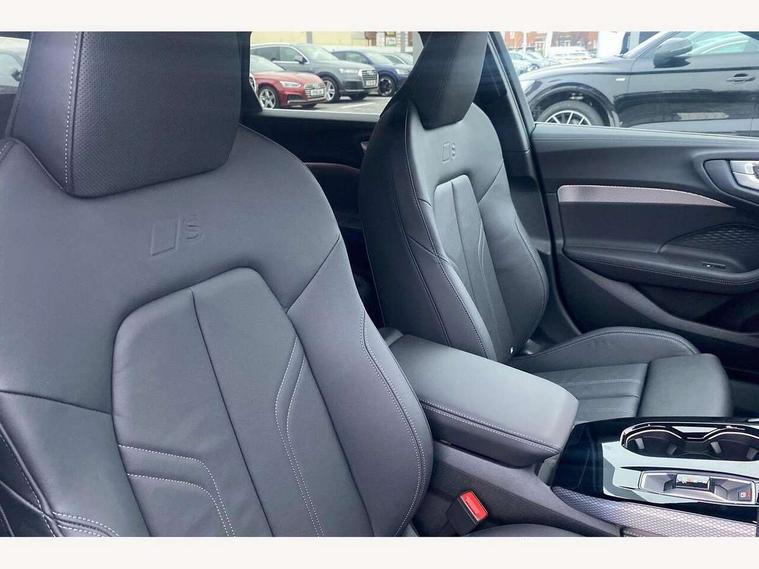 Adaptive cruise control, Advanced driver attention and fatigue montior, Audi application store, Audi assistant, Audi connect emergency call and service, Audi drive select, Audi virtual cockpit plus with 11.9" OLED colour display, Automatic start/stop system with coasting functionality, Camera based traffic sign recognition, Intersection assist, Lane departure warning, MMI navigation plus with high resolution 14.5" OLED touchscreen colour display, Park assist plus, Parking system plus with 360 display, Progressive steering with servotronic, Rear view camera, Smartphone interface, Swerve assist and turn assist, Traffic sign based speed limiter, Sports suspension lowered by 20mm, 2 USB-C ports in both the front and rear, Audi sound system impressive sound with 8 loudspeakers including centre speaker and subwoofer, 6-channel amplifier with a total output of 180 watts, DAB digital radio reception, Smartphone compartment with wireless charging, Aluminium window trims, Auto dimming rear view mirror, Body colour door mirrors, Door mirrors - electrically adjustable, heated, folding and auto dimming on both sides, Front and rear electric windows, Front door sill trims with aluminium inlays, illuminated with 'S' logo, High beam assist, LED headlights Plus incl. digital daytime running lights, turning light, all-weather light, motorway light, manouevring light and intersection light, LED rear lights pro incl. dynamic rear indicators and illuminated light strip with animated coming and leaving home function, LED third brake light, Privacy glass, Rear and side windows with heat insulating glass, Rear boot, Rear side wing doors, S Line badges on the front wings, S line bumpers, radiator grille and diffuser in phantom black and diffuser insert in matt anthracite, White rhombus logo projection light in exterior mirrors, Windscreen with acoustic glazing, 3 rear headrests, 3 seat rear bench, 3 spoke leather steering wheel with multi-function buttons with touch control, flattened on top and bottom, with S badging and contrast stitching, 3-zone automatic climate control, 40:20:40 split folding rear seat bench with centre armrest and cup holders, Comfort front centre armrest, Front and rear floor mats, Front seats with manual adjustment for position and 4-way electric lumbar support, Front sport seats with integrated headrest and S embossed logo, Headlining in black cloth, Heated front seats, i-Size child seat mounting on the front passenger side and outer rear seats, i-Size and top tether on the outer rear seats, Luggage compartment lid, electrically opening and closing, Manual steering column height and depth adjustment, Single front passenger seat, Stainless steel pedals and footrest, Steering wheel grips in perforated leather and shift paddles, Ambient lighting package plus - A5, 3x3 point rear seat belts, Driver airbag, Electric child safety locks, First aid kit with warning triangle and vests, Front emergency brake assist, Front passenger airbag, Front passenger airbag deactivation, Front side airbags with head airbag system and front interaction airbag, Hill hold assist, Seat belt monitoring with rear seat occupant reminder, Tyre pressure loss indicator, Anti theft alarm, Anti-theft wheel bolts, Keyless Go, Accent surfaces and control buttons in gloss black, Black dashboard with contrast stitching, Inlays in matt brushed aluminium with linear embossing, anthracite, Softwrap in leatherette with contrast stitching, Upper and lower interior elements in leatherette, Tyre repair kit,