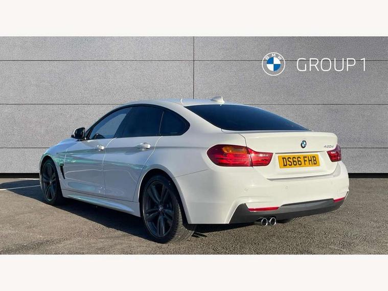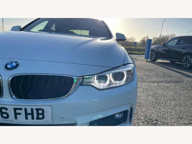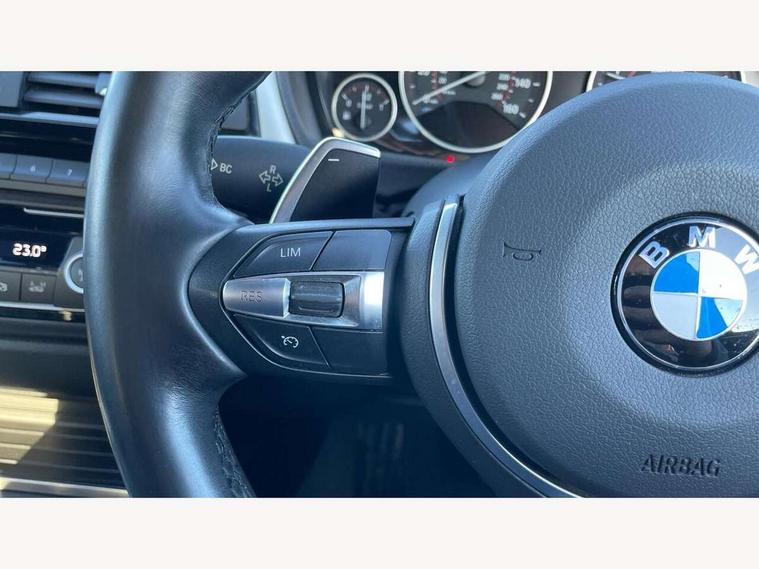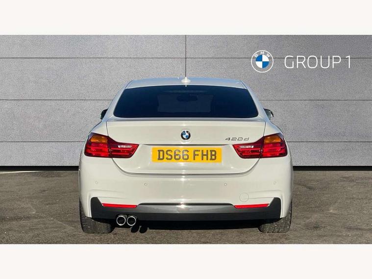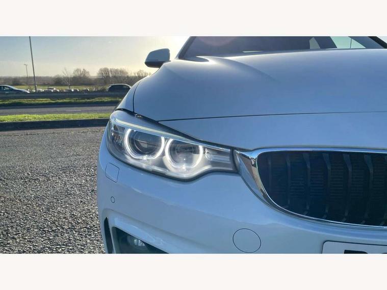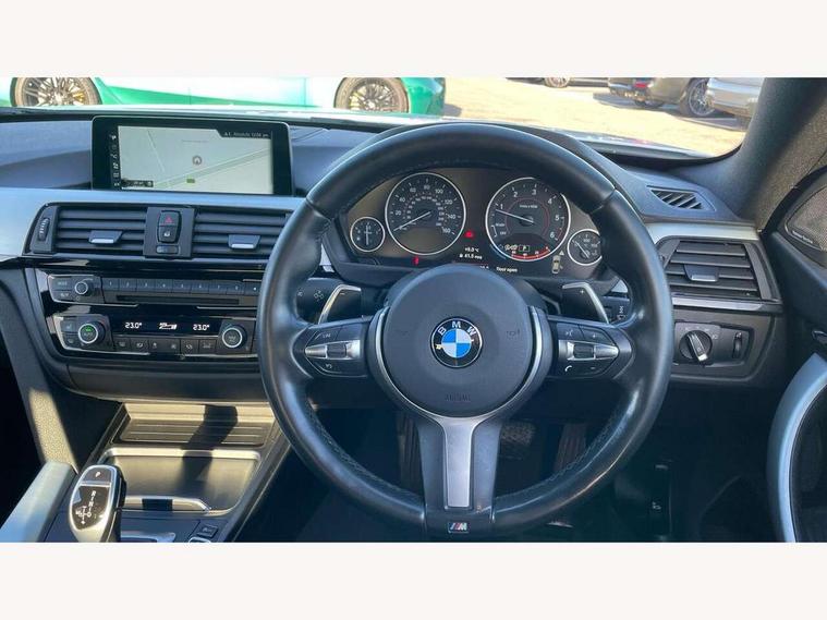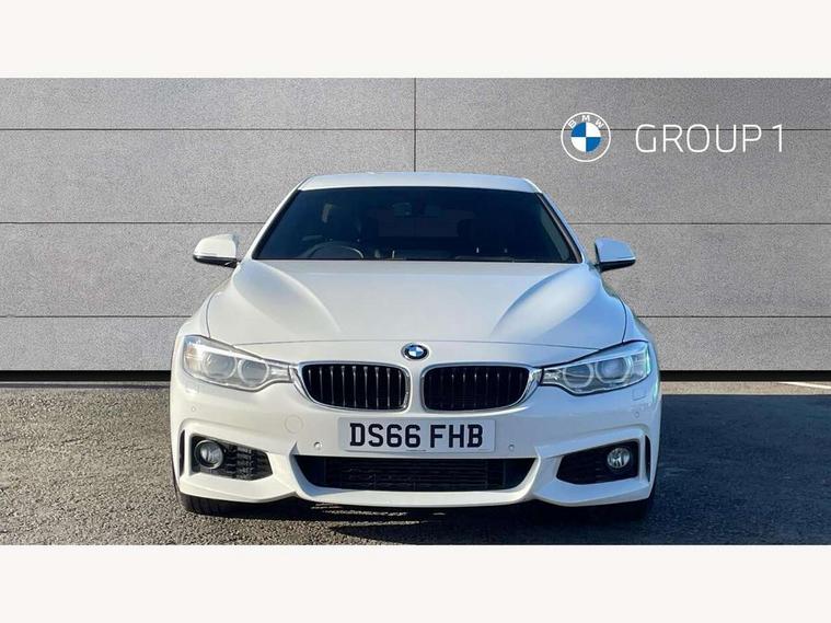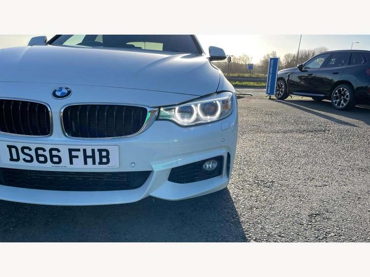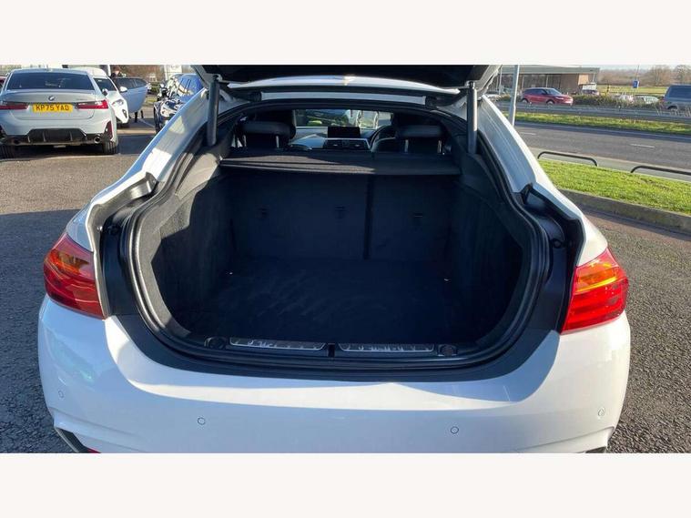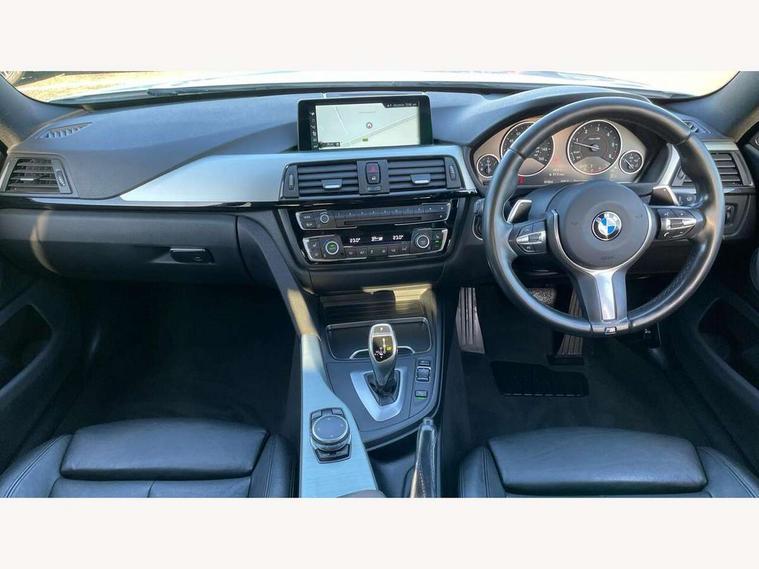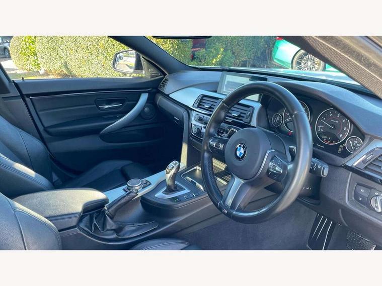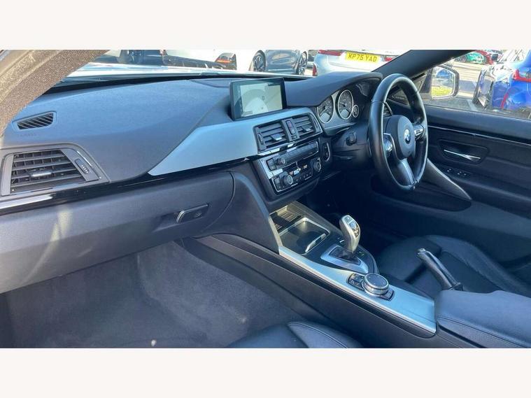 Automatic tailgate opening, BMW Online services, BMW Teleservices, Brake pad wear indicator warning light, Check control system, Door/boot open warning, Front/rear Parking distance control, Lights on warning, Oil temperature gauge, On board computer, Outside temperature display, Run flat indicator, Service interval indicator, Stop/start button, Diesel particulate filter, Drive Performance Control, Electronic differential lock, Sports function on gearbox with steering wheel mounted gearshift paddles, Auxiliary point for auxiliary devices, BMW professional radio/CD/MP3, DAB Digital radio, 2 speed adjustable intermittent wipers with wash/wipe function, Auto dimming rear view mirror, Body colour bumpers, Body colour door handles, Body colour door mirrors, Body colour roof mouldings, Chrome exhaust tailpipe, Chrome kidney grille with black vertical slats, Daytime running lights, Electric adjustable heated door mirrors, Electric front and rear windows with fingertip open/close + anti-trap all round, Follow me home headlights, Front fog lights, Headlight range control, Headlight washers, Heat insulating tinted glass, Heated windscreen washer jets, High gloss shadow line, Individual door sill finishers, LED tail lights, M aerodynamic bodystyling, Rain sensor including auto headlights activation, Welcome lighting, Windscreen with grey shadeband, 12V sockets in front centre console and passenger footwell, 3 spoke leather M sport multifunction sports steering wheel, 4 grab handles, Anthracite headlining, Dual zone climate control, Folding storage compartment with glasses holder + coin tray, Front centre armrest with storage compartment, Front cupholders x 2, Front head restraints, Front sports seats with electric side bolster adjustment, Front/rear armrests within door panels, Glovebox with lid, Heated front seats, Integrated rear head restraints, ISOFIX child seat preparation+airbag deactivation, Lashing eyelets in boot, Leather gearknob, Leather handbrake, Reach + rake adjustable steering column, Rear centre armrest with 2 cupholders, Storage compartment in rear centre console, Sunvisors, Sunvisors with vanity mirrors, Toolkit located in luggage compartment, Velour floormats, Extended lights package - 4 Series, 3 point seatbelts on all seats, ABS/EBD, Automatic Stability Control (ASC), BMW emergency call, Brake assist function, Cornering brake control (CBC), Crash Sensor - activates hazard/interior lighting + unlocks doors, Driver seatbelt warning indicator, Driver/Front Passenger airbags, DSC+, Dynamic brake control, Dynamic Traction Control - DTC, Front passenger airbag deactivation, Front seatbelt force limiters, Front seatbelt pretensioner, Front side airbags, Hill start assist, ITS head airbags for front/rear, Side impact protection, Tyre pressure monitor, Warning triangle and first aid kit, Drive away door locking, Electronic immobiliser, Remote central locking, Remote control Thatcham category 1 alarm,