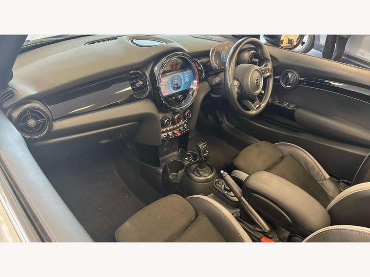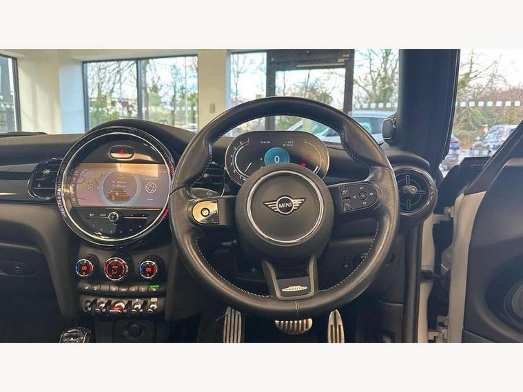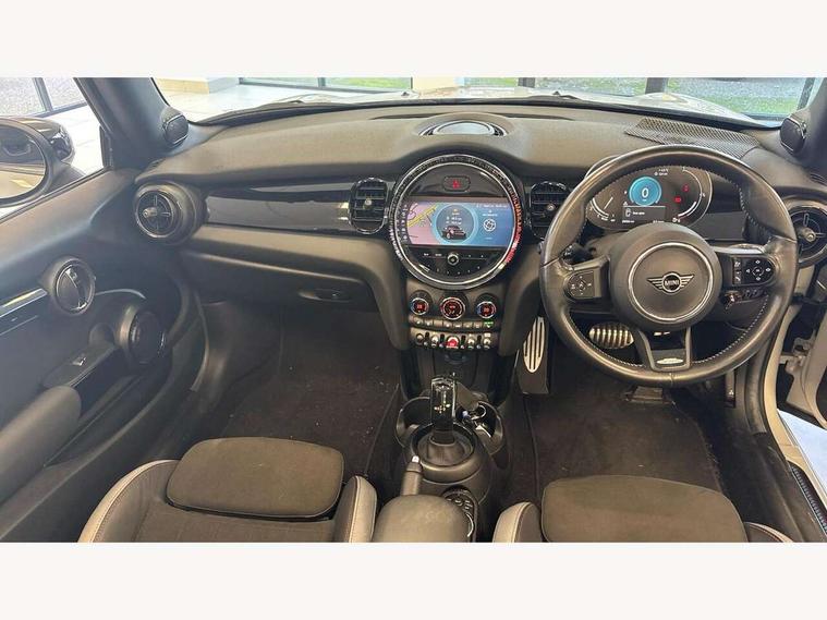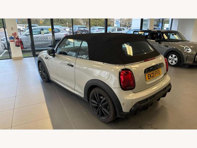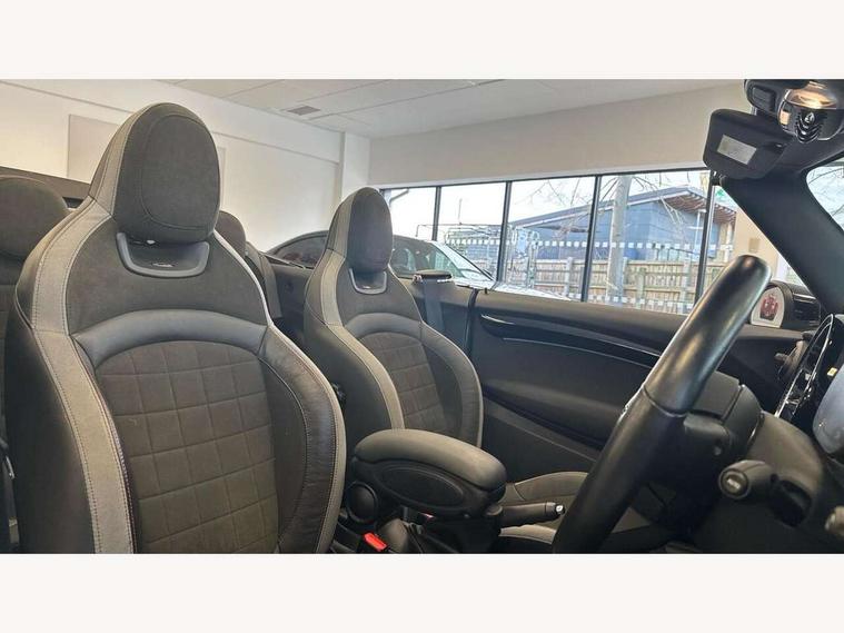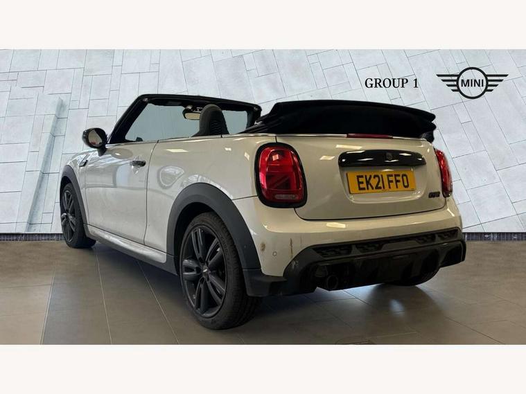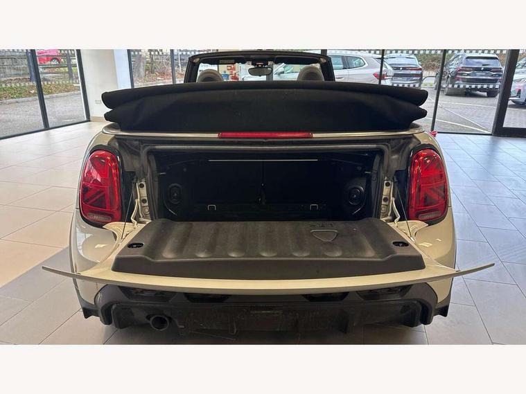 Automatic start/stop function with brake energy recuperation, Compatible mobile phone bluetooth with audio streaming, Digital instrument cluster, Electro-mechanical speed dependant steering assistance, MINI Driving Modes - centre toggle switch to control driving setting (sport, mid and green), Mini E-call, MINI TeleServices, On board computer, Rear park distance control, Service interval indicator, Adaptive suspension, Double Vanos system, Fully variable valve control, High precision injection, Performance Control, Steptronic transmission with double clutch, 8.8" touchscreen with LED ring, FM tuner and DAB digital radio, Automatic headlight activation switch, Body colour fuel filler cap, Chrome border high gloss black slats radiator grille, Dynamic brake lights, Electric windows, Fully electric black softtop with integrated sunroof functionality, Heated rear window, Heated windscreen washer jets, John Cooper Works - aerodynamic kit (front and rear apron, spoiler), front and rear sport bumpers and part-painted side sills with door sill finishers, LED headlight with closed ring and daytime driving lights, Left exhaust tailpipe with chrome finisher, Metal door sill strips with MINI imprint, Model logo Cooper on right of tailgate, Piano black exterior, Rain sensor window wipers, Rear fog lights, Rear LED lights with union jack design, Side scuttle panel with integrated indicator, Sun/heat protection glass, White indicator lenses, 12V Accessory socket in centre console, 4 lashing eyes in luggage compartment, 50/50 split folding rear seats, Chrome interior highlights, Colour line - Carbon black, Cupholders, Easy Load boot handles, Front and rear isofix with front passenger airbag deactivation, Glove compartment, Height and length steering column adjustment, Interior lighting with 12 basic colours selectable via toggle switch in roof, John Cooper Works walk nappa leather steering wheel with grey seam and John Cooper Works badge on piano black lower steering wheel spoke, Leather gearshift lever and handbrake gaiters, Leatherette integrated headrest, adjustable thigh support with john cooper works logo, LED reading lights, vanity mirror lights, front foot well light and spotlight on front seats, Manual air conditioning, Mechanical seat adjustment, driver seat height adjust, forward/back and front seats backrest, Multifunction steering wheel, Rear head restraints, Storage compartments in doors, Sunvisors with vanity mirrors, Velour floor mats, Convertible pack with comfort access - Mini Convertible, 3 point seatbelts on all four seats, 6 Airbags - front, side and seat belt tensioners, Active rollover protection, Anti-lock braking system (ABS), DSC - Dynamic Stability Control, Front and rear disc brakes, Hill start assist, Single tone fanfare horn, Tyre pressure monitoring system, Alarm system with tilt sensor, monitoring doors, bonnet interior and tailgate, Electronic vehicle immobiliser, Keyless Go, Piano black interior trim, Tool kit,