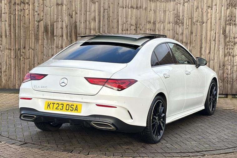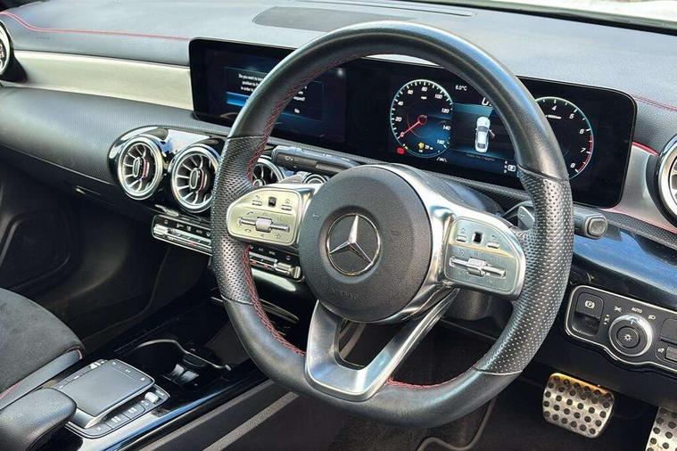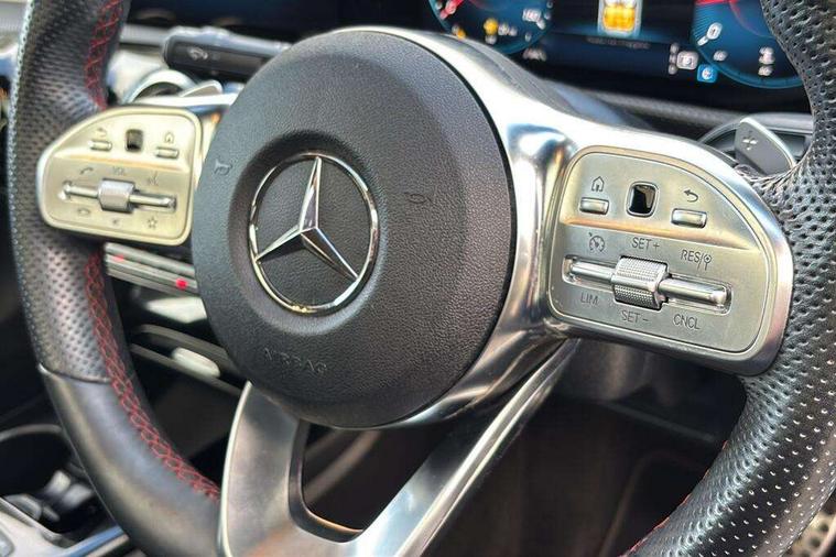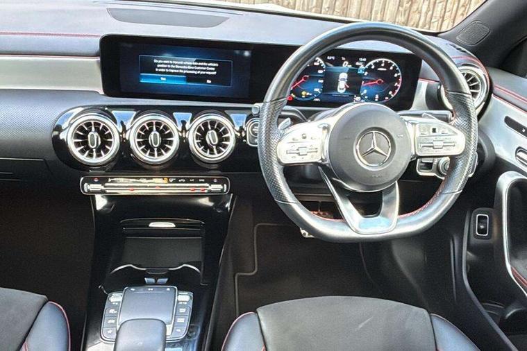 10.25 inch Instrument display with digital cockpit, 10.25 inch touchscreen central media display, Active lane keeping assist, Attention assist - Monitors steering behaviour and long journey fatigue, Blind spot assist, Bluetooth connection, Car wash mode, Cruise control with limiter, Direct steer system with speed sensitive power steering, DYNAMIC SELECT with a choice of driving modes (ECO, Comfort, Sport and Individual), ECO start/stop function, Fluid level warning indicator for fuel, oil, coolant and washer fluid, Hard-disk navigation, Hey Mercedes Voice activation, Lamp failure indicator, Mercedes me connect including emergency call system, accident recovery, breakdown and maintenance management, Mercedes me remote services, Outside temperature gauge, Owners manual and service booklet in English, Pre-installation of private car share, Preinstallation for Mercedes Benz link, Radio aerial integrated into front and rear windshields, Service indicator (ASSYST), Smartphone integration with Apple CarPlay and Android auto, Speed limit assist, Traffic sign assist, Trip computer in multifunction display with current consumption indicator, Lowered comfort suspension, Rear axle multi-link, DAB digital radio tuner, MBUX multimedia system, Mid-range sound system, USB (type C) ports (2) in stowage compartment and 1 in front of centre console, Adaptive brake lights, AMG body styling with AMG front apron and rear apron and visible exhaust tailpipe in chrome trim elements, AMG bodystyling side skirts, Body colour bumpers, Body colour door handles, Chrome beltline strips, Diamond radiator grille pins in chrome, Electric panoramic sunroof with automatic tilt and convenience closing fuinctions, rain sensor auto closing and electronic roller sunblind, Electric windows, Electrically adjustable and heated door mirrors with integrated LED indicators, Exhaust system with 2 Visible tailpipe trim elements and rear apron with trim in chrome, Headlamp assist automatic headlamp activation, Heated glass rear windscreen + timer control, High level LED third brake light, Integrated LED daytime running lights, Interior mirror with black reading lamps and frameless, LED tail lamp, Multibeam LED headlamps with adaptive highbeam assist plus, Privacy glass with dark tinting on rear side windows and rear window, Rain sensing windscreen wipers with two sensitivity settings, Rear boot, Rear fog lamp, Rear side wing doors, Variable front intermittent wipers, Window line trim strip in chrome, 3 seat bench in 2nd row, 3 spoke flattened bottom nappa leather multifunction steering wheel with perforated leather in grip area, 40:20:40 split folding rear seat backrests, Air conditioning - Two zone thermotronic luxury automatic climate control with display, Air vents with surround in silver chrome, Artico man-made leather upholstery, Automatic child seat recognition sensor, Black roof lining, Brushed stainless steel sports pedals with rubber studs, Electrically adjustable front memory seats including lumbar support, Floor mats with stitched AMG lettering, Front centre armrest with stowage, Galvanished gear shift paddles on steering wheel, Heated front seats, Illuminated front door sills with changeable cover, Illuminated glove compartment stowage, Interior lighting - 64 colour Ambient lighting, Luggage net on driver/front passenger seat backrest, Manually adjustable front seats, Manually height and reach adjustable steering column, Rear armrest with two integral cup holders for drinks, Rear head restraints, Single front passenger seat, Sport seats with fixed head restraints, Stowage compartment in centre console with retractable cover, Sunvisors with illuminated vanity mirrors, Touchpad on center console, Twin front cupholders, Two outer rear seat isofix and top tether child seat fixing points, Keyless go comfort pack - CLA, Light and sight pack - CLA, Mirror pack - CLA, Night package - CLA, Parking package - CLA, Active bonnet pedestrain safety measure which detects an impact and raises bonnet by 65mm, Active brake assist includes forward collision warning system with autonomous braking, Adaptive brake assist with hold function and hill start assist, Anti lock braking system (ABS) with brake assist, Black seat belts, Bonnet with power domes, Brake pad wear warning indicator, Childproof locks manually operated for rear doors and electrically operated for rear power windows, Crash responsive emergency lighting, Driver and front passenger head and sidebags, Driver and front passenger windowbags, Drivers knee airbag, Dual stage driver and front passenger airbags, Electric parking brake, Electronic stability programme with acceleration skid control, ESP curve dynamic assist, Exit warning, Front and rear seatbelt reminder, Front passenger seat occupancy sensor, Three point rear seat belts, Tyre pressure monitoring system, Warning triangle and first aid kit, Guard 360 degree guard vehicle protection system with immobiliser and interior protection, Remote central locking and crash sensor with emergency opening function, Light aluminium with longitudinal grain interior trim, 19" AMG multi-spoke black painted light alloy wheels with high sheen rim finish, Summer tyres, Tirefit tyre sealant kit,