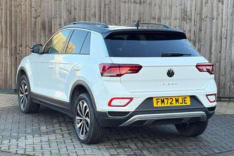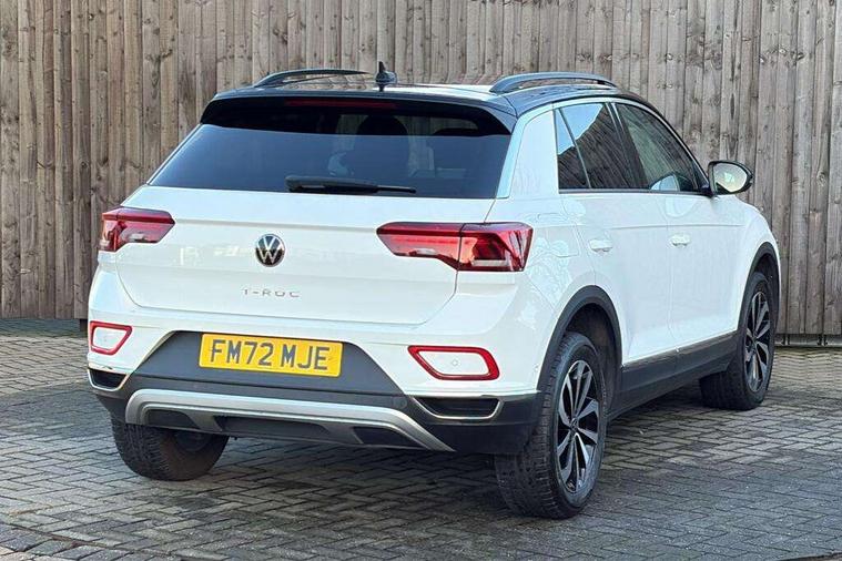 10.25" Digital cockpit pro, Bluetooth mobile phone interface, Driver alert system with fatigue detection, Driver tips and journey analysis, Emergency call service, Lane keeping system Lane Assist, Modified key software - reduce switch off time for key status change to Long no motion, Online services, Park assist including front and rear parking sensors, Service interval indicator, Tailgate/trunk lid release from outside, Think blue trainer driver tips and journey analysis, Warning sound and light for front seatbelts unfastened, Wireless app connect, Battery regeneration during braking, Start/stop function with battery regeneration, Diversity antenna for FM reception, Front and rear 6 speakers, Music playback - MP3, WMA and AAC files, Premium USB cable in choice of either Apple or Android smartphone compatibility, SD card slot, Simultaneous pairing of 2 compatible mobile devices, Title and cover art display, We Connect and We Connect Plus functionality, 3rd brake light, Auto dimming interior rear view mirror, Automatic hazard lights activation under emergency braking, Automatic headlight control with LED separate daytime running lights with coming/leaving home function, Body colour sports bumpers with silver metallic underbody fascia, Dynamic headlight range control with self adjusting whilst driving, Extended roof spoiler, Exterior mirrors aspherical on driver side, convex on front passenger side, External USB type C socket and charging sockets, Front windscreen wiper with intermittent wipe and 4 position delay, Heated rear window, LED Plus headlamps, LED rear combination lamps, LED rear number plate lights, LED tail lamp rear comination lamps, Light mode for poor weather, rain, fog or snow, Power windows with comfort operation and circuit breaker, Rain sensor, Rear exhaust tailpipe, Rear fog light on one side and reversing lights on both sides, Rear side wing doors, Rear wash/wipe with intermittent wipe setting, Remote electrically foldable door mirrors, puddle lights and reverse activated passenger's door mirror, 12V power socket in centre console, 3 rear head restraints, 3 seat bench in 2nd row, 4 load lashing points in luggage compartment, Air care climatronic air conditoning system with active combination filter and 2-zone temperature control, Chrome plated radiator grille inserts, air vent surrounds and light switch surrounds, Door and side trim panel with leatherette insert, Drawer under drivers seat, Front + rear carpet mats, Front centre armrest, Front comfort sports seats, Front cupholders x 2, Front footwell illumination, Instrument lighting, white adjustable panel illumination, Interior ambient lighting and surround lighting, Interior light delay, Isofix child seat preparation, Leather gearshift handle, LED interior light with switch off delay/dimmer and 2 front/rear LED reading lights, Load-through provision with cup holder when folded down ('Unsplit rear seat bench, split folding backrest, with centre armrest), Luggage compartment lighting, Non-folding front passenger seat backrest, Single front passenger seat, Storage compartment in left and right luggage area, Storage compartment in rear doors, Storage compartments in driver and front passenger doors, Sunvisors with illuminated vanity mirrors, Variable boot floor, height adjustable and removable, Driver assistance pack without proactive passenger protection - T-Roc, 3 point height adj front seatbelts + pretensioners, 3 point seatbelts in outer rear with ECE label, ABS, Child locks on rear doors, Driver and front passenger airbag with front passenger airbag deactivation, Driver and front passenger safety-optimised head restraints, Drivers seatbelt reminder, Electronic parking brake, Electronic Stability Control (ESC) inc EDL (Electronic Differential Lock) and ASR (Traction Control), Front and rear passengers curtain airbag system including front side airbags, Front assist with city emergency braking and pedestrian monitoring, Front seat side impact airbags, Predictive pedestrian protection, Rear disc brakes, Single tone horn, Tyre pressure loss indicator, Volkswagen roadside assistance, Alarm with interior protection, Anti-theft alarm system with interior monitoring, backup horn, and towing protection, Remote central locking with SAFELOCK, radio remote control with 2 remote control folding keys, Trims for alloy wheels,