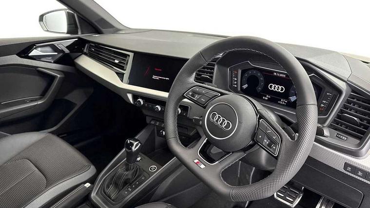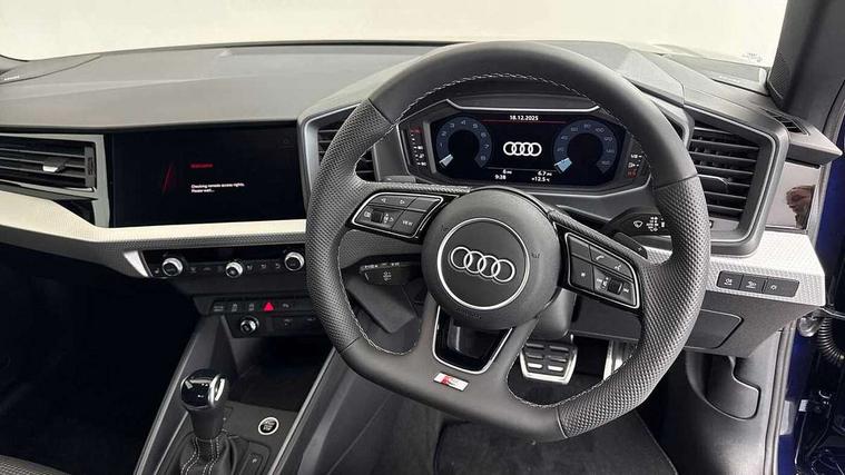 10.25" Digital instrument cluster display classis style instrument dials + speed, odometer, time, outside temperature, telephone menu + fuel level warning, Advanced driver attention and drowsiness monitor, Audi connect emergency call and service, Audi drive select, Audi remote connect and control, Bluetooth interface, Camera based traffic sign recognition, Cruise control, Driver's information system, Electromechanical power steering, Lane departure warning system, Rear parking sensor, Service interval indicator, Smartphone interface, Speed limiter, Start stop system with recuperation, Voice control system, Washer fluid level indicator, Sports suspension, 2 x USB type C connection points, 6 loudspeakers, DAB Digital radio, MMI radio plus with 10.1" colour MMI display screen and MMI touch, Auto dimming rear view mirror, Black door mirror housings, Black side skirts, Body coloured bumpers, Door sill trims with aluminium inlays and logo, Electric front and rear windows, Electrically adjustable, heated, folding door mirrors with integrated LED side indicator, Front side air inlets in grained matt black and C frame in anthracite black, Front wing badges, Headlight cleaning system, Heat insulating glass windscreen and side windows, Heated rear windscreen, High level LED brake light, LED daytime running lights, LED headlights with range control LED rear lights + dynamic rear indicators, Light and rain sensors, Privacy glass, Radiator grille and rear diffuser in matt anthracite black, Radiator protective grille frame in matt aluminium silver, Rear fog lights, Rear side wing doors, Rear wiper, Side front spoiler lips in grained matt black, 12V socket in centre console with two cup holders, 3 rear seats with headrests, 3 seat bench in 2nd row, 3 spoke flat bottomed multi-function plus leather steering wheel with S badging, grips in preforated leather, contrast stitching and paddle shift, 40:60 Split folding rear seat or fully collapsed, Black carpets, Black cloth headlining, Front and rear velour black floor mats with contrast stitching in fine silver, Front head restraints, Front passenger seat, Height and reach adjustable steering wheel, Interior lighting includes roof module, front and rear reading lights and right luggage compartment lighting, ISOFIX child seat mounting for front passenger and outer rear seats including top tether attachment point of outer rear seats, Leather gear knob with aluminium trim, Leather handbrake grip, Manual air conditioning, Manual height adjustable for driver and front passenger seat, Manually adjustable lumbar support in front seats, Stainless steel pedals, Ambient lighting package - A1, Black styling pack - A1 Sportback Black Edition, Luggage compartment pack - A1, 3x3 point rear seatbelts, Audi pre-sense front with pedestrain and cyclist recognition, Brake assist function, Driver and front passenger airbag with front side and head airbags, Electronic Stability Control including ABS, EBD, ASR and EDL, Front passenger airbag deactivation switch, Hill hold assist, Manual rear child locks, Seatbelt height adjustment for front seats, Seatbelt monitoring, Tyre pressure loss indicator, Warning triangle and first aid kit, Anti theft alarm, Anti theft wheel bolts, Immobiliser, Remote control key with safelock, Aluminium trim for control switches, air vents and digital instrument cluster, Black dashboard, Silver grey inlays polygon structure in diamond paint finish, Structured grey accent surfaces insert of air vents, interior door handle recesses and centre console in quartz paint finish,