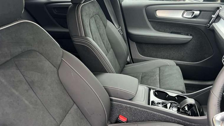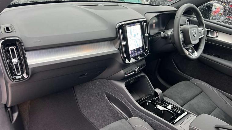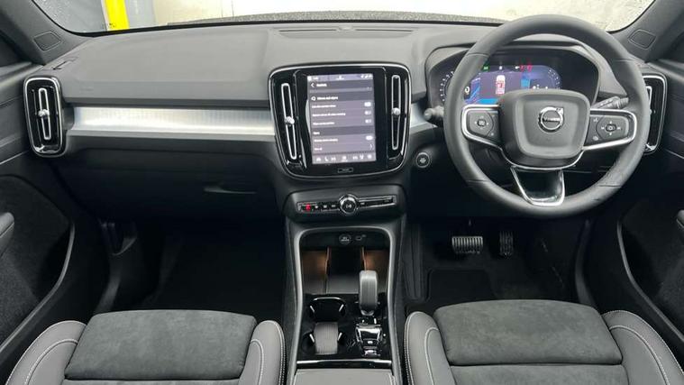 12.3" Progressive Driver Display, 9" centre console portrait touch screen, Adjustable steering wheel force, Android auto (Wired), Apple carplay (wired), Bluetooth handsfree system, Driver alert control, Driver assistance (pilot assist and adaptive cruise control), Driver awareness - Blind spot information system with steer assist, cross traffic alert with autobrake and rear collision warning and mitigation, E-call, Front and rear parking sensors, Front park assist, Google automotive services - Enabled entertainment apps, navigation with google maps, voice recognition with google assistant, Hands free power tailgate, Intelligent speed assistance, Lane keeping aid, Oncoming Lane Mitigation, Speed sensitive steering, Volvo cars services with app - Driving journal, emergency and breakdown call, engine remote start, remote door locking/unlocking and vehicle dashboard, Wireless/Inductive Mobile Phone Charging, Automatic transmission with start/stop and manual change functions, Dynamic chassis, DAB Digital radio, Steering wheel mounted remote controls, Adaptive brake lights with high level LED brake lights, Auto dimming feature for exterior door mirrors, Auto dimming interior mirror, Auto folding and heated power door mirrors, Automatic headlamp levelling, Automatic LED Headlights + Active high beam incorporating daytime running lights, Front aluminium tread plates, Front and rear electric windows, High gloss black front and rear skid plate, High gloss black front bumper deco, High gloss black mesh front grille with high gloss black surround, High gloss black window trim, Home safe and approach lighting, Integrated roof rails in high gloss black, LED front fog lights, Puddle lights, Rain sensor with automatic windscreen wiper activation, Rear side wing doors, Rear wiper, Roof antenna, Roof spoiler, Visible VIN plate, 12V socket in front tunnel console and luggage compartment, 2-Zone electronic climate control with CleanZone air quality system and pollen filter, 3 seat bench in 2nd row, 3 Spoke tailored steering wheel with chrome trim, 60/40 versatile split folding rear seat, Centre console cupholders and storage, Charcoal carpet and floor mats, Charcoal headlining, Connect suede textile/microtech upholstery, Flexible load floor and grocery bag holder, Front headrests, Front seat cushion extensions, Glovebox bag hook, Heated front seats, Height adjustable passenger seat, Height/reach adjustable steering column, High gloss centre tunnel deco, High level illumination - Front door pocket, front side step (under door), tailgate, instrument panel, front door inlay, rear courtesy&reading lights, Integrated waste bin, Isofix attachments on outer rear seats, Load cover, Load protection net, Mid level illumination - Front footwell, luggage & glovebox compartment, front cabin courtesy & reading lights, illuminated vanity mirrors+ticket holder, Multi directional lumbar support for driver and passenger seat, Power driver seat with memory + exterior mirrors memory, Rear armrest with cupholders, Rear headrests, Single front passenger seat, Underfloor luggage compartment storage, Climate pack without heated front seats - XC40, 3x3 point rear seatbelts, City safety with steering support with Pedestrian + cyclist + front collision warning with full auto brake and rear auto brake, Driver and passenger airbags, Drivers knee airbag, Electronic parking brake with auto hold, First aid kit, Front and outer rear seatbelt reminder and pretensioners, Front seats SIPS airbags, Hill descent control - Off-road drive mode, Hill start assist, IC (Inflatable Curtains) - Full Length, Passenger airbag cut-off device, Power child locks on rear doors, Road sign information display, Run off Road Protection, SIPS (Side Impact Protection System), Slippery road and hazard light alert, Stability and Traction Control with Spin control, Engine Drag Control and Corner Traction Control, Tyre pressure monitoring system, Vehicle deceleration control with Anti-lock Brake System, Electronic Brake Distribution and Emergency Brake Assist, Warning triangle, WHIPS whiplash protection system - front, 2 x Key integrated remote control central locking including with deadlocking system and auto open/close windows, Anti-theft alarm including immobiliser/volume sensor + level sensor, Keyless drive includes keyless entry and keyless start, Locking wheel nuts,