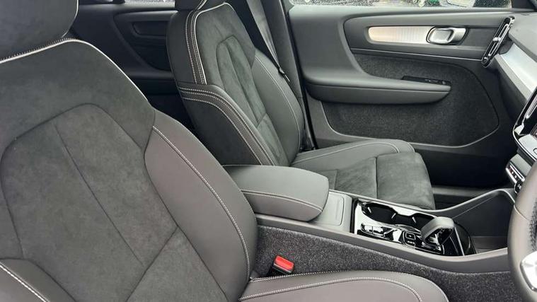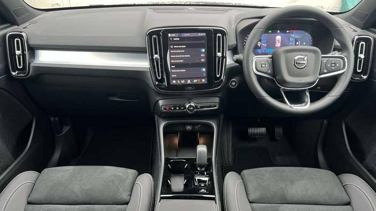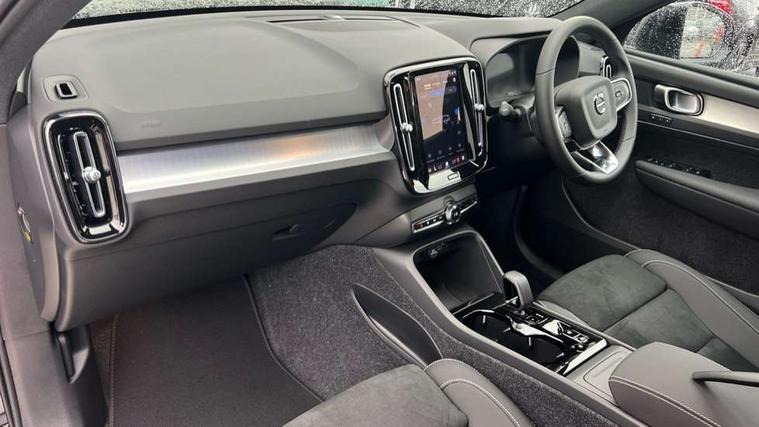 12.3" Progressive Driver Display, 9" centre console portrait touch screen, Adjustable steering wheel force, Android auto (Wired), Apple carplay (wired), Bluetooth handsfree system, Driver alert control, Driver assistance (pilot assist and adaptive cruise control), Driver awareness - Blind spot information system with steer assist, cross traffic alert with autobrake and rear collision warning and mitigation, E-call, Front and rear parking sensors, Front park assist, Google automotive services - Enabled entertainment apps, navigation with google maps, voice recognition with google assistant, Hands free power tailgate, Intelligent speed assistance, Lane keeping aid, Oncoming Lane Mitigation, Speed sensitive steering, Volvo cars services with app - Driving journal, emergency and breakdown call, engine remote start, remote door locking/unlocking and vehicle dashboard, Wireless/Inductive Mobile Phone Charging, Automatic transmission with start/stop and manual change functions, Dynamic chassis, DAB Digital radio, Steering wheel mounted remote controls, Adaptive brake lights with high level LED brake lights, Auto dimming feature for exterior door mirrors, Auto dimming interior mirror, Auto folding and heated power door mirrors, Automatic headlamp levelling, Automatic LED Headlights + Active high beam incorporating daytime running lights, Dark tinted windows - rear side windows and rear screen, Front aluminium tread plates, Front and rear electric windows, High gloss black front and rear skid plate, High gloss black front bumper deco, High gloss black front grille strikethrough and ironmark, High gloss black rear model, engine and volvo logo badges, High gloss black window trim, Home safe and approach lighting, Integrated roof rails in high gloss black, LED front fog lights, Puddle lights, Rain sensor with automatic windscreen wiper activation, Rear side wing doors, Rear wiper, Roof antenna, Roof spoiler, Visible VIN plate, 12V socket in front tunnel console and luggage compartment, 2-Zone electronic climate control with CleanZone air quality system and pollen filter, 3 seat bench in 2nd row, 3 Spoke tailored steering wheel with chrome trim, 60/40 versatile split folding rear seat, Centre console cupholders and storage, Charcoal carpet and floor mats, Charcoal headlining, Connect suede textile/microtech upholstery, Flexible load floor and grocery bag holder, Front headrests, Front seat cushion extensions, Glovebox bag hook, Heated front seats, Height adjustable passenger seat, Height/reach adjustable steering column, High gloss centre tunnel deco, High level illumination - Front door pocket, front side step (under door), tailgate, instrument panel, front door inlay, rear courtesy&reading lights, Integrated waste bin, Isofix attachments on outer rear seats, Load cover, Load protection net, Mid level illumination - Front footwell, luggage & glovebox compartment, front cabin courtesy & reading lights, illuminated vanity mirrors+ticket holder, Multi directional lumbar support for driver and passenger seat, Power driver seat with memory + exterior mirrors memory, Rear armrest with cupholders, Rear headrests, Single front passenger seat, Underfloor luggage compartment storage, Climate pack without heated front seats - XC40, 3x3 point rear seatbelts, City safety with steering support with Pedestrian + cyclist + front collision warning with full auto brake and rear auto brake, Driver and passenger airbags, Drivers knee airbag, Electronic parking brake with auto hold, First aid kit, Front and outer rear seatbelt reminder and pretensioners, Front seats SIPS airbags, Hill descent control - Off-road drive mode, Hill start assist, IC (Inflatable Curtains) - Full Length, Passenger airbag cut-off device, Power child locks on rear doors, Road sign information display, Run off Road Protection, SIPS (Side Impact Protection System), Slippery road and hazard light alert, Stability and Traction Control with Spin control, Engine Drag Control and Corner Traction Control, Tyre pressure monitoring system, Vehicle deceleration control with Anti-lock Brake System, Electronic Brake Distribution and Emergency Brake Assist, Warning triangle, WHIPS whiplash protection system - front, 2 x Key integrated remote control central locking including with deadlocking system and auto open/close windows, Anti-theft alarm including immobiliser/volume sensor + level sensor, Keyless drive includes keyless entry and keyless start, Locking wheel nuts, 20" 5 spoke high gloss black alloy wheels,