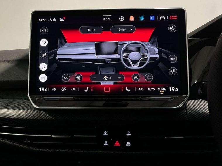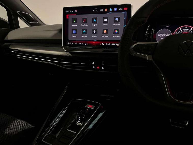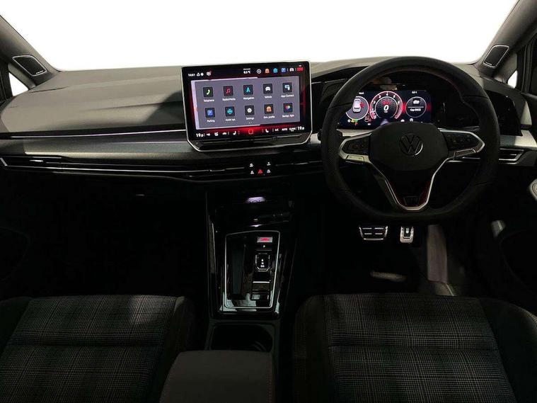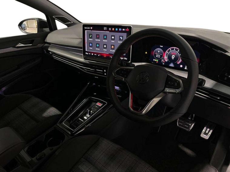 Activated carbon canister, Adaptive cruise control (ACC), Advanced driver attention and drowsiness monitor, Dynamic road sign display, E-Sim card for online connectivity, eCall emergency call system, Multi-color Digital cockpit pro, selection of different info profile possible, Multifunction front facing camera for distance control, Navigation system, Oncoming vehicle braking when turning including swerve support, Side assist blind spot lane change system, rear traffic alert and exit warning system, Speed limiter, Speedo, rev counter, electronic odometer, trip, service interval display, exterior temperature and fuel gauge, Traffic jam assist, Voice enhancer and voice control, Warning signal and warning light for front and rear seatbelts not fastened, We connect plus preparation, We connect preparation, Wireless app connect, Front differential lock, Petrol Particulate Filter, Start-stop system with battery regeneration (recuperation - energy recovery during braking), 2 USB C ports in front, 2 USB charging sockets on the centre console in the rear charging capacity upto 45W, Digital radio reception (DAB), Diversity antenna for FM reception, Gaming platform via car app, Infotainment system with 12.9" display, Mobile phone interface with inductive charging feature, 3rd brake light, Auto dimming rear view mirror, Automatic headlamp activation with Coming home and Leaving home feature, Body colour door handles, Body coloured bumpers, air intake in honeycomb structure, Exterior mirrors convex on the left and aspherical on the right, Front and rear electric windows, Front fog lamps and cornering light, Heat insulating windshield made of laminated glass, Illuminated lighting animation with wake up/goodbye scenario, LED separate daytime running light, Nameplate 'GTI' set, Rain sensor, Rear exhaust tailpipe, Rear fog light on one side and reversing lights on both sides, Rear side wing doors, Rear windscreen washer and wiper with interval delay, Remote electrically foldable door mirrors, puddle lights and reverse activated passenger's door mirror, Welcome light with surround lighting, 12V socket in front centre console, 12V socket in luggage compartment, 3 rear head restraints, 3 seat bench in 2nd row, 30 colour ambient lighting, illuminated center console storage compartment in front, Air care climatronic 3 Zone automatic climate control with rear air conditioning control panel, Aluminium gearshift handle, Brushed stainless steel pedals, Chrome plated radiator grille inserts, air vent surrounds and light switch surrounds, Entry lights, Front + rear black carpet mats, Front centre armrest, ISOFIX anchors for child seats on outer rear bench seats and on front passanger seat compatible for i-Size, Luggage compartment lighting, Rear cupholder and loadthough, Single front passenger seat, Soul black instrument panel, Soul black roof lining, Split folding backrest with centre armrest and unsplit rear seat bench, Sun visors with illuminated vanity mirrors, Driver assistance pack - Golf Estate/Hatchback Auto, Technology park and comfort pro package - Golf Hatchback, 3 point height adj front seatbelts + pretensioners, 3 rear three point seatbelts, ABS, Autonomous emergency braking front assist with pedestrian and cyclist monitoring, Child locks on rear doors, Driver and front passenger airbag with front passenger airbag deactivation, Electronic parking brake with auto hold, ESC (Electronic Stability Control), Extended pedestrian protection measures, Hill start assist, Rear disc brakes, Two tone horn, Tyre pressure loss indicator, Volkswagen roadside assistance, Anti theft wheel bolts, Preparation for alcohol interlock, Decorative inserts carbon grey for dashboard and front door trim panels, Sporty vehicle dynamics, Tool kit for tyre mobility set, Tyre mobility kit Includes 12V compressor and tyre sealant,