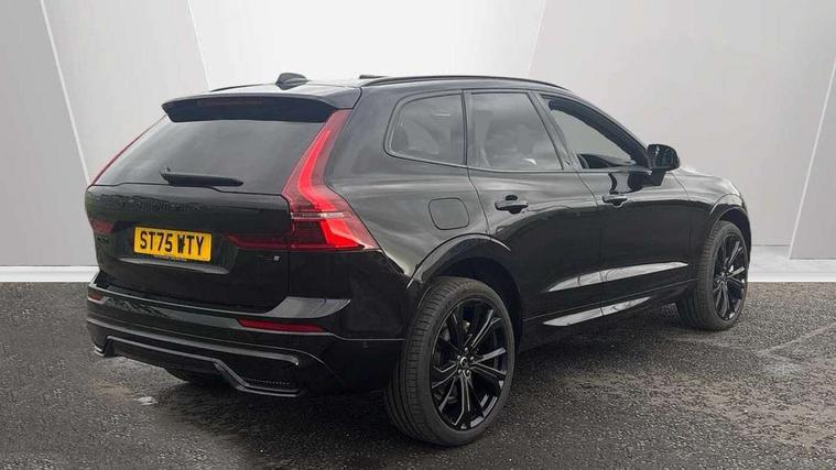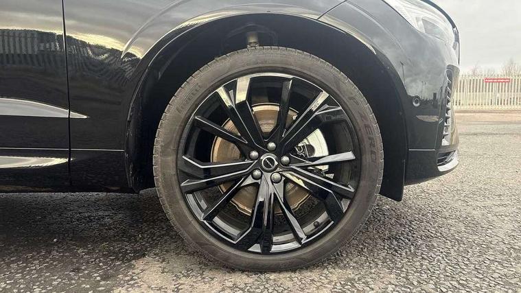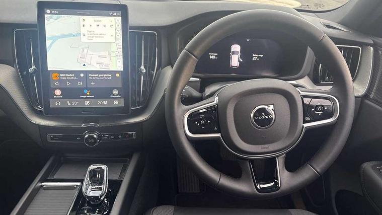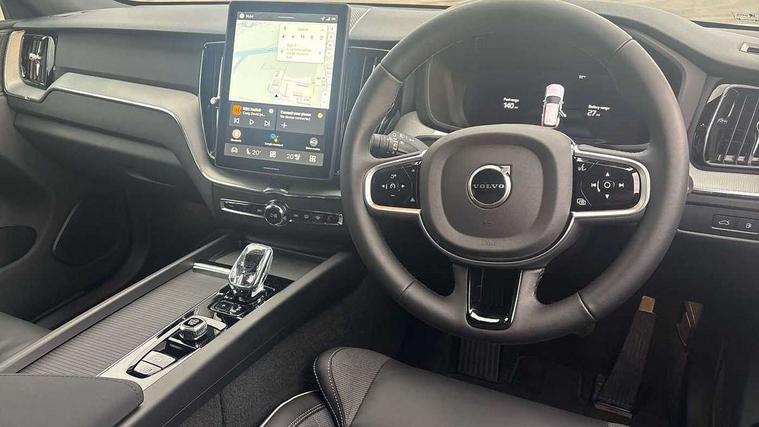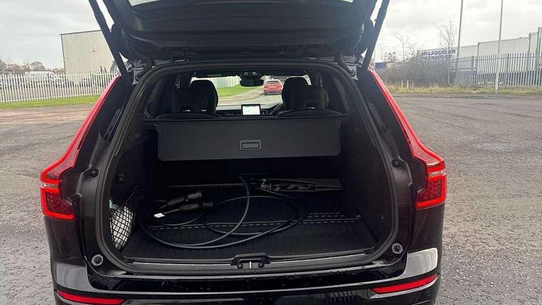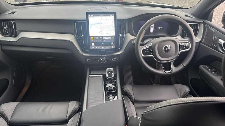 11.2" centre console touch screen, 12.3" Progressive Driver Display, 360 degree surround view parking camera with side proximity sensors, Adaptive cruise control, Adjustable steering wheel force, Android auto (Wired), Apple carplay (wired), Bluetooth handsfree system, Drive mode settings, Driver alert control with lane keeping aid, Emergency services call system, Front and rear park assist, Google Automotive Services, Intelligent speed assistance, Oncoming Lane Mitigation, PAS, Power operated tailgate with handsfree opening and closing, Service interval indicator, Speed limiter, Speed sensitive steering, Trip computer, Volvo cars services with app, Volvo on call with App, Wireless/Inductive Mobile Phone Charging, 2 phase on board charger 6.4kW (home charging limited to 3.7kW), 6m 3 phase 16amp Type 2 / mode 3 charge cable, 8 speed automatic transmission with start/stop + manual change functions, Electric rear axle drive, Recharging port located in nearside front wing, DAB Digital radio, Low speed exterior sound speaker, Premium Sound by Harman Kardon, dirac unison, dolby pro logic II surround sound, 13 speakers/600W output and fresh air subwoofer, Steering wheel remote infotainment controls, Adaptive brake lights with high level LED brake lights, Auto dimming interior + exterior mirrors, Automatic headlight levelling system, Automatic LED Headlights + Active high beam incorporating daytime running lights, Dark tinted windows for rear side windows and cargo area, Electric adjustable/heated/auto power folding door mirrors, Electric front+rear windows, Front aluminium tread plates, Heated front windscreen, High gloss black door mirrors and window surround, High gloss black front and rear bumper decoratives, High gloss black front grille, Surround, Strikethrough and Ironmark, High gloss black rear model, engine and volvo logo badges, Home safe and approach lighting, Integrated roof rails in high gloss black, Puddle lights, Rain sensor with automatic windscreen wiper activation, Rear side wing doors, Rear wiper, Roof antenna, Roof spoiler, Tinted windscreen, Visible VIN plate, 12V socket in front tunnel console and luggage compartment, 2 zone electronic climate control with Clean zone air quality system and pollen filter, 3 seat bench in 2nd row, 3 Spoke tailored steering wheel with chrome trim, A-pillar parking ticket holder, Air purifier particulate matter (PM) 2.5 filter, B Pillar ventilation, Bright metal luggage scuff plate, Centre console cupholders and storage, Charcoal floor mats, Contour sports seats with nappa soft leather/textile upholstery, Front and rear courtesy lights, Front and rear door pocket illumination, Front cupholder illumination, Front footwell illumination, Front reading lights, Front seat cushion extensions, Glovebox compartment with illumination, Head restraints for all seats, Heated front seats, Heated steering wheel, Height/reach adjustable steering column, Illuminated luggage compartment, Illuminated vanity mirrors + ticket holder, Inner door release handle illumination, ISOFIX attachment on outer rear seats, Load cover, Load protection net, Multi directional lumbar support, Power driver seat with memory + exterior mirrors memory, Power height adjustable passenger seat, Power passenger seat with memory, Rear armrest with cupholder, Rear footwell and front and rear side step illumination, Rear reading lights, Rear seat concealed storage, Single front passenger seat, Tailgate illumination and ambient door lighting, Underfloor stowage compartment, Versatile split folding rear seat - 60/40, Driver assist pack without Adaptive cruise control - XC60, 5 three point seatbelts, City safety with steering support with Pedestrian + cyclist + front collision warning with full auto brake and rear auto brake, Drivers knee airbag, Dual stage driver/passenger airbags, Electronic parking brake with auto hold, First aid kit, Front seats SIPS airbags, Hill descent control - Off-road drive mode, Hill start assist, IC (Inflatable Curtains) - Full Length, Passenger airbag cut-off device, Power child locks on rear doors, Road sign information display, Run off Road Mitigation, Run off Road Protection, Seatbelt reminder and pretensioners, SIPS (Side Impact Protection System), Slippery road and hazard light alert, Stability and Traction Control with Spin control, Engine Drag Control and Corner Traction Control, Tyre pressure monitoring system, Vehicle deceleration control with Anti-lock Brake System, Electronic Brake Distribution and Emergency Brake Assist, Warning triangle, WHIPS whiplash protection system - front, Anti-theft alarm including immobiliser/volume sensor + level sensor, Key integrated remote control central locking + fuel flap with deadlocking system and auto open/close power windows, Keyless Drive (includes Keyless Entry and Keyless Start), Locking wheel nuts, Private locking for tailgate, 21" 5 Double spoke high gloss black alloy wheels, Summer tyres, Tyre sealant kit + 12v compressor,