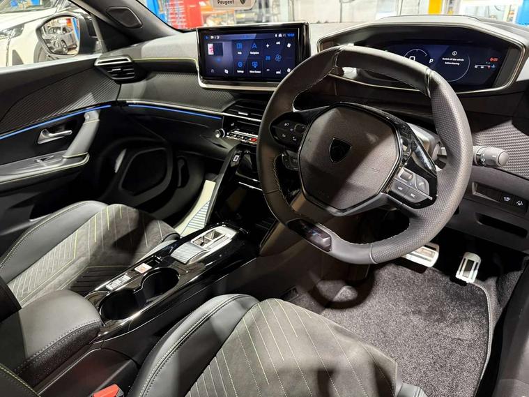Bluetooth telephone facility, Driver attention warning, E-call, Exterior temperature indicator with ice warning, Front and rear parking sensors, Multi function trip computer, PEUGEOT i-Cockpit with 10" high definition capacitive touchscreen, PEUGEOT i-Cockpit with compact steering wheel, PEUGEOT i-Cockpit with configurable 3D headup instrument panel, PEUGEOT SOS and assistance, Speed limit recognition and recommendation, Wireless mirror screen with mirror link, apple carplay and android auto, Petrol Particulate Filter, 1x USB-C socket in rear and 1x USB-A socket in rear, 2 USB-C ports in the front, 6 speakers radio with mp3 compatible, DAB Radio (Digital Audio Broadcasting), Voice recognition for radio, navigation and telephony features, 2 X Rear number plate lights, Aluminium door sill scuff plates with peugeot lettering, Automatic hazard light activation upon heavy brake application, Black diamond roof, Black front wing trim with gloss black detail and GT badging, Body coloured exterior door handles, Dark tinted rear side and tailgate windows, Diamond black mirror shells, Diamond black rear roof spoiler, Electric, heated, and power folding door mirrors, Electrochrome rear view mirror, Front bumper - Meteor grey lower trim, Full LED headlights with smartbeam assist with auto height adjustment, Gloss black finish on B pillar, Gloss black rear cluster connecting strip, Gloss black roof bars, GT model designation badging on tailgate, Headlights left on audible warning, LED side indicator lights integrated into door mirrors, LED third brake light, Matt black finish side window surrounds (weather strips), Model designation badges front and rear, One touch electric front/rear windows with pinch protection, Radiator grille - body coloured vertical chequered grille, Radiator grille - gloss black top edge trim, Rear bumper with gloss black finish, Rear full LED 3D peugeot signature lights with daylight function, Rear reversing lights, Rear side wing doors, Rear windscreen wiper triggered automatically in reverse gear, Reinforcement of the front bumper, Tailgate with heated rear windscreen and wiper blade, Twin chromed exhaust pipes, Wheel arch extensions, 1/3 to 2/3 split folding rear seats, 12V socket, 3 seat bench in 2nd row, 8 Colour personalisable ambient lighting, Alcantara upholstery, Automatic air conditioning with pollen and active carbon filter, Central front armrest with storage compartment, Driver and front passenger sport seats, Electric power steering with reach and rake adjustable steering column, Front and rear carpet mats in black, Front LED interior light with 2 reading spotlights and push button rear interior light with timer, Front passenger seat manual adjustment - height, longitudinal and back rest angle, High centre console with 2 cup holders, ISOFIX child seat mounting points on passenger seat, Low centre console, Map pockets on front seat backs, Mistral full-grain perforated leather steering wheel with Adamite Green stitch detail and satin chrome 'GT' emblem, Multifunction steering wheel, Piano keys: Gloss black and chrome toggle switches to access main functions of the vehicle and touchscreen functions, Roof lining - Mistral black, Seatbelt unfastened on the move audible and visual alert for front and rear seats, Single front passenger seat, Two position modular boot floor, Navigation, vision and drive assist pack - 2008, Visibility pack - 2008, 2x 2nd row ISOFIX child seat mountings, ABS (Anti-lock Braking System) with EBD (Electronic Brakeforce Distribution) and EBA (Emergency Braking Assistance), Active safety brake with night function/cyclists/pedestrians, Adaptive driver and front passenger airbags with passenger airbag deactivation function, Advanced emergency braking system (AEB) with enhanced camera with the high beam and radar, Child locking functionality on rear doors, Driver/front passenger side airbags, Electric parking brake, ESP (Electronic Stability Program) + Hill Start Assist, Front and rear curtain airbags, Front and rear disc brakes, Front and rear three-point retractable seatbelts, with force limiters, Front optimised safety headrests and rear retractable headrests (x3), height adjustable, Tyre pressure sensor, Automatic door locking when moving off, Deadlocks, Electronic code immobiliser, PEUGEOT Open and Go keyless entry system, Thatcham category 1 alarm, Carbon effect Dashboard, front and rear door panel finish, 18" Evissa diamond cut black mist alloy wheels,