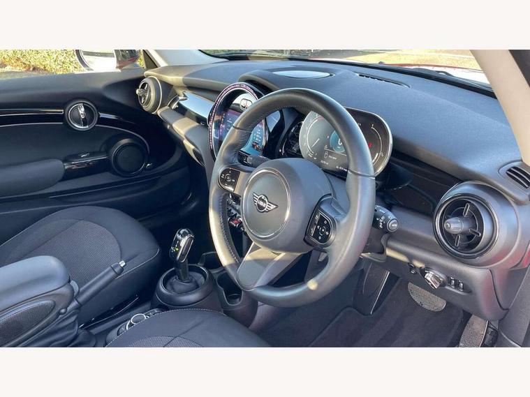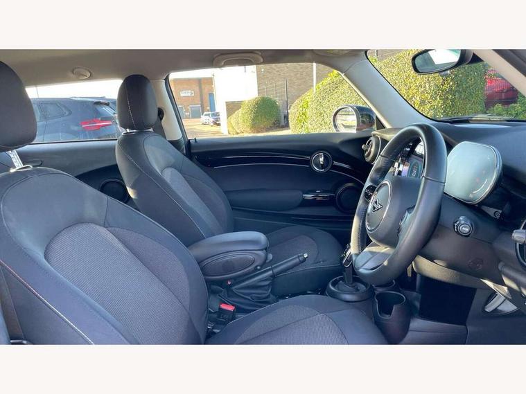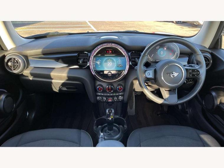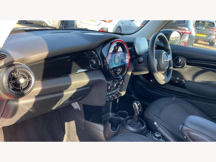 Apple CarPlay, Automatic start/stop function with brake energy recuperation, Compatible mobile phone bluetooth with audio streaming, Cruise control with brake assist, Electro-mechanical speed dependant steering assistance, Flexible car sharing preparation, Instrument cluster, Mini E-call, MINI TeleServices, On board computer, Service interval indicator, Double Vanos system, Fully variable valve control, High precision injection, Performance Control, Steptronic transmission with double clutch, 8.8" touchscreen with LED ring, FM tuner and DAB digital radio, 3rd brake light, Automatic headlight activation switch, Body colour fuel filler cap, Chrome border high gloss black slats radiator grille, Dynamic brake lights, Electric front windows, Exhaust tailpipe on left with chrome finisher, Heated rear window, Heated windscreen washer jets, LED headlight with closed ring and daytime driving lights, Metal door sill strips with MINI imprint, Model logo Cooper on right of tailgate, Rain sensor window wipers, Rear fog lights, Rear LED lights with union jack design, Rear window wiper, Side scuttle panel with integrated indicator, Sun/heat protection glass, White indicator lenses, 12V Accessory socket in centre console, 2 seat bench in 2nd row, 4 lashing eyes in luggage compartment, 60/40 split folding rear seat, Ambient lighting, Carbon black colour line - Knee roll and door armrest, Chrome interior highlights, Cupholders, Front and rear head restraints, Front and rear isofix with front passenger airbag deactivation, Front floor mats in velour, Glove compartment, Height and length steering column adjustment, Interior lighting with 12 different colours across the dashboard, underneath door bezel with illuminated laser-engraved design on central display, Leatherette gearshift lever and handbrake gaiters, LED reading lights, vanity mirror lights, front foot well light and spotlight on front seats, Manual air conditioning, Mechanical seat adjustment - forward/back & backrest for front seats and driver seat height adjust, Multifunction steering wheel, Passenger seat height adjuster, Satellite grey headlining including grab handles and clothes hooks, Single front passenger seat, Sport leather steering wheel with speed limiter and audio/communication controls, Storage compartments in doors, Sunvisors with vanity mirrors, 3 point seatbelts on all four seats, 6 Airbags - front, side, head and seat belt tensioners, Anti-lock braking system (ABS), DSC - Dynamic Stability Control, Front and rear disc brakes, Single tone fanfare horn, Tyre pressure monitoring system, Alarm system with tilt sensor, monitoring doors, bonnet interior and tailgate, Electronic vehicle immobiliser, Start/stop toggle with keyless go, Piano black interior trim, Tool kit, Tyre repair kit,