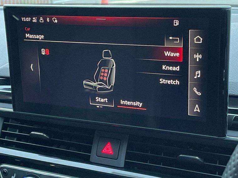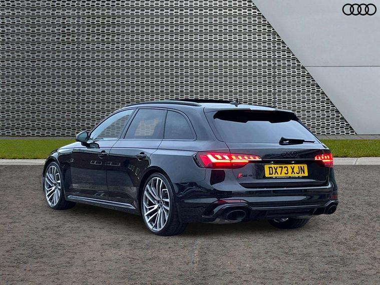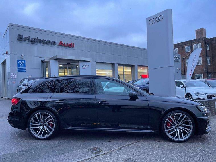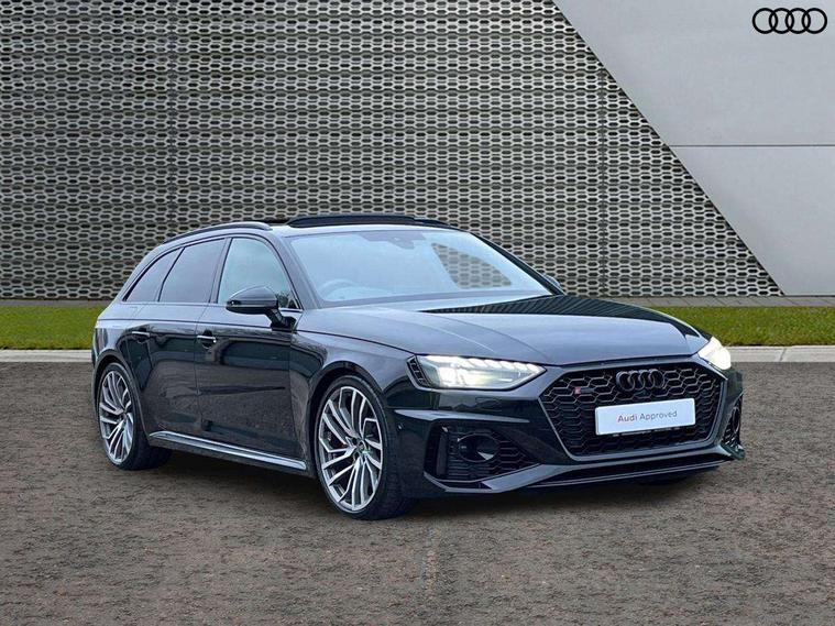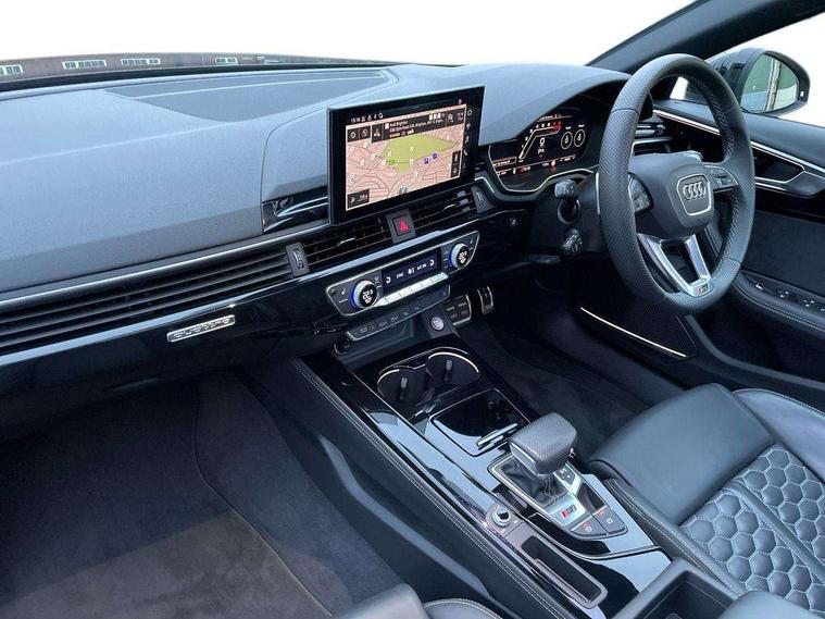 7" Colour driver information system, Advanced key with electric hands free boot opening system, Audi connect safety and service (e-call), Audi drive select, Audi smartphone interface, Audi virtual cockpit with RS specific display, Automatic start-stop system with coasting functionality and efficiency programme, Bluetooth interface, Camera based traffic sign recognition, Dynamic steering, Email, calendar and text messages displayed via MMI, Head up Display, Lane departure warning, MMI Navigation plus with MMI touch includes 10.1" high resolution colour MMI display, 3D map, Power opening/closing tailgate, Service interval indicator, Voice control system, 58 Litre fuel tank, Increased top speed to 174mph, Quattro sports differential, RS sport suspension plus with dynamic ride control, 2 USB charging ports, Bang + Olufsen 3D sound system, DAB digital radio module, Two additional USB ports for rear passenger in rear centre console, 3rd brake light, Acoustic windscreen, Audi Beam uses LEDs to project the RS logo onto ground as you exit your RS4, Audi matrix LED headlights with LED rear lights + dynamic front and rear indicators, Audi rings and lettering glossy black, Auto dimming rear view mirror, Automatic headlights + automatic windscreen wipers, Black roof rails, Blue tinted glass, Body colour door handles, Electric front windows, Electric rear windows, Electrically folding auto dimming/adjustable/heated door mirrors with memory function, LED side indicators and kerb view function for passenger side, Flared front and rear wheel arches, Front bumper with enlarged air inlets, Headlight range control, High beam assistant, High gloss black door mirror housing, High gloss black triangular aperture at rear door, Honeycomb design grille with quattro logo, Lateral air inlets next to front headlights, LED daytime running lights, LED indicators in door mirrors, Panoramic glass sunroof, Privacy glass with rear acoustic glazing, Rain and light sensors, Rear side wing doors, Rear wiper, Roof spoiler, RS 4 badges on grille and rear, RS sport exhaust system, RS4 dual branch chrome tailpipes with left and right oval pipes, Side sill extensions in body colour with high gloss black inserts, Towbar preparation, 3 seat bench in 2nd row, 3 spoke multifunction plus leather steering wheel with heating and RS badging, 40/20/40 split folding rear seats with rear centre armrest, Black cloth headlining, Deluxe 3 zone electronic climate control, Door armrests and knee pad, Electric load area cover, Electrically adjustable front seats, Fine nappa leather with contrast honey comb stitching + super sports seats with pneumatic massage function, Front centre armrest, Front headrests, Front/rear floor mats, Heated front and outer rear seats, Height and reach adjustable steering wheel with full size airbag, Illuminated door sill trims with RS4 logo, ISOFIX child seat mounting and top tether, Luggage compartment carpet, Perforated leather gear lever knob with contrast stitching, Rear headrests, Retractable load area cover, Single front passenger seat, Stainless steel pedals, Sunvisors with vanity mirrors, Tool kit, Black styling pack - RS4, City pack - RS4, Extended LED Interior multi-coloured lighting pack - RS4, LED Interior light pack - RS4, Non Smokers pack, Tour pack - RS4, 3 point seatbelts on all rear seats, Adaptive driver and front passenger airbags, Attention and drowsiness assist, Electromechanical parking brake, Electronic stabilisation control including ABS, ASR and EDL, Enhanced braking system, Front head airbags, Front seatbelt pretensioners + load limiters, Front side airbags, Hill hold assist, Manual child lock in rear doors, Multi-Collision braking, Pop-up bonnet for pedestrian protection, Pre sense city, Rear side airbags, Seatbelt monitoring, Traction control, Tyre pressure warning, Variable restraint system, Warning triangle and first aid kit, Anti theft alarm, Anti-theft wheel bolts, Immobiliser, Keyless Go, Remote central locking, Remote control key with RS emblem, Piano black finish inlay, 20" 5 segment spoke evo design matt grey sport alloy wheels with high sheen finish, Tyre repair kit,