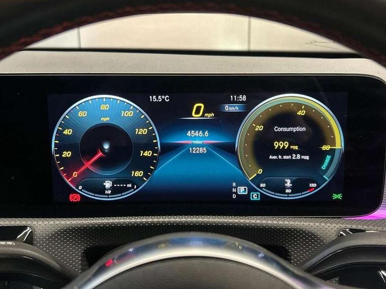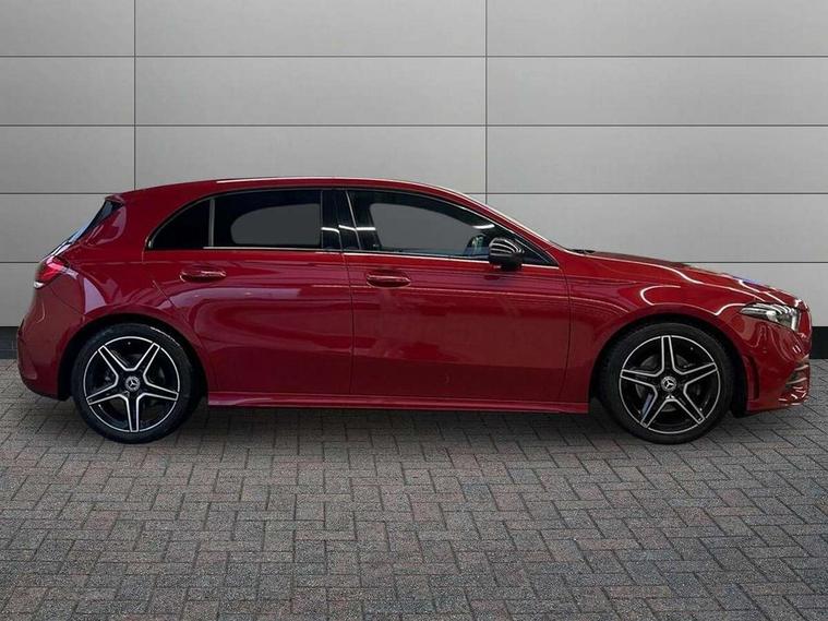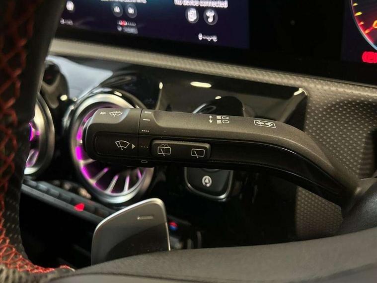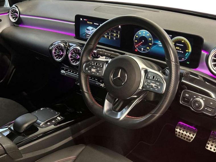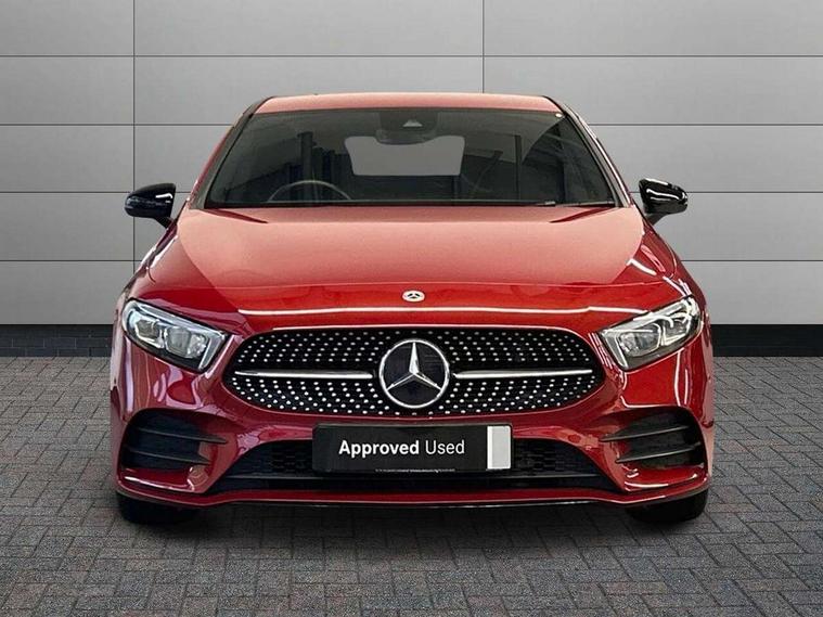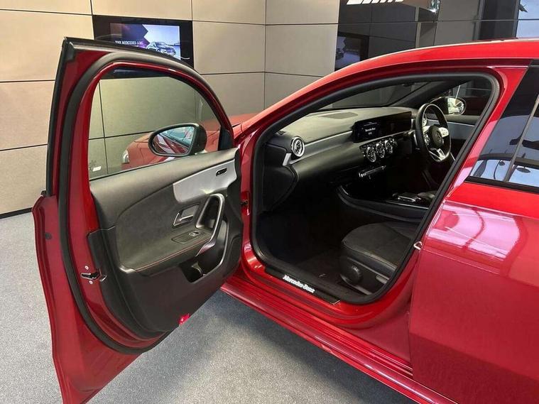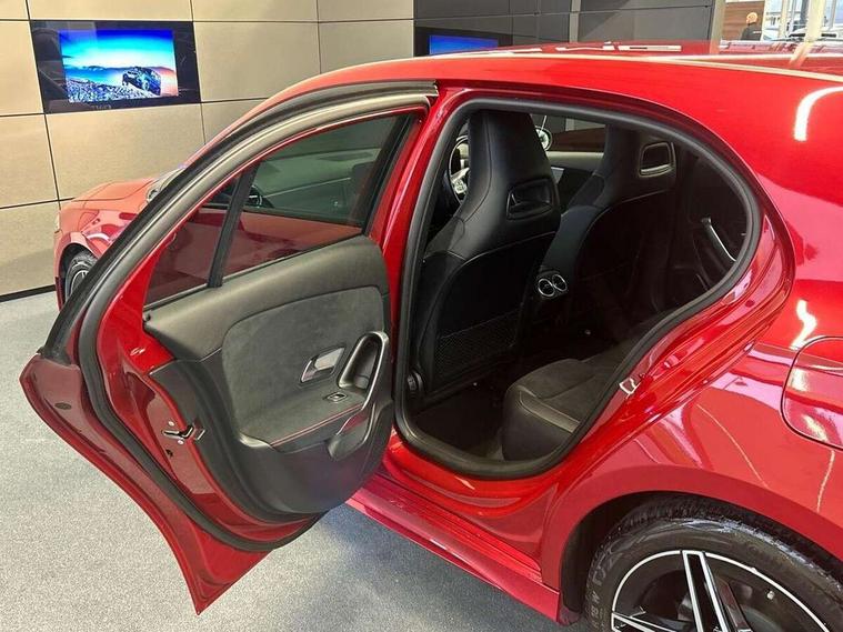 10.25" Digital instrument cluster display screen, 10.25" media display, 180 degree rear view camera with parking guidelines, Active parking assist with visual and audible warning of detected obstacles, Attention assist, Brake pad wear indicator warning light, Car wash mode, Cruise control + speed limiter, Direct steering, Dual bluetooth interfaces, DYNAMIC SELECT with a choice of driving modes (ECO, Comfort, Sport and Individual), ECO start/stop function, Fluid level warning indicator for fuel, oil, coolant and washer fluid, Hard-disk navigation, Hey Mercedes Voice activation, Lamp failure indicator, Lane keeping system, Mercedes me connect including emergency call system, accident recovery, breakdown and maintenance management, Mercedes me remote services, Outside temperature gauge, Owners manual in English, Pre-installation for private car sharing, Preinstallation for Mercedes Benz link, Service indicator (ASSYST), Smartphone integration with Apple CarPlay and Android auto, Speed limit assist, Speed sensitive power steering, Trip computer, Ultrasonic sensors positioned in the front and rear bumpers, Lowered comfort suspension, Rear axle torsion beam, 2 USB ports (type C) in rear stowage compartment and one in front of center console, 6 speakers, DAB Digital radio, MBUX multimedia system with DAB digital radio and touchpad including satellite navigation, Mercedes-Benz sound system - 100W, 4 Electric Front and Rear windows, Adaptive brake lights, AMG bodystyling - Front apron with splitter in chrome, rear apron with chrome trim and chrome visible trim elements in tailpipe, Automatic headlights, Black weather strip, Body colour bumpers, Body colour door handles with chrome inserts, Body colour side skirt, Electric adjustable and heated door mirrors with integrated LED side indicators, Exclusive diamond radiator grille, Exhaust system - Twin visible tailpipes in polished stainless steel, Headlamp assist automatic headlamp activation, Heated glass rear windscreen + timer control, LED High level third brake light, LED high performance headlamps with integrated LED daytime running lights, LED tail lamp, Privacy glass, Radio aerial, Rain sensing windscreen wipers with two sensitivity settings, Rear fog lights, Rear side wing doors, Rear wiper, 3 seat bench in 2nd row, 3 Spoke flat bottom leather multi function steering wheel with perforated leather in grip area, 40:20:40 split folding rear seats, Artico man-made leather/Microfibre Dinamica upholstery with red contrast stitching, Auto Mercedes-Benz child seat recognition sensor, Black air vents with surround in silver chrome, Black roof lining, Brushed stainless steel sports pedals with rubber studs, Controller on centre console with chrome surround, Floor mats with AMG lettering, Front centre armrest with storage compartment, Front seat backs luggage nets, Galvanished gear shift paddles on steering wheel, Heated front seats, Height/reach adjustable steering column, Illuminated Mercedes Benz lettering front door sills with changeable cover, Interior lighting - 64 colour Ambient lighting, Interior mirror with reading lamps in black and frameless, Manual height adjustable front seats, Rear head restraints, Seat occupancy sensor for front passenger seat, Single front passenger seat, Sports seats with integrated headrests, Stowage compartment in centre console with retractable cover, Sunvisors with illuminated vanity mirrors, Touchpad on center console, Twin front cupholders, Two zone thermotronic luxury automatic climate control, Light and sight pack - A Class, Mirror package - A Class, Night pack - A Class Saloon/Hatchback, Seat comfort pack - A Class, 3 rear 3 point seatbelts, ABS with Brake Assist, Active bonnet, Active brake assist includes forward collision warning system with autonomous braking, Adaptive brake assist with hold function and hill start assist, Black seatbelts, Childproof locks manually operated for rear doors and electrically operated for rear power windows, Crash responsive emergency lighting, Driver and passenger head and side airbags, Drivers knee airbag, Dual stage driver/passenger airbags, Electronic parking brake, ESP curve dynamic assist, ESP with ASR, Front and rear seatbelt reminder, Front brake callipers with Mercedes Benz lettering, ISOFIX and top tether child seat fixing points in two outer rear seats, Tyre pressure monitoring system, Warning triangle and first aid kit, Window airbags, Alarm system/interior protection/immobiliser, Keyless Go, Remote central locking and crash sensor with emergency opening function, Urban guard vehicle protection system with immobiliser and interior protection, Matrix look light longitudinal grain aluminium trim element, 18" AMG 5 twin spoke light alloy wheels aerodynamically optimised painted in black with highsheen finish, Summer tyres, Tirefit sealant kit,