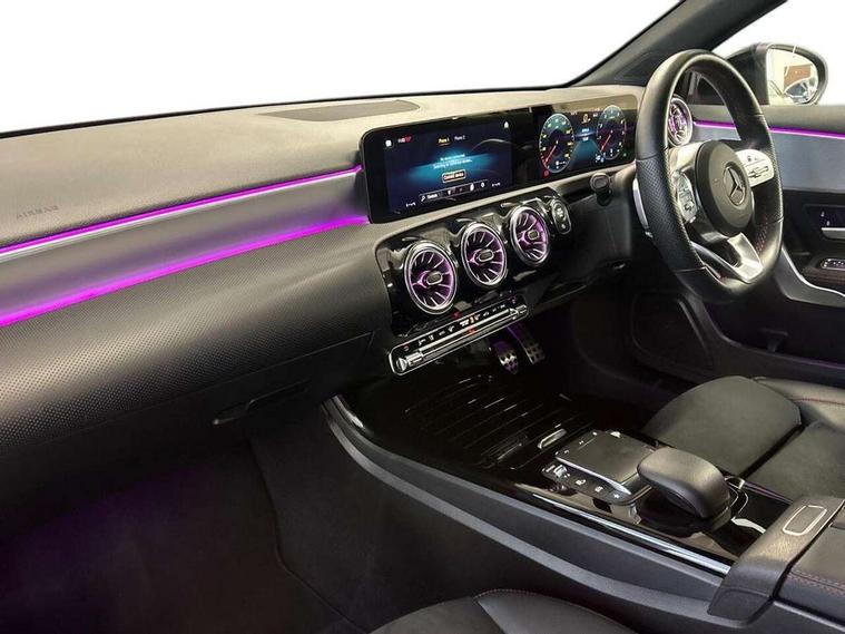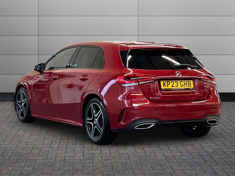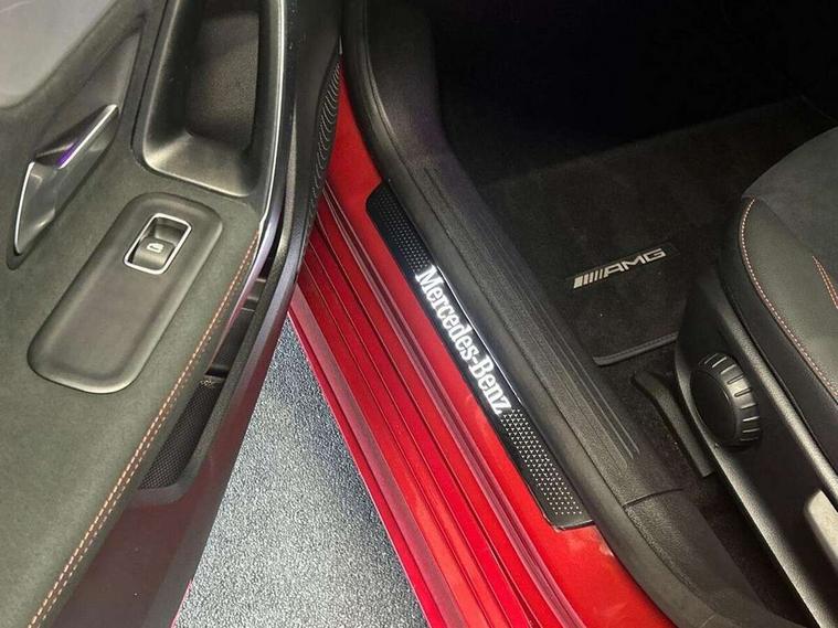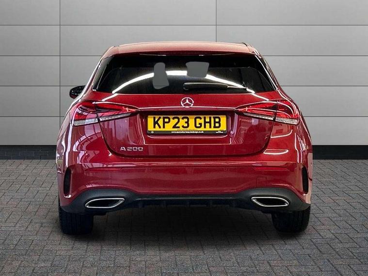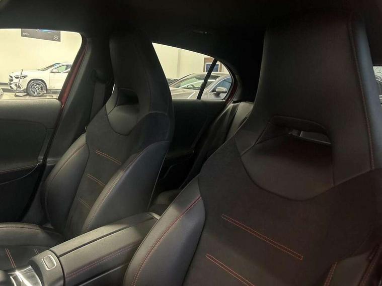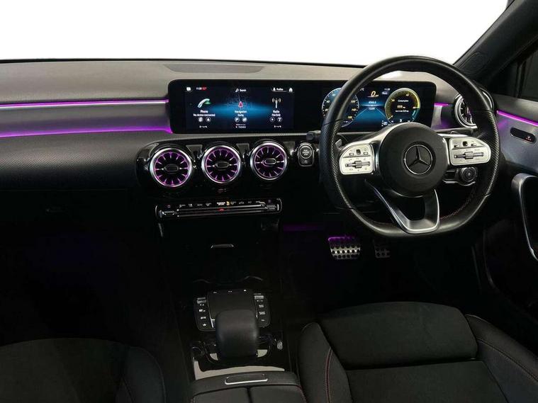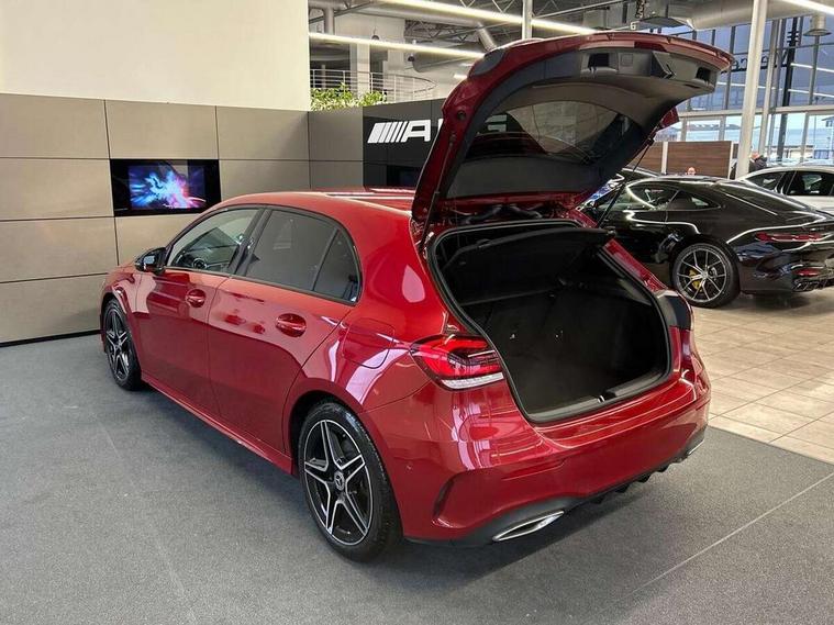 10.25" Digital instrument cluster display screen, 10.25" media display, 180 degree rear view camera with parking guidelines, Active parking assist with visual and audible warning of detected obstacles, Attention assist, Brake pad wear indicator warning light, Car wash mode, Cruise control + speed limiter, Direct steering, Dual bluetooth interfaces, DYNAMIC SELECT with a choice of driving modes (ECO, Comfort, Sport and Individual), ECO start/stop function, Fluid level warning indicator for fuel, oil, coolant and washer fluid, Hard-disk navigation, Hey Mercedes Voice activation, Lamp failure indicator, Lane keeping system, Mercedes me connect including emergency call system, accident recovery, breakdown and maintenance management, Mercedes me remote services, Outside temperature gauge, Owners manual in English, Pre-installation for private car sharing, Preinstallation for Mercedes Benz link, Service indicator (ASSYST), Smartphone integration with Apple CarPlay and Android auto, Speed limit assist, Speed sensitive power steering, Trip computer, Ultrasonic sensors positioned in the front and rear bumpers, Lowered comfort suspension, Rear axle torsion beam, 2 USB ports (type C) in rear stowage compartment and one in front of center console, 6 speakers, DAB Digital radio, MBUX multimedia system with DAB digital radio and touchpad including satellite navigation, Mercedes-Benz sound system - 100W, 4 Electric Front and Rear windows, Adaptive brake lights, AMG bodystyling - Front apron with splitter in chrome, rear apron with chrome trim and chrome visible trim elements in tailpipe, Automatic headlights, Black weather strip, Body colour bumpers, Body colour door handles with chrome inserts, Body colour side skirt, Electric adjustable and heated door mirrors with integrated LED side indicators, Exclusive diamond radiator grille, Exhaust system - Twin visible tailpipes in polished stainless steel, Headlamp assist automatic headlamp activation, Heated glass rear windscreen + timer control, LED High level third brake light, LED high performance headlamps with integrated LED daytime running lights, LED tail lamp, Privacy glass, Radio aerial, Rain sensing windscreen wipers with two sensitivity settings, Rear fog lights, Rear side wing doors, Rear wiper, 3 seat bench in 2nd row, 3 Spoke flat bottom leather multi function steering wheel with perforated leather in grip area, 40:20:40 split folding rear seats, Artico man-made leather/Microfibre Dinamica upholstery with red contrast stitching, Auto Mercedes-Benz child seat recognition sensor, Black air vents with surround in silver chrome, Black roof lining, Brushed stainless steel sports pedals with rubber studs, Controller on centre console with chrome surround, Floor mats with AMG lettering, Front centre armrest with storage compartment, Front seat backs luggage nets, Galvanished gear shift paddles on steering wheel, Heated front seats, Height/reach adjustable steering column, Illuminated Mercedes Benz lettering front door sills with changeable cover, Interior lighting - 64 colour Ambient lighting, Interior mirror with reading lamps in black and frameless, Manual height adjustable front seats, Rear head restraints, Seat occupancy sensor for front passenger seat, Single front passenger seat, Sports seats with integrated headrests, Stowage compartment in centre console with retractable cover, Sunvisors with illuminated vanity mirrors, Touchpad on center console, Twin front cupholders, Two zone thermotronic luxury automatic climate control, Light and sight pack - A Class, Mirror package - A Class, Night pack - A Class Saloon/Hatchback, Seat comfort pack - A Class, 3 rear 3 point seatbelts, ABS with Brake Assist, Active bonnet, Active brake assist includes forward collision warning system with autonomous braking, Adaptive brake assist with hold function and hill start assist, Black seatbelts, Childproof locks manually operated for rear doors and electrically operated for rear power windows, Crash responsive emergency lighting, Driver and passenger head and side airbags, Drivers knee airbag, Dual stage driver/passenger airbags, Electronic parking brake, ESP curve dynamic assist, ESP with ASR, Front and rear seatbelt reminder, Front brake callipers with Mercedes Benz lettering, ISOFIX and top tether child seat fixing points in two outer rear seats, Tyre pressure monitoring system, Warning triangle and first aid kit, Window airbags, Alarm system/interior protection/immobiliser, Keyless Go, Remote central locking and crash sensor with emergency opening function, Urban guard vehicle protection system with immobiliser and interior protection, Matrix look light longitudinal grain aluminium trim element, 18" AMG 5 twin spoke light alloy wheels aerodynamically optimised painted in black with highsheen finish, Summer tyres, Tirefit sealant kit,