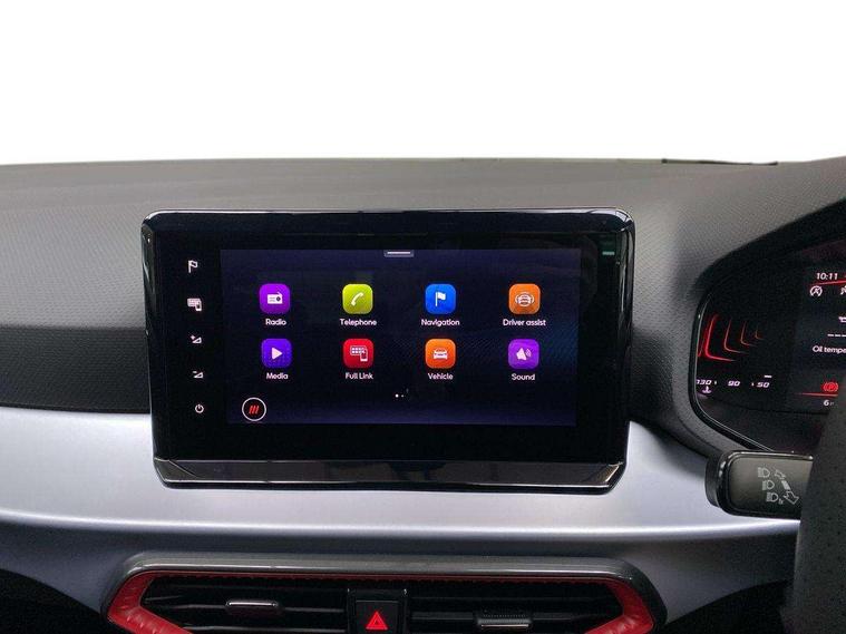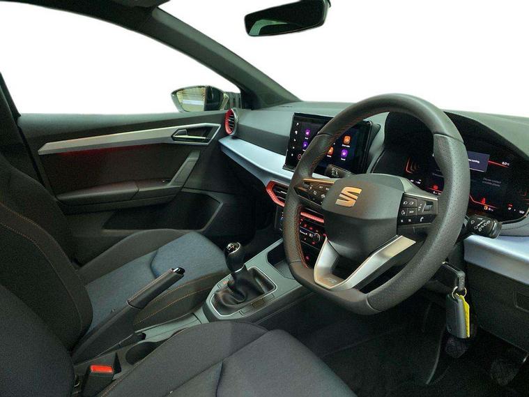 'Lights On' Reminder warning buzzer, 8" Digital cockpit, 9.2" touchscreen navigation system with type C USB socket, Voice control and DAB/AM/FM radio, Auto start and stop system, Bluetooth audio streaming with handsfree system, Digital clock, E-call, Full link smartphone integration with mirror link, wireless apple carplay, Google android auto + USB Type C cable for apple and android devices, Lane assist, Low fuel warning light, Outside temperature gauge, Power Steering, Rear parking sensor, Seat connect plus with safety, service, remote and online, SEAT drive profiles and ECO function, SEAT logo boot release, Speed limiter, Traffic sign recognition, Trip computer, Sports suspension, Auxiliary input socket, Radio/MP3 player, SD card slot, Steering wheel mounted controls, Anti theft roof antenna, Auto dimming rear view mirror, Automatic rain sensing wipers, Black door mirror caps, Body colour bumpers, Body colour door handles, Brilliant black window surrounds, Dark tinted rear windows, Electric adjustable/heated/folding door mirrors, Electric front windows, Electric headlight adjustment, Electric rear windows, Front/rear fog lights, FULL LED automatic headlights with dynamic headlight range control, coming and leaving home, LED daytime running lights, LED 3rd brake light, LED tail lights, Rear roof spoiler with FR twin exhausts, Rear side wing doors, Rear wiper, 3 seat bench in 2nd row, 60/40 split folding rear seat, Ambient interior lighting, Chrome detailing and black headlining, Cloth upholstery, Dual zone climate control with combination filter, Front courtesy lights, Front cupholders x 2, Front reading lights, Gear shift indicator, Glovebox, Height adjustable front and rear headrests (five), Height adjustable front seats, Height/reach adjust steering wheel, Illuminated air vent surrounds, Illuminated boot, Instrument lighting with brightness control, Isofix, Leather multifunction flat bottomed sports steering wheel, Passenger sunvisor, Single front passenger seat, Sports seats, Sunvisors with mirror and driver side card holder, Safety and driving pack (S) - Ibiza, 3 point seatbelts on all 3 rear seats, ABS, Active front headrests, Child locks on rear doors, Electronic stability control, Energy recovery system, Front driver and passenger side airbags with curtain airbag and front passenger airbag deactivation, Hill hold control, Multi-Collision braking, Seat belt reminder for front and rear seats, Tiredness recognition system, Tyre pressure monitoring system, Locking wheel bolts, Perimeter alarm and interior monitoring with backup horn and tow away protection, Remote central locking + deadlocks, 17" Alloy wheels in Brilliant silver,
