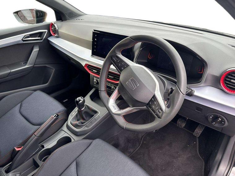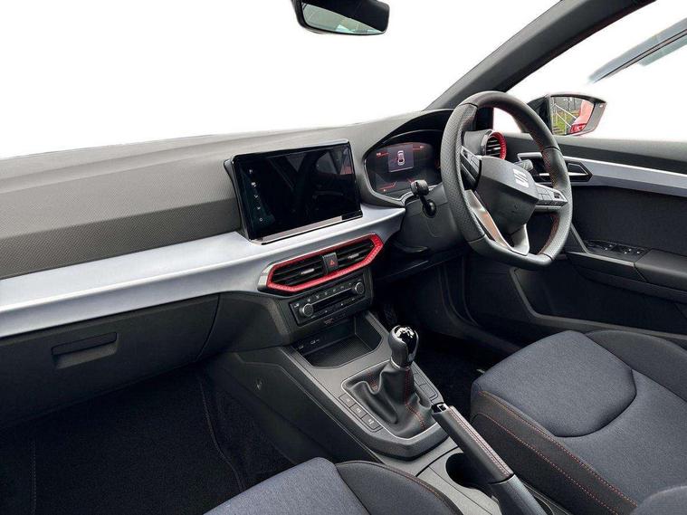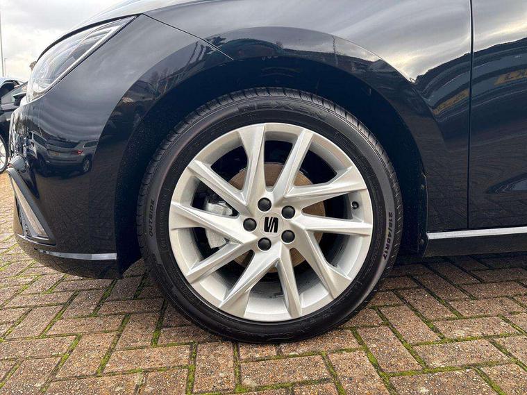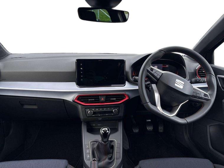 'Lights On' Reminder warning buzzer, 8" Digital cockpit, 9.2" touchscreen navigation system with type C USB socket, Voice control and DAB/AM/FM radio, Auto start and stop system, Bluetooth audio streaming with handsfree system, Digital clock, E-call, Full link smartphone integration with mirror link, wireless apple carplay, Google android auto + USB Type C cable for apple and android devices, Lane assist, Low fuel warning light, Outside temperature gauge, Power Steering, Rear parking sensor, Seat connect plus with safety, service, remote and online, SEAT drive profiles and ECO function, SEAT logo boot release, Speed limiter, Traffic sign recognition, Trip computer, Sports suspension, Auxiliary input socket, Radio/MP3 player, SD card slot, Steering wheel mounted controls, Anti theft roof antenna, Auto dimming rear view mirror, Automatic rain sensing wipers, Black door mirror caps, Body colour bumpers, Body colour door handles, Brilliant black window surrounds, Dark tinted rear windows, Electric adjustable/heated/folding door mirrors, Electric front windows, Electric headlight adjustment, Electric rear windows, Front/rear fog lights, FULL LED automatic headlights with dynamic headlight range control, coming and leaving home, LED daytime running lights, LED 3rd brake light, LED tail lights, Rear roof spoiler with FR twin exhausts, Rear side wing doors, Rear wiper, 3 seat bench in 2nd row, 60/40 split folding rear seat, Ambient interior lighting, Chrome detailing and black headlining, Cloth upholstery, Dual zone climate control with combination filter, Front courtesy lights, Front cupholders x 2, Front reading lights, Gear shift indicator, Glovebox, Height adjustable front and rear headrests (five), Height adjustable front seats, Height/reach adjust steering wheel, Illuminated air vent surrounds, Illuminated boot, Instrument lighting with brightness control, Isofix, Leather multifunction flat bottomed sports steering wheel, Passenger sunvisor, Single front passenger seat, Sports seats, Sunvisors with mirror and driver side card holder, Safety and driving pack (S) - Ibiza, 3 point seatbelts on all 3 rear seats, ABS, Active front headrests, Child locks on rear doors, Electronic stability control, Energy recovery system, Front driver and passenger side airbags with curtain airbag and front passenger airbag deactivation, Hill hold control, Multi-Collision braking, Seat belt reminder for front and rear seats, Tiredness recognition system, Tyre pressure monitoring system, Locking wheel bolts, Perimeter alarm and interior monitoring with backup horn and tow away protection, Remote central locking + deadlocks, 17" Alloy wheels in Brilliant silver,