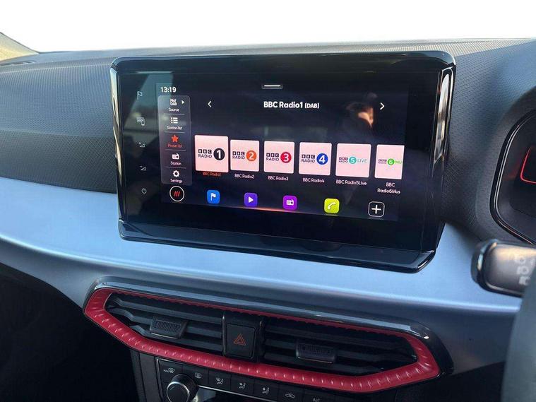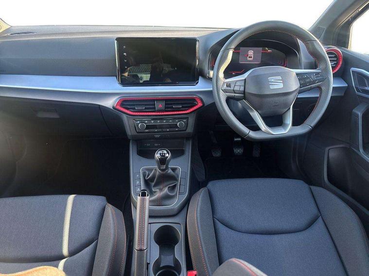 'Lights On' Reminder warning buzzer, 8" Digital cockpit, 9.2" touchscreen navigation system with type C USB socket, Voice control and DAB/AM/FM radio, Auto start and stop system, Bluetooth audio streaming with handsfree system, Digital clock, E-call, Full link smartphone integration with mirror link, wireless apple carplay, Google android auto + USB Type C cable for apple and android devices, Lane assist, Low fuel warning light, Outside temperature gauge, Power Steering, Rear parking sensor, Seat connect plus with safety, service, remote and online, SEAT drive profiles and ECO function, SEAT logo boot release, Speed limiter, Traffic sign recognition, Trip computer, Sports suspension, Auxiliary input socket, Radio/MP3 player, SD card slot, Steering wheel mounted controls, Anti theft roof antenna, Auto dimming rear view mirror, Automatic rain sensing wipers, Black door mirror caps, Body colour bumpers, Body colour door handles, Brilliant black window surrounds, Dark tinted rear windows, Electric adjustable/heated/folding door mirrors, Electric front windows, Electric headlight adjustment, Electric rear windows, Front/rear fog lights, FULL LED automatic headlights with dynamic headlight range control, coming and leaving home, LED daytime running lights, LED 3rd brake light, LED tail lights, Rear roof spoiler with FR twin exhausts, Rear side wing doors, Rear wiper, 3 seat bench in 2nd row, 60/40 split folding rear seat, Ambient interior lighting, Chrome detailing and black headlining, Cloth upholstery, Dual zone climate control with combination filter, Front courtesy lights, Front cupholders x 2, Front reading lights, Gear shift indicator, Glovebox, Height adjustable front and rear headrests (five), Height adjustable front seats, Height/reach adjust steering wheel, Illuminated air vent surrounds, Illuminated boot, Instrument lighting with brightness control, Isofix, Leather multifunction flat bottomed sports steering wheel, Passenger sunvisor, Single front passenger seat, Sports seats, Sunvisors with mirror and driver side card holder, Safety and driving pack (S) - Ibiza, 3 point seatbelts on all 3 rear seats, ABS, Active front headrests, Child locks on rear doors, Electronic stability control, Energy recovery system, Front driver and passenger side airbags with curtain airbag and front passenger airbag deactivation, Hill hold control, Multi-Collision braking, Seat belt reminder for front and rear seats, Tiredness recognition system, Tyre pressure monitoring system, Locking wheel bolts, Perimeter alarm and interior monitoring with backup horn and tow away protection, Remote central locking + deadlocks, 17" Alloy wheels in Brilliant silver,