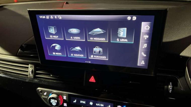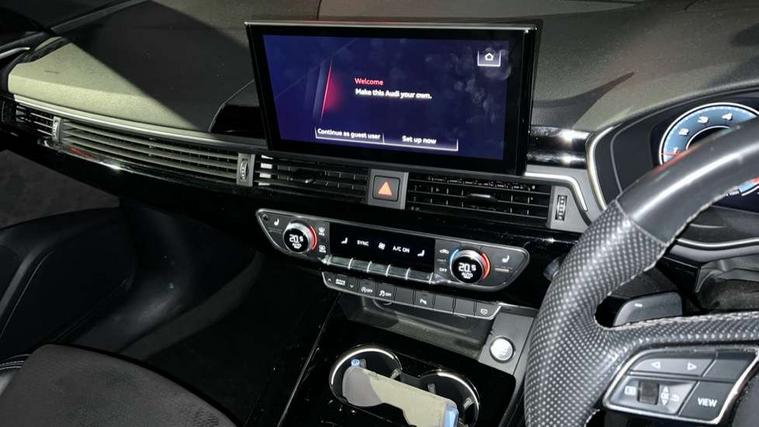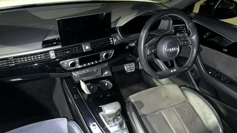 Audi connect safety and service (e-call), Audi drive select, Audi parking system plus with front and rear sensors, Audi smartphone interface, Audi virtual cockpit, Automatic start-stop system with coasting functionality and efficiency programme, Bluetooth interface, Electromechanical power steering, MMI Navigation plus with MMI touch includes 10.1" high resolution colour MMI display, 3D map, Power operated tailgate, Rear view camera, Voice control system, 54 litre fuel tank, Sports suspension lowered by 23mm, 2 USB charging ports, 8 passive loudspeakers, DAB digital radio reception, Auto dimming rear view mirror, Body colour door handles, Body colour front spoiler lip, Body colour side sill trim, Electrically folding auto dimming/adjustable/heated door mirrors with LED side indicators and kerb view function for passenger side, Grained matt black side air inlets with matt aluminium silver inlay, High beam assistant, LED headlights with LED rear lights + dynamic rear indicators + headlight adjustment and high beam, turning light + LED daytime running lights, Matt aluminium silver tailpipe trim, Privacy glass, Rain and light sensors, S Line badges on the front wings, S line front and rear bumpers with side skirts, S Line rear diffuser in matt titanium black with trim strip in matt aluminium silver, S Line roof edge spoiler, Windscreen with acoustic glazing, 4 way electric lumbar support for driver and front passenger, 40/20/40 split folding 3 rear seat bench in 3 parts with rear centre armrest, Black cloth headlining, Black perforated leather gearknob, Contrast stitching on seats, steering wheel and gear lever gaiter, Deluxe 3 zone electronic climate control, Door sill trims with aluminium inlay, Electric load area cover, Front and rear head restraints, Front centre armrest, Heated front seats, Illuminated door sill trims with S logo, ISOFIX child seat mounting and top tether, Manual seat adjustment, Stainless steel pedals and foot rest, Tool kit, LED Interior light pack - A4/S4, Titanium black styling pack - A4 Avant, 3 rear seatbelts, 6 airbags - Driver, front passenger, curtain and side windows, Electronic Stabilisation Control (ESC) including ABS, ASR and EDL, Hill hold assist, Multi collision brake assist, Pop-up bonnet for pedestrian protection, Pre sense city, Seatbelt monitoring, Warning triangle and first aid kit, Anti theft alarm, Anti theft wheel bolts, Keyless Go, Piano black finish inlay, 19" 5 arm rotor design alloy wheels titanium matt look, Tyre repair kit,