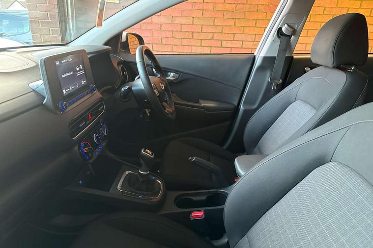 8" Touchscreen display audio + smart device integration, Bluetooth connectivity, Cruise control + speed limiter, Digital clock, Driver attention warning, Driver supervision instrument cluster with 10.25" LCD display, eCall emergency call system, Forward collision avoidance assist with pedestrian detection, Lane follow assist, Lane keep assist, Leading vehicle departure alert (LVDA), Parking system with rear camera and guidance system, PAS, Phone connection with apple carPlay and android auto, Rear parking sensor, Roadside assistance, Windscreen washer fluid sensor and warning indicator, 6 speed intelligent manual transmission, 6 speakers (2 front, 2 tweeters, 2 rear), Front USB ports, RDS and Digital DAB, Steering wheel mounted audio/phone controls, Automatic headlights with dusk sensor, Body colour door mirrors and handles, Door mirror integrated indicators, Electric front/rear windows with drivers one touch/anti-trap, Electrically adjustable and heated door mirrors, Halogen headlights, Halogen rear lights, LED daytime running lights, Positioning Lights - LED, Rain sensor, Rear roof spoiler with integrated LED brake light, Rear side wing doors, Rear wiper, Roof rails, Tinted glass with front door glass and windscreen with shade band, 12V power outlet in front console, 3 seat bench in 2nd row, 60/40 split folding rear seat, Adjustable head restraints, Air conditioning, Centre interior light, Cloth upholstery, Door scuff plate, Driver's seat height adjustment, Driver/passenger sunvisors and illuminated vanity mirrors, Front interior light, Front passenger seat manual adjustments, Height/reach adjustable steering column, Isofix rear child seat fastenings, Leather wrapped steering wheel and gear knob, Luggage compartment lighting, Luggage hooks, Metal paint effect interior door handles, Parcel shelf, Rear centre console with air vents, Single front passenger seat, Sunglasses holder, Vertical adjustment rear head restraints, Trailer wiring package - Kona, Airbags - front, front side and curtain airbags, Anti-lock brake system (ABS), Childproof rear door locks, Downhill brake control, EBD + Brake Assist, Electronic stability control, Fasten seatbelt reminder, Fixed 3 point for second row centre passenger seatbelt, Front seatbelt pretensioners, Height adjustable front seatbelts, Hill start assist control (HAC), Manual parking brake, Passenger airbag deactivate switch, Rear seat alert, Traction control, Tyre pressure monitoring system, Alarm/immobiliser, Deadlocks, Folding key, Locking wheel nuts, Remote central locking, 17" Alloy wheels,