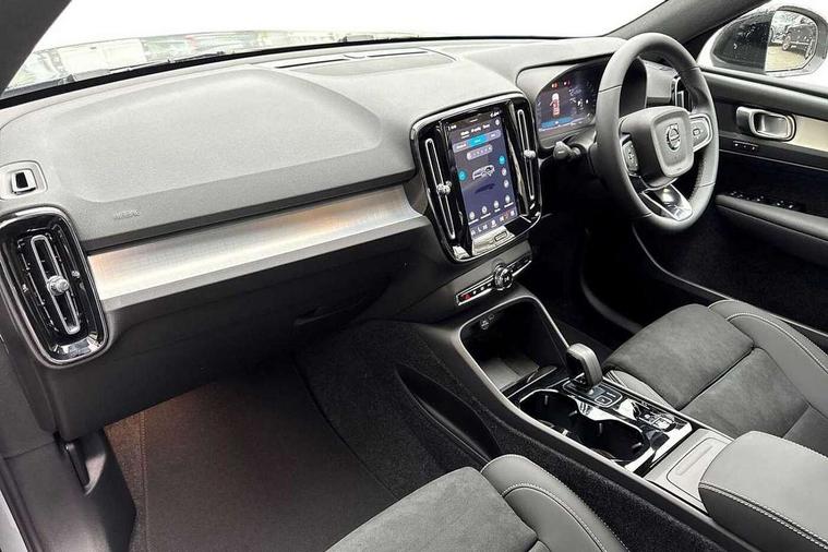 12.3" Progressive Driver Display, 9" centre console portrait touch screen, Adjustable steering wheel force, Android auto (Wired), Apple carplay (wired), Bluetooth handsfree system, Driver alert control, Driver assistance (pilot assist and adaptive cruise control), Driver awareness - Blind spot information system with steer assist, cross traffic alert with autobrake and rear collision warning and mitigation, E-call, Front and rear parking sensors, Front park assist, Google automotive services - Enabled entertainment apps, navigation with google maps, voice recognition with google assistant, Hands free power tailgate, Intelligent speed assistance, Lane keeping aid, Oncoming Lane Mitigation, Speed sensitive steering, Volvo cars services with app - Driving journal, emergency and breakdown call, engine remote start, remote door locking/unlocking and vehicle dashboard, Wireless/Inductive Mobile Phone Charging, Automatic transmission with start/stop and manual change functions, Dynamic chassis, DAB Digital radio, Steering wheel mounted remote controls, Adaptive brake lights with high level LED brake lights, Auto dimming feature for exterior door mirrors, Auto dimming interior mirror, Auto folding and heated power door mirrors, Automatic headlamp levelling, Automatic LED Headlights + Active high beam incorporating daytime running lights, Front aluminium tread plates, Front and rear electric windows, High gloss black front and rear skid plate, High gloss black front bumper deco, High gloss black mesh front grille with high gloss black surround, High gloss black window trim, Home safe and approach lighting, Integrated roof rails in high gloss black, LED front fog lights, Puddle lights, Rain sensor with automatic windscreen wiper activation, Rear side wing doors, Rear wiper, Roof antenna, Roof spoiler, Visible VIN plate, 12V socket in front tunnel console and luggage compartment, 2-Zone electronic climate control with CleanZone air quality system and pollen filter, 3 seat bench in 2nd row, 3 Spoke tailored steering wheel with chrome trim, 60/40 versatile split folding rear seat, Centre console cupholders and storage, Charcoal carpet and floor mats, Charcoal headlining, Connect suede textile/microtech upholstery, Flexible load floor and grocery bag holder, Front headrests, Front seat cushion extensions, Glovebox bag hook, Heated front seats, Height adjustable passenger seat, Height/reach adjustable steering column, High gloss centre tunnel deco, High level illumination - Front door pocket, front side step (under door), tailgate, instrument panel, front door inlay, rear courtesy&reading lights, Integrated waste bin, Isofix attachments on outer rear seats, Load cover, Load protection net, Mid level illumination - Front footwell, luggage & glovebox compartment, front cabin courtesy & reading lights, illuminated vanity mirrors+ticket holder, Multi directional lumbar support for driver and passenger seat, Power driver seat with memory + exterior mirrors memory, Rear armrest with cupholders, Rear headrests, Single front passenger seat, Underfloor luggage compartment storage, Climate pack without heated front seats - XC40, 3x3 point rear seatbelts, City safety with steering support with Pedestrian + cyclist + front collision warning with full auto brake and rear auto brake, Driver and passenger airbags, Drivers knee airbag, Electronic parking brake with auto hold, First aid kit, Front and outer rear seatbelt reminder and pretensioners, Front seats SIPS airbags, Hill descent control - Off-road drive mode, Hill start assist, IC (Inflatable Curtains) - Full Length, Passenger airbag cut-off device, Power child locks on rear doors, Road sign information display, Run off Road Protection, SIPS (Side Impact Protection System), Slippery road and hazard light alert, Stability and Traction Control with Spin control, Engine Drag Control and Corner Traction Control, Tyre pressure monitoring system, Vehicle deceleration control with Anti-lock Brake System, Electronic Brake Distribution and Emergency Brake Assist, Warning triangle, WHIPS whiplash protection system - front, 2 x Key integrated remote control central locking including with deadlocking system and auto open/close windows, Anti-theft alarm including immobiliser/volume sensor + level sensor, Keyless drive includes keyless entry and keyless start, Locking wheel nuts,