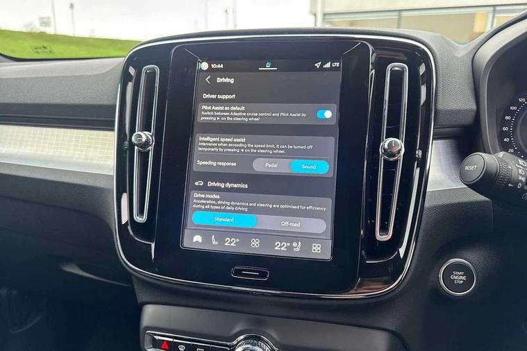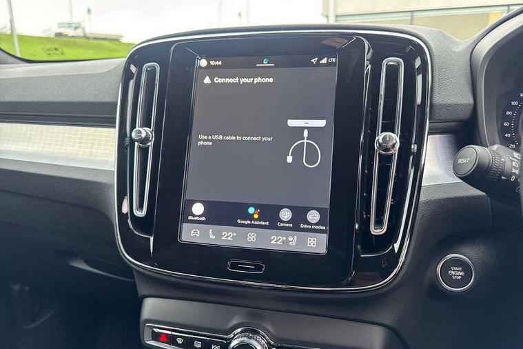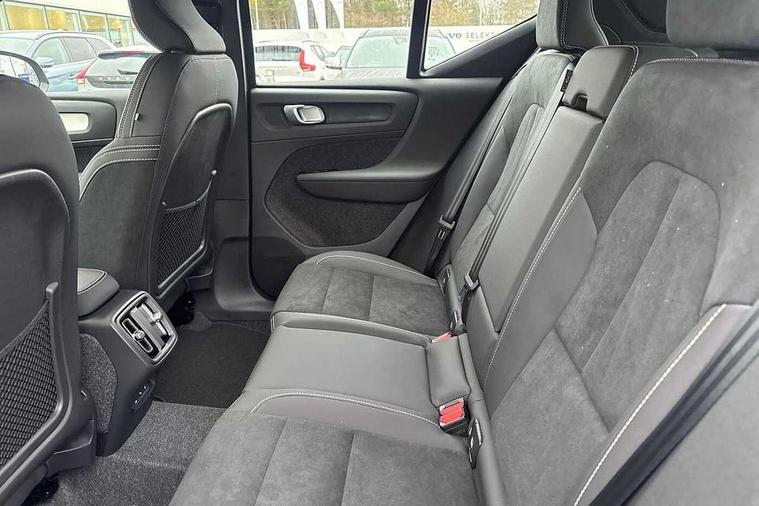 12.3" Progressive Driver Display, 9" centre console portrait touch screen, Adjustable steering wheel force, Android auto (Wired), Apple carplay (wired), Bluetooth handsfree system, Driver alert control, Driver assistance (pilot assist and adaptive cruise control), Driver awareness - Blind spot information system with steer assist, cross traffic alert with autobrake and rear collision warning and mitigation, E-call, Front and rear parking sensors, Front park assist, Google automotive services - Enabled entertainment apps, navigation with google maps, voice recognition with google assistant, Hands free power tailgate, Intelligent speed assistance, Lane keeping aid, Oncoming Lane Mitigation, Speed sensitive steering, Volvo cars services with app - Driving journal, emergency and breakdown call, engine remote start, remote door locking/unlocking and vehicle dashboard, Wireless/Inductive Mobile Phone Charging, Automatic transmission with start/stop and manual change functions, Dynamic chassis, DAB Digital radio, Steering wheel mounted remote controls, Adaptive brake lights with high level LED brake lights, Auto dimming feature for exterior door mirrors, Auto dimming interior mirror, Auto folding and heated power door mirrors, Automatic headlamp levelling, Automatic LED Headlights + Active high beam incorporating daytime running lights, Front aluminium tread plates, Front and rear electric windows, High gloss black front and rear skid plate, High gloss black front bumper deco, High gloss black mesh front grille with high gloss black surround, High gloss black window trim, Home safe and approach lighting, Integrated roof rails in high gloss black, LED front fog lights, Puddle lights, Rain sensor with automatic windscreen wiper activation, Rear side wing doors, Rear wiper, Roof antenna, Roof spoiler, Visible VIN plate, 12V socket in front tunnel console and luggage compartment, 2-Zone electronic climate control with CleanZone air quality system and pollen filter, 3 seat bench in 2nd row, 3 Spoke tailored steering wheel with chrome trim, 60/40 versatile split folding rear seat, Centre console cupholders and storage, Charcoal carpet and floor mats, Charcoal headlining, Connect suede textile/microtech upholstery, Flexible load floor and grocery bag holder, Front headrests, Front seat cushion extensions, Glovebox bag hook, Heated front seats, Height adjustable passenger seat, Height/reach adjustable steering column, High gloss centre tunnel deco, High level illumination - Front door pocket, front side step (under door), tailgate, instrument panel, front door inlay, rear courtesy&reading lights, Integrated waste bin, Isofix attachments on outer rear seats, Load cover, Load protection net, Mid level illumination - Front footwell, luggage & glovebox compartment, front cabin courtesy & reading lights, illuminated vanity mirrors+ticket holder, Multi directional lumbar support for driver and passenger seat, Power driver seat with memory + exterior mirrors memory, Rear armrest with cupholders, Rear headrests, Single front passenger seat, Underfloor luggage compartment storage, Climate pack without heated front seats - XC40, 3x3 point rear seatbelts, City safety with steering support with Pedestrian + cyclist + front collision warning with full auto brake and rear auto brake, Driver and passenger airbags, Drivers knee airbag, Electronic parking brake with auto hold, First aid kit, Front and outer rear seatbelt reminder and pretensioners, Front seats SIPS airbags, Hill descent control - Off-road drive mode, Hill start assist, IC (Inflatable Curtains) - Full Length, Passenger airbag cut-off device, Power child locks on rear doors, Road sign information display, Run off Road Protection, SIPS (Side Impact Protection System), Slippery road and hazard light alert, Stability and Traction Control with Spin control, Engine Drag Control and Corner Traction Control, Tyre pressure monitoring system, Vehicle deceleration control with Anti-lock Brake System, Electronic Brake Distribution and Emergency Brake Assist, Warning triangle, WHIPS whiplash protection system - front, 2 x Key integrated remote control central locking including with deadlocking system and auto open/close windows, Anti-theft alarm including immobiliser/volume sensor + level sensor, Keyless drive includes keyless entry and keyless start, Locking wheel nuts,
