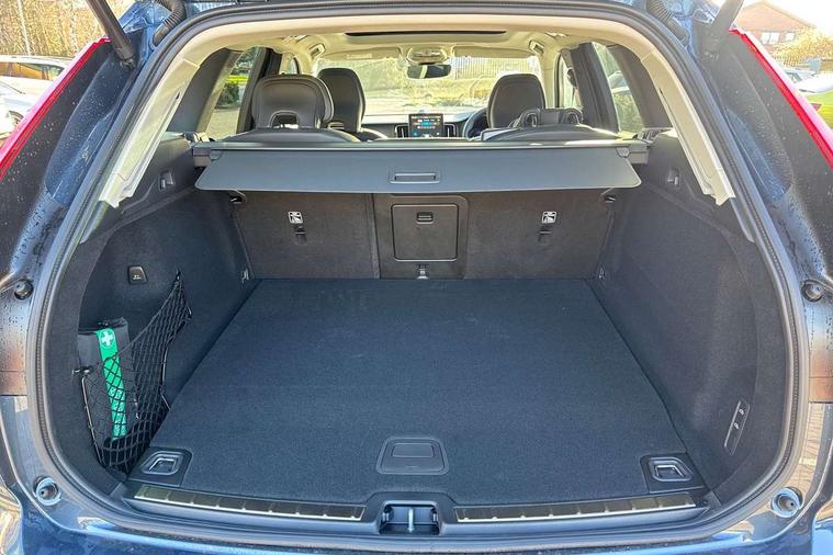 11.2" centre console touch screen, 12.3" Progressive Driver Display, 360 degree surround view parking camera with side proximity sensors, Adaptive cruise control, Adjustable steering wheel force, Android auto (Wired), Apple carplay (wired), Bluetooth handsfree system, Drive mode settings, Driver alert control with lane keeping aid, Emergency services call system, Front and rear park assist, Google Automotive Services, Intelligent speed assistance, Oncoming Lane Mitigation, PAS, Power operated tailgate with handsfree opening and closing, Service interval indicator, Speed limiter, Speed sensitive steering, Trip computer, Volvo cars services with app, Volvo on call with App, Wireless/Inductive Mobile Phone Charging, 2 phase on board charger 6.4kW (home charging limited to 3.7kW), 6m 3 phase 16amp Type 2 / mode 3 charge cable, 8 speed automatic transmission with start/stop + manual change functions, Active four-C chassis + four corner adaptive damper with electronic rear air suspension, Electric rear axle drive, Recharging port located in nearside front wing, DAB Digital radio, Low speed exterior sound speaker, Premium Sound by Bowers and Wilkins, dirac live, dolby pro logic II surround sound, 14 speakers/1100W output and subwoofer, Steering wheel remote infotainment controls, Active bending headlights with adaptive shadow technology, Adaptive brake lights with high level LED brake lights, Auto dimming interior + exterior mirrors, Automatic headlight levelling system, Automatic LED Headlights + Active high beam incorporating daytime running lights, Dark tinted windows for rear side windows and cargo area, Electric adjustable/heated/auto power folding door mirrors, Electric front+rear windows, Front aluminium tread plates, Headlight cleaning system, High gloss black door mirrors and window surround, High gloss black front and rear bumper decoratives, High gloss black mesh front grille with high gloss black surround, Home safe and approach lighting, Integrated roof rails in high gloss black, Power glass tilt and slide panoramic sunroof with sun curtain, Puddle lights, Rain sensor with automatic windscreen wiper activation, Rear side wing doors, Rear wiper, Roof antenna, Roof spoiler, Tinted windscreen, Visible VIN plate, 12V socket in front tunnel console and luggage compartment, 2 zone electronic climate control with Clean zone air quality system and pollen filter, 3 seat bench in 2nd row, A-pillar parking ticket holder, Air purifier particulate matter (PM) 2.5 filter, B Pillar ventilation, Bright metal luggage scuff plate, Centre console cupholders and storage, Charcoal floor mats, Front and rear courtesy lights, Front and rear door pocket illumination, Front cupholder illumination, Front footwell illumination, Front reading lights, Front seat cushion extensions, Glovebox compartment with illumination, Head restraints for all seats, Heated front seats, Heated steering wheel, Height/reach adjustable steering column, Illuminated luggage compartment, Illuminated vanity mirrors + ticket holder, Inner door release handle illumination, ISOFIX attachment on outer rear seats, Load cover, Load protection net, Multi directional lumbar support, Power driver seat with memory + exterior mirrors memory, Power folding rear headrests, Power passenger seat with memory, Rear armrest with cupholder, Rear footwell and front and rear side step illumination, Rear reading lights, Rear seat concealed storage, Single front passenger seat, Tailgate illumination and ambient door lighting, Underfloor stowage compartment, Versatile split folding rear seat - 60/40, Driver assist pack without Adaptive cruise control - XC60, 5 three point seatbelts, City safety with steering support with Pedestrian + cyclist + front collision warning with full auto brake and rear auto brake, Drivers knee airbag, Dual stage driver/passenger airbags, Electronic parking brake with auto hold, First aid kit, Front seats SIPS airbags, Hill descent control - Off-road drive mode, Hill start assist, IC (Inflatable Curtains) - Full Length, Passenger airbag cut-off device, Power child locks on rear doors, Run off Road Mitigation, Run off Road Protection, Seatbelt reminder and pretensioners, SIPS (Side Impact Protection System), Slippery road and hazard light alert, Stability and Traction Control with Spin control, Engine Drag Control and Corner Traction Control, Tyre pressure monitoring system, Vehicle deceleration control with Anti-lock Brake System, Electronic Brake Distribution and Emergency Brake Assist, Warning triangle, WHIPS whiplash protection system - front, Anti-theft alarm including immobiliser/volume sensor + level sensor, Key integrated remote control central locking + fuel flap with deadlocking system and auto open/close power windows, Keyless Drive (includes Keyless Entry and Keyless Start), Locking wheel nuts, Private locking for tailgate, Tailored instrument panel with contrast stitching, Summer tyres, Tyre sealant kit + 12v compressor,
