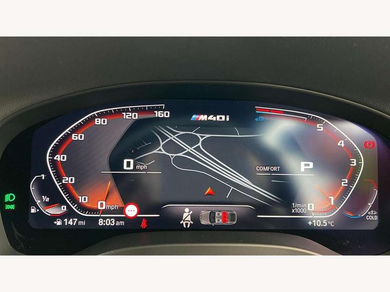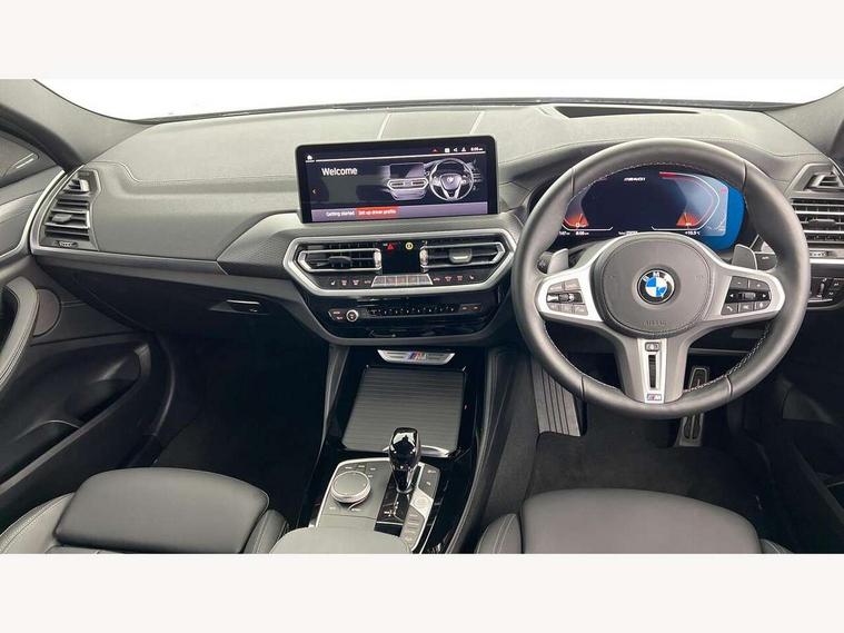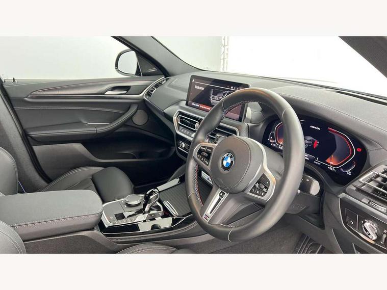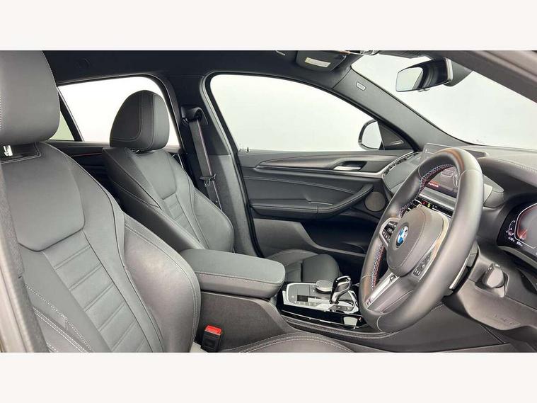 Active Guard incl approach control warning with city brake function and person warning with city brake function, Active Guard Plus incl front collision warning with brake intervention, Attentiveness assist, Auto start-stop, Automatic operation of tailgate, BMW ConnectedDrive online services, BMW Live Cockpit Professional with 12.3" instrument display with Intelligent Voice Assistant, BMW Teleservices, Brake pad wear indicator in front and rear, Check Control warning system for monitoring of lights and door/luggage compartment open warning, Condition based service - BMW service history, electronic service booklet, integrated owner's handbook, Driving experience switch, Electric bootlid, iDrive Controller with 8 favourite buttons, Instrument cluster with speedometer with mph readout, tachometer, fuel gauge and oil temperature gauge, Language version English, Lights on warning by audio warning signal when ignition is switched off, Oil sensor for level and grade, warning by check control system, On board computer - average speed+fuel consumption, service interval, clock/date, odometer/trip meter, outside temperature display and ice warning, Optimum shift indicator, Park distance control (PDC), Personal Profile - automatic lock when driving away selectable, Servotronic system, Variable sports power steering, Double joint spring strut front axle, Double VANOS, Drive performance control - ECO PRO, comfort and sport modes, EU6 emissions management, Five link rear suspension, High precision injection, M Adaptive suspension, M Sport differential, Multiple control arm rear axle, Performance Control, Sport automatic transmission with gearshift paddles, Twin scroll turbocharger with Valvetronic, 2x USB Type C ports in front centre console for charging and data transfer, 2x USB Type C ports in rear centre console for charging, BMW professional radio/CD/MP3, DAB tuner, Acoustic glass, Automatic parking function on passenger's side exterior mirror, Automatic windscreen wipers and automatic headlight, Black chrome tailpipe finishers, Black finish on B pillars, Black kidney frame and nuggets painted in high-gloss black, BMW emblem base at rear in high-gloss black, Body colour door handles, Body colour roof mouldings, Body coloured bumpers, Chrome exhaust tailpipes in split left and right, Direction indicator, side repeaters, integrated in exterior mirrors, Door sill strips, Dynamic brake lights, Electric folding wing mirrors with auto dimming, Electric front and rear windows with fingertip open/close + anti-trap facility and comfort closing function, Electrically adjustable and heated door mirrors, Electro-chrome auto-dimming rear view mirror, Energy absorbing foam within the front bumper, Extended high gloss shadow line exterior trim, Follow me home headlight function, Front and rear bumper system with replaceable deformation elements, Full LED L shape 3D tailights, Glacier silver metallic matt in side sills, Green tinted heat insulating glass, Headlight beam throw control, Heated windscreen washer jets, High gloss black front door sill finishers with BMW designation, Interior/exterior mirrors with auto anti dazzle, LED High level third brake light, LED rear lights, Lightweight engineering, M black mirror caps, M designation side exterior badges, Model designation, Rain sensor + automatic driving lights control, Rear side wing doors, Rear wiper, Reversing lights, Shark fin antenna, Sun protection glass, Tinted passenger side exterior mirror, Visible VIN plate, Windscreen wipers with adjustable interval, 12V power socket in front centre console, 12V power socket in front storage compartment, 3 zone automatic air conditioning, 40/20/40 split folding rear seats with backrest, Anthracite headlining, Electric adjustable front seats with memory function for driver seat, Foldable storage floor with compartment, Front and rear bottle holders integrated into door trim storage compartments, Front and rear side armrests integrated into door trim, Front centre armrest with storage compartment, Front passenger seat, Front/rear reading lights, Heated front seats, Height adjustable front/rear head restraints, Leather gear knob, Lockable glove compartment, Luggage compartment lighting, M Sport multifunction leather steering wheel, Make-up mirror lights, Microfilter and active carbon filter, Parcel shelf removable and storable under boot floor, Reach + rake adjustable steering column, Rear centre armrest with 2 cupholders, Storage compartment in rear centre console and front/rear door trims, Storage compartment lighting in front center armrest, Sunvisors with vanity mirrors and ticket pocket, Synthetic leather door trims, Three rear headrests, Through loading system, Toolkit located in luggage compartment, Two front cupholders with removable oddments tray/lid, Velour floor mats, Visual exit area and front and rear door recognition, Welcome light (no extra light) with illumination in the colour white, Ambient lighting pack - X4, Connected package pro - X4, M Aerodynamic pack - X4, Non Smokers pack, 3 point seatbelts on all seats, Active protection, ADB - Automatic Differential Brake, Anti-lock braking system (ABS) with brake assist, Automatic Stability Control (ASC), Battery safety cut-off, BMW emergency call, Brake drying, Brake energy regeneration, Braking pre-tensioning, Child proof locking system in rear door, Child seat ISOFIX attachment rear outer seats, Cornering brake control (CBC), Crash Sensor - activation of central locking release, hazard warning light and interior lighting, safety battery terminal clamp and trigger e-Call, Deactivation of fuel pump in the event of a crash, Driver and front passenger knee airbag, Driver/front passenger airbag, Driver/front passenger side airbags, Dynamic brake control, Dynamic stability control + (DSC+), Dynamic Traction Control - DTC, Electromechanical parking brake, Front and outer rear pyrotechnic belt tensioners, Front passenger manual airbag deactivation, Front seatbelt f