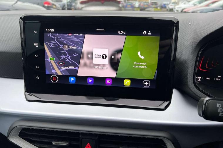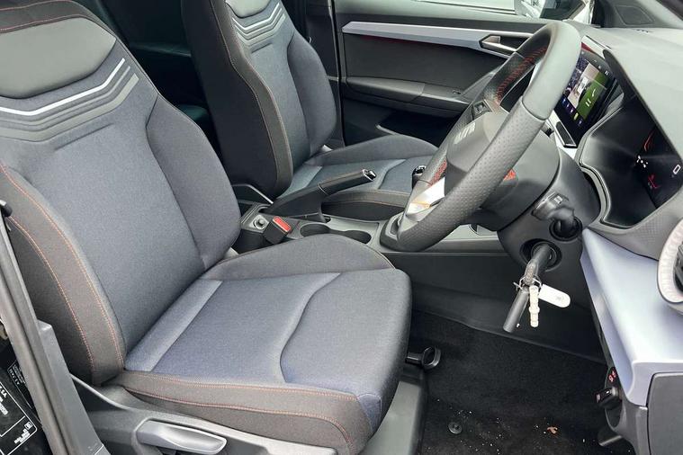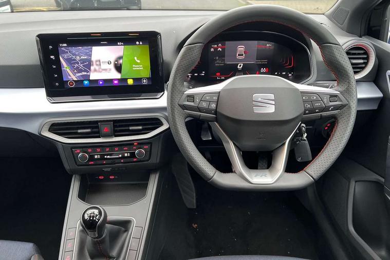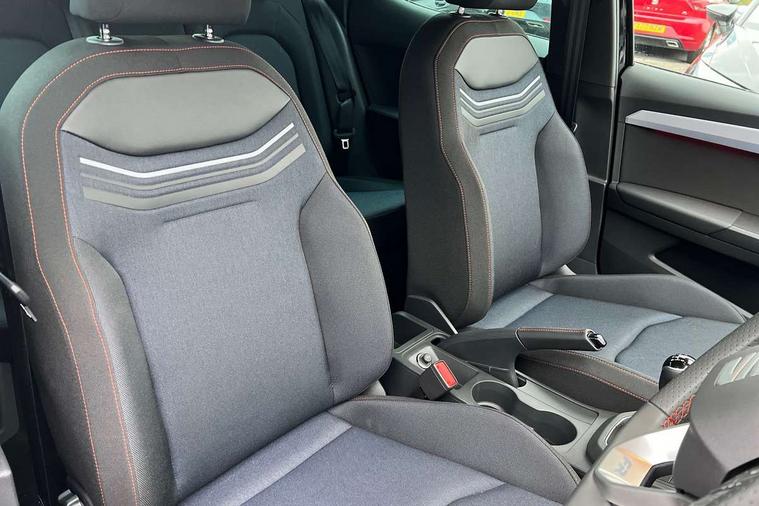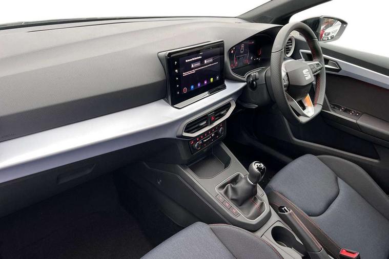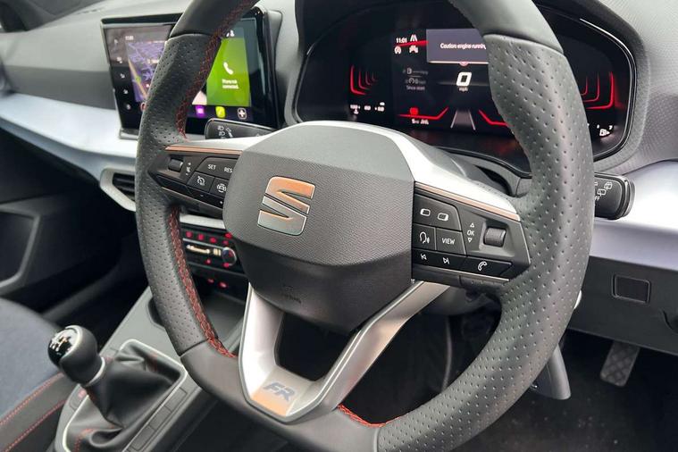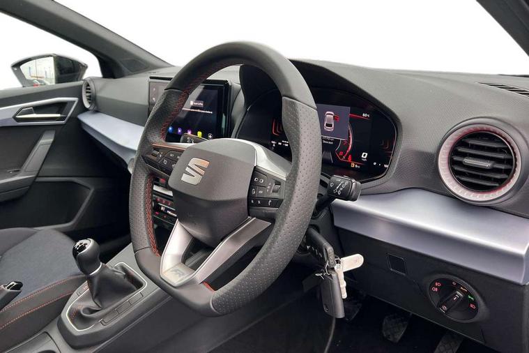 'Lights On' Reminder warning buzzer, 8" Digital cockpit, 9.2" touchscreen navigation system with type C USB socket, Voice control and DAB/AM/FM radio, Auto start and stop system, Bluetooth audio streaming with handsfree system, Digital clock, E-call, Full link smartphone integration with mirror link, wireless apple carplay, Google android auto + USB Type C cable for apple and android devices, Lane assist, Low fuel warning light, Outside temperature gauge, Power Steering, Rear parking sensor, Seat connect plus with safety, service, remote and online, SEAT drive profiles and ECO function, SEAT logo boot release, Speed limiter, Traffic sign recognition, Trip computer, Sports suspension, Auxiliary input socket, Radio/MP3 player, SD card slot, Steering wheel mounted controls, Anti theft roof antenna, Auto dimming rear view mirror, Automatic rain sensing wipers, Black door mirror caps, Body colour bumpers, Body colour door handles, Brilliant black window surrounds, Dark tinted rear windows, Electric adjustable/heated/folding door mirrors, Electric front windows, Electric headlight adjustment, Electric rear windows, Front/rear fog lights, FULL LED automatic headlights with dynamic headlight range control, coming and leaving home, LED daytime running lights, LED 3rd brake light, LED tail lights, Rear roof spoiler with FR twin exhausts, Rear side wing doors, Rear wiper, 3 seat bench in 2nd row, 60/40 split folding rear seat, Ambient interior lighting, Chrome detailing and black headlining, Cloth upholstery, Dual zone climate control with combination filter, Front courtesy lights, Front cupholders x 2, Front reading lights, Gear shift indicator, Glovebox, Height adjustable front and rear headrests (five), Height adjustable front seats, Height/reach adjust steering wheel, Illuminated air vent surrounds, Illuminated boot, Instrument lighting with brightness control, Isofix, Leather multifunction flat bottomed sports steering wheel, Passenger sunvisor, Single front passenger seat, Sports seats, Sunvisors with mirror and driver side card holder, Safety and driving pack (S) - Ibiza, 3 point seatbelts on all 3 rear seats, ABS, Active front headrests, Child locks on rear doors, Electronic stability control, Energy recovery system, Front driver and passenger side airbags with curtain airbag and front passenger airbag deactivation, Hill hold control, Multi-Collision braking, Seat belt reminder for front and rear seats, Tiredness recognition system, Tyre pressure monitoring system, Locking wheel bolts, Perimeter alarm and interior monitoring with backup horn and tow away protection, Remote central locking + deadlocks, 17" Alloy wheels in Brilliant silver,