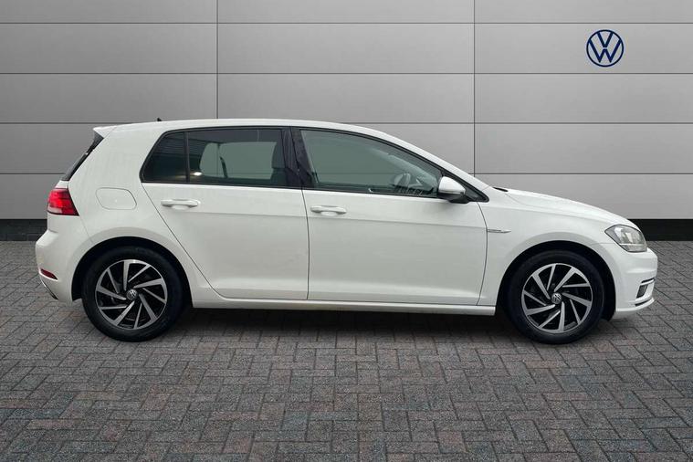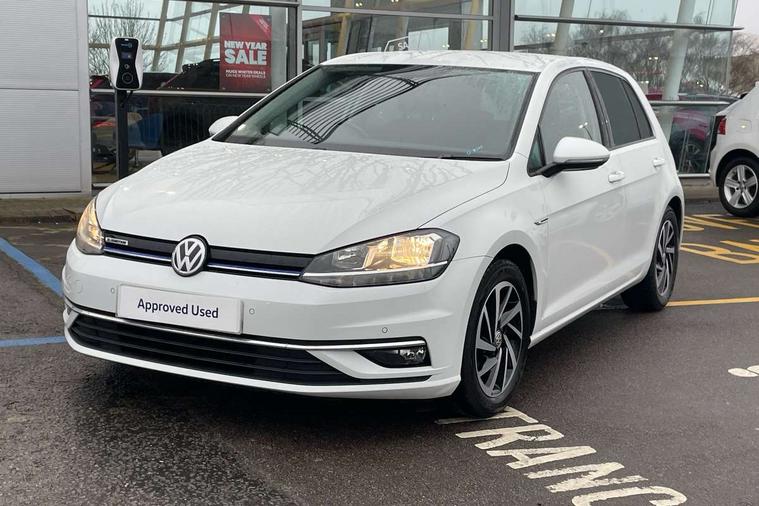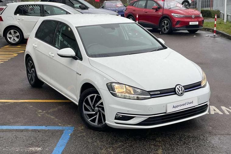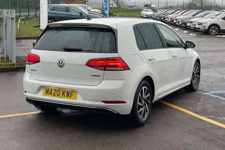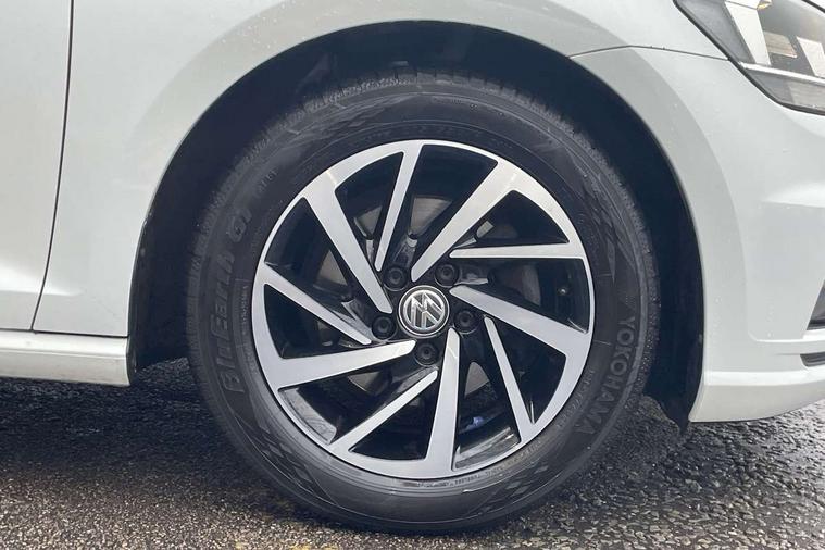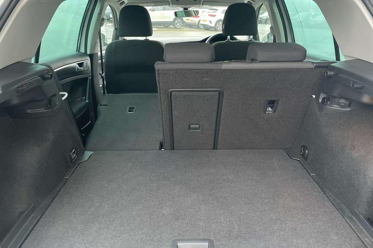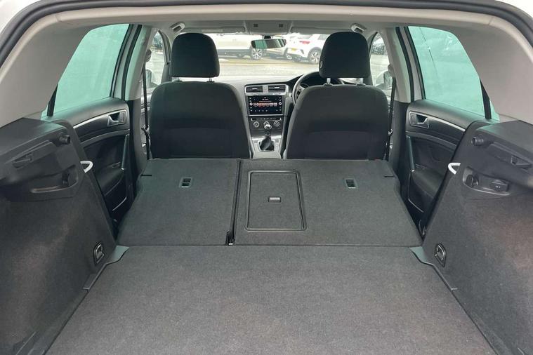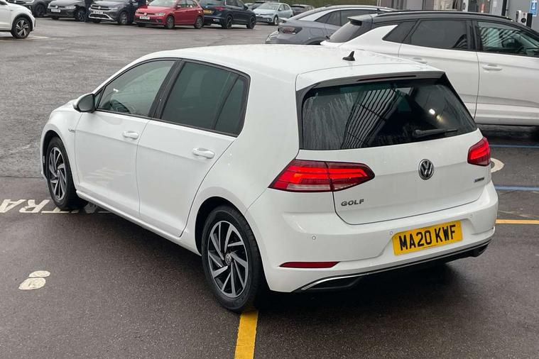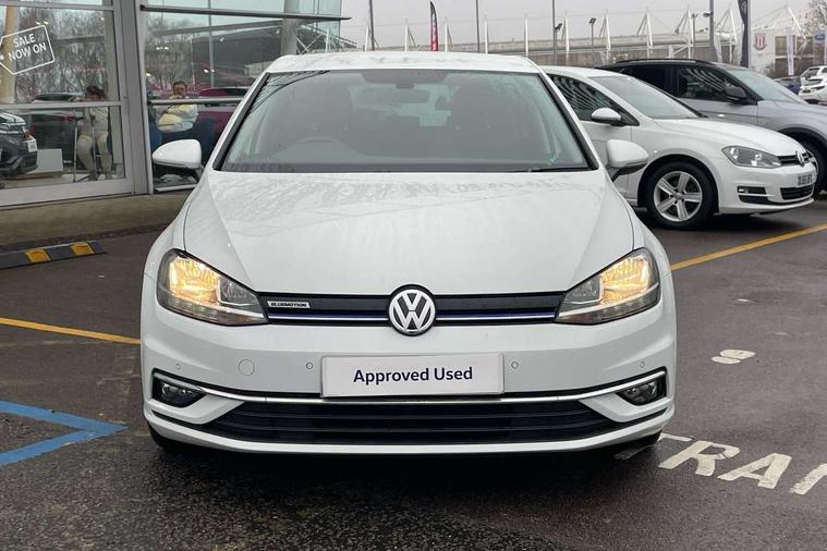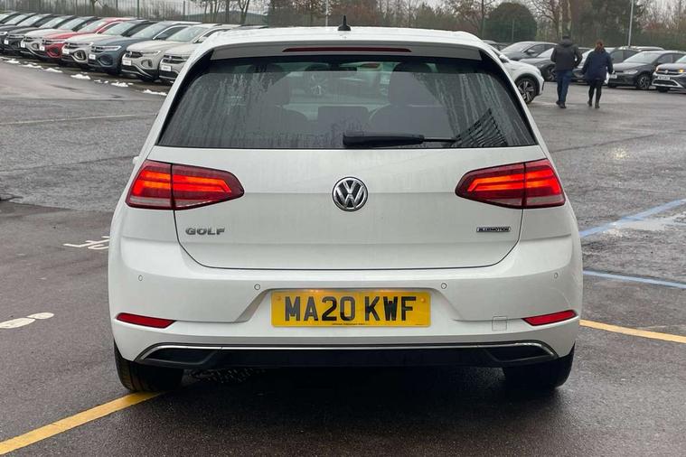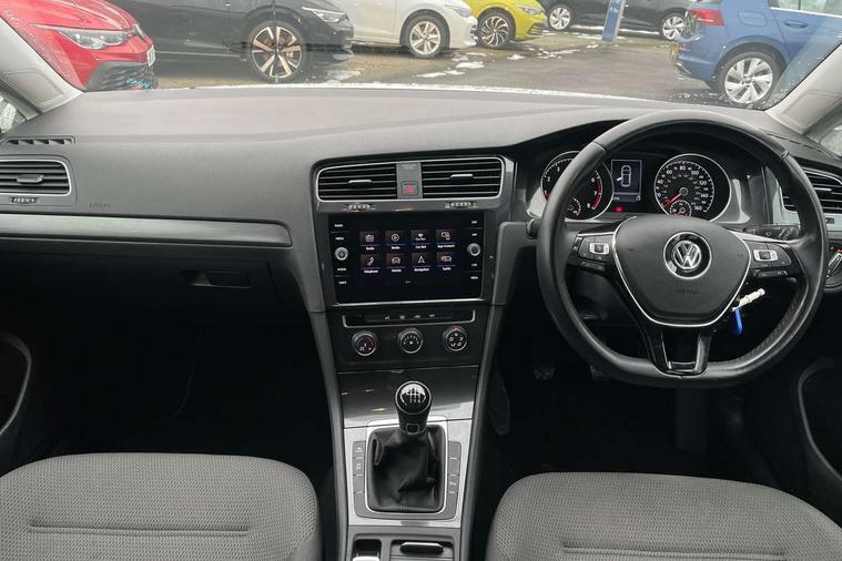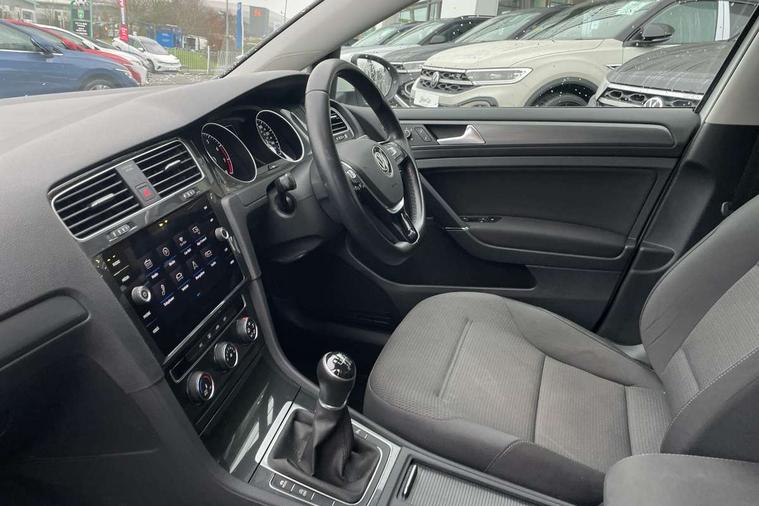 'Lights On' Reminder warning buzzer, ACC - Adaptive cruise control with front assist, forward collision warning, distance monitoring, city emergency brake and speed limiter, Bluetooth telephone and audio connection for compatible devices, Brake pad wear indicator warning light, Driver alert system, Driving Mode Selection with four preset modes - Eco, normal, sport or individual modes, Instrument cluster in white, Multifunction computer with visual gear change recommendation for fuel consumption, Power assisted speed sensitive electro-mechanical steering, Push tank flap, Speed limit display, Speedo, rev counter, electronic odometer, trip, service interval display, exterior temperature and fuel gauge, Stop/start system, Think blue trainer driver tips and journey analysis, Warning buzzer and light for front seatbelts unfastened, We Connect Go Dongle, Battery regeneration during braking, Standard suspension, XDS electronic differential lock, Composition media system, DAB Digital radio receiver, Driver Personalisation profile selection, MP3/WMA compatability, Multi device interface (MDI) with USB connection, Personalisation 1.1 profile for media, Premium USB cable in choice of either Apple or Android smartphone compatibility, SMS Functionality, Title and cover art display, 4 X 20W output, USB connection and socket, USB and SD card connectivity, Aerodynamic black radiator grille with chrome trimmed insert, Auto dimming rear view mirror, Black rear diffuser, Body colour bumpers, Body colour door handles, Body colour door mirrors with integrated indicators, Dusk sensor + automatic driving lights, Electric front windows, Electric rear windows, Electrically adjustable and heated door mirrors, Fully galvanised body, Heated rear windscreen, Hidden exhaust pipe, High level 3rd brake light incorporating LED Technology, LED front fog lights with static cornering light function, Range adjustable headlights via infotainment system with LED daytime running lights, Rear fog lamp, Rear number plate lights incorporating LED technology, Rear tinted glass 65% light absorbing from B pillar backwards, Rear window aerial, Rear window wash/wipe with intermittent wipe, Reflectors in all doors, Remote electrically foldable door mirrors, door mirror puddle lights and reverse activated kerb-view adjustment on passengers door mirror, Tailgate with integrated rear roof spoiler, Windscreen wipers/ intermittent wipe + 4 position delay, 12V socket in luggage compartment, 3 rear headrests, 4 load lashing points in luggage compartment, 60/40 split folding rear seat backrest, Auto fold down lever in rear seat backrest, Bag hook in luggage compartment x 2, Cooled glovebox, Cover for storage compartment in centre, Cupholder cover, Dust/pollen filter, Front and rear reading lights X 2, Front centre armrest with storage compartment and two rear air vents, Front seat back storage pockets, Grab handles front x 2, rear x 2 with integrated coat hooks, Height and reach adjustable steering wheel, Illuminated vanity mirrors, Instrument lighting white adjustable panel illumination, Interior light delay, Isofix preparation for 2 rear child seats, Load through provision with rear centre armrest and cupholders x2, Luggage compartment lighting, Overhead storage box, Passenger underseat drawer, Pearl grey headlining, Storage box in luggage compartment, Storage compartment in roof console with cover, Storage compartments in centre console, Storage compartments in front doors, Storage compartments in rear doors, Stowable luggage compartment cover, Sun visors, Variable boot floor, height adjustable and removable, Convenience Pack - Golf, Light and Sight pack - Golf, Mirror pack - Golf, 3 rear three point seatbelts, Airbags - Driver's and front passenger's, curtain airbag, Driver's knee, front side impact and passenger's airbag deactivation switch, Anti-lock Braking System (ABS) with Hydraulic Brake Assist (HBA), Automatic post collision braking system, Child locks on rear doors, Driver/Passenger optimised head restraints, Electronic parking brake with auto hold, Electronic stability control (ESC) including Electronic differential lock (EDL) and ASR (Traction control) with deactivation via infotainment system, Front ventilated disc brakes and rear disc brakes, Pre crash preventive occupant protection, Three point height adjustable front seatbelts with tensioners, Tyre pressure loss indicator, Alarm with interior protection and deactivation via infotainment system, Electronic engine immobiliser, Brushed dark silver decorative inserts in dash and door panels, Chrome plated air vent surround, Chrome-plated light switch surround, Polar night black decorative inserts in centre console, Steel space saver spare wheel,