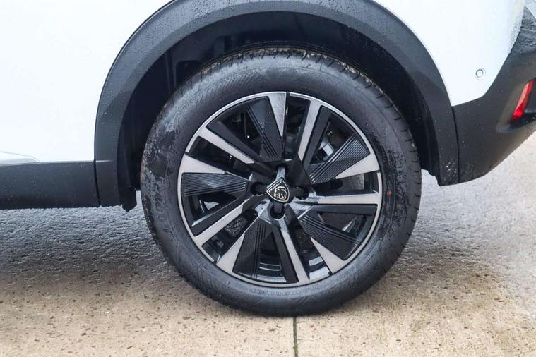 Bluetooth telephone facility, Driver attention warning, E-call, Exterior temperature indicator with ice warning, Front and rear parking sensors, Multi function trip computer, PEUGEOT i-Cockpit with 10" high definition capacitive touchscreen, PEUGEOT i-Cockpit with compact steering wheel, PEUGEOT i-Cockpit with configurable 3D headup instrument panel, PEUGEOT SOS and assistance, Speed limit recognition and recommendation, Wireless mirror screen with mirror link, apple carplay and android auto, Petrol Particulate Filter, 1x USB-C socket in rear and 1x USB-A socket in rear, 2 USB-C ports in the front, 6 speakers radio with mp3 compatible, DAB Radio (Digital Audio Broadcasting), Voice recognition for radio, navigation and telephony features, 2 X Rear number plate lights, Aluminium door sill scuff plates with peugeot lettering, Automatic hazard light activation upon heavy brake application, Black diamond roof, Black front wing trim with gloss black detail and GT badging, Body coloured exterior door handles, Dark tinted rear side and tailgate windows, Diamond black mirror shells, Diamond black rear roof spoiler, Electric, heated, and power folding door mirrors, Electrochrome rear view mirror, Front bumper - Meteor grey lower trim, Full LED headlights with smartbeam assist with auto height adjustment, Gloss black finish on B pillar, Gloss black rear cluster connecting strip, Gloss black roof bars, GT model designation badging on tailgate, Headlights left on audible warning, LED side indicator lights integrated into door mirrors, LED third brake light, Matt black finish side window surrounds (weather strips), Model designation badges front and rear, One touch electric front/rear windows with pinch protection, Radiator grille - body coloured vertical chequered grille, Radiator grille - gloss black top edge trim, Rear bumper with gloss black finish, Rear full LED 3D peugeot signature lights with daylight function, Rear reversing lights, Rear side wing doors, Rear windscreen wiper triggered automatically in reverse gear, Reinforcement of the front bumper, Tailgate with heated rear windscreen and wiper blade, Twin chromed exhaust pipes, Wheel arch extensions, 1/3 to 2/3 split folding rear seats, 12V socket, 3 seat bench in 2nd row, 8 Colour personalisable ambient lighting, Alcantara upholstery, Automatic air conditioning with pollen and active carbon filter, Central front armrest with storage compartment, Driver and front passenger sport seats, Electric power steering with reach and rake adjustable steering column, Front and rear carpet mats in black, Front LED interior light with 2 reading spotlights and push button rear interior light with timer, Front passenger seat manual adjustment - height, longitudinal and back rest angle, High centre console with 2 cup holders, ISOFIX child seat mounting points on passenger seat, Low centre console, Map pockets on front seat backs, Mistral full-grain perforated leather steering wheel with Adamite Green stitch detail and satin chrome 'GT' emblem, Multifunction steering wheel, Piano keys: Gloss black and chrome toggle switches to access main functions of the vehicle and touchscreen functions, Roof lining - Mistral black, Seatbelt unfastened on the move audible and visual alert for front and rear seats, Single front passenger seat, Two position modular boot floor, Navigation, vision and drive assist pack - 2008, Visibility pack - 2008, 2x 2nd row ISOFIX child seat mountings, ABS (Anti-lock Braking System) with EBD (Electronic Brakeforce Distribution) and EBA (Emergency Braking Assistance), Active safety brake with night function/cyclists/pedestrians, Adaptive driver and front passenger airbags with passenger airbag deactivation function, Advanced emergency braking system (AEB) with enhanced camera with the high beam and radar, Child locking functionality on rear doors, Driver/front passenger side airbags, Electric parking brake, ESP (Electronic Stability Program) + Hill Start Assist, Front and rear curtain airbags, Front and rear disc brakes, Front and rear three-point retractable seatbelts, with force limiters, Front optimised safety headrests and rear retractable headrests (x3), height adjustable, Tyre pressure sensor, Automatic door locking when moving off, Deadlocks, Electronic code immobiliser, PEUGEOT Open and Go keyless entry system, Thatcham category 1 alarm, Carbon effect Dashboard, front and rear door panel finish, 18" Evissa diamond cut black mist alloy wheels,