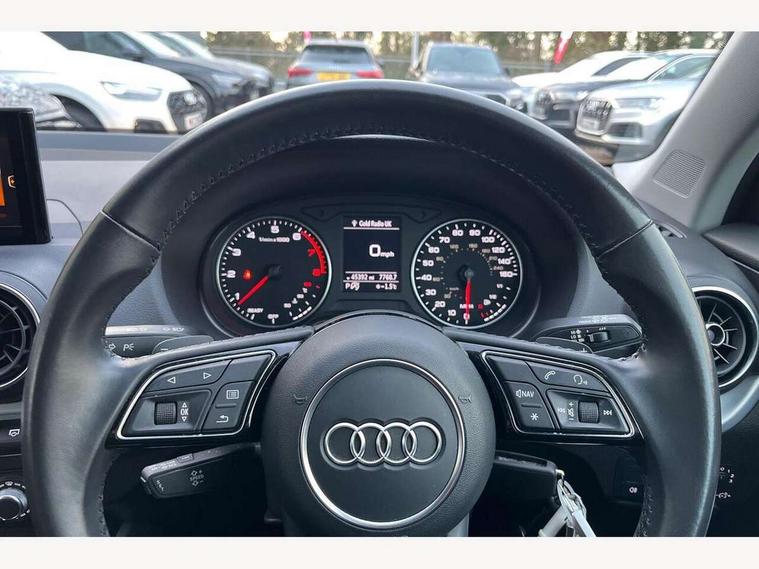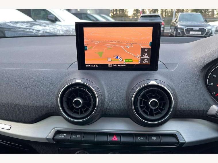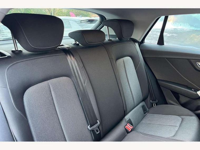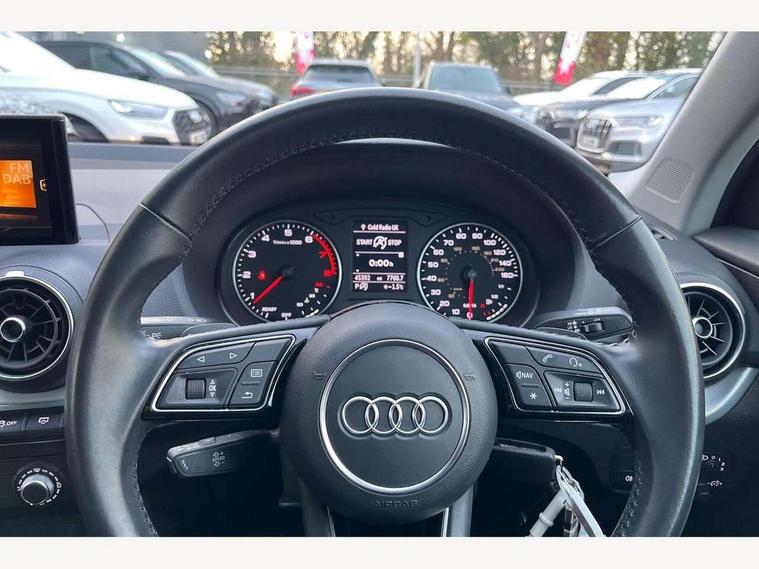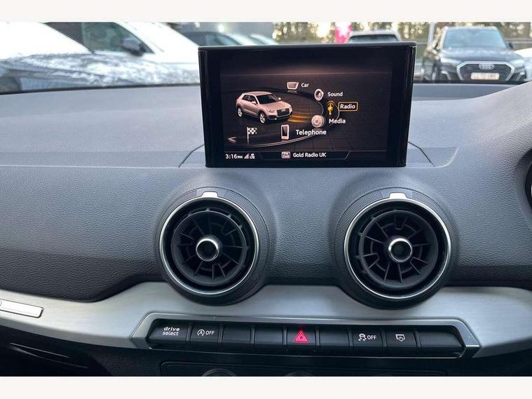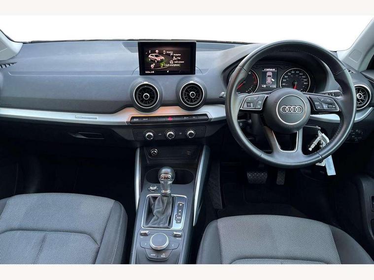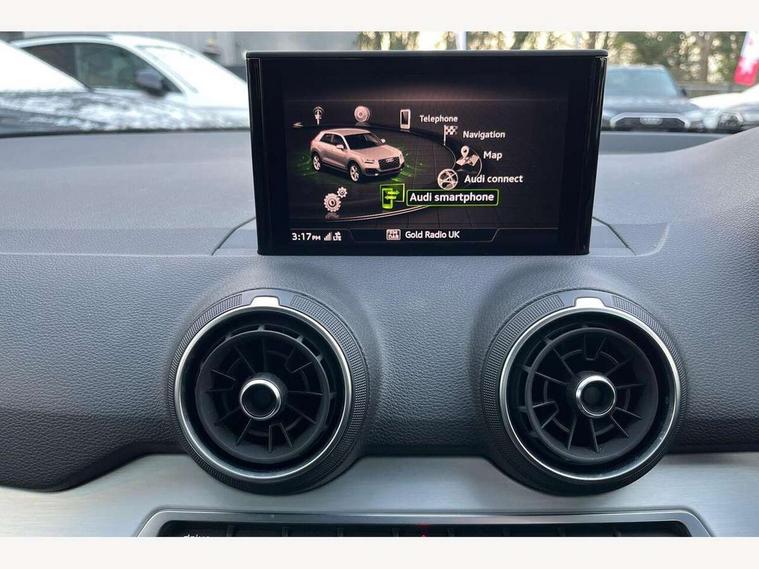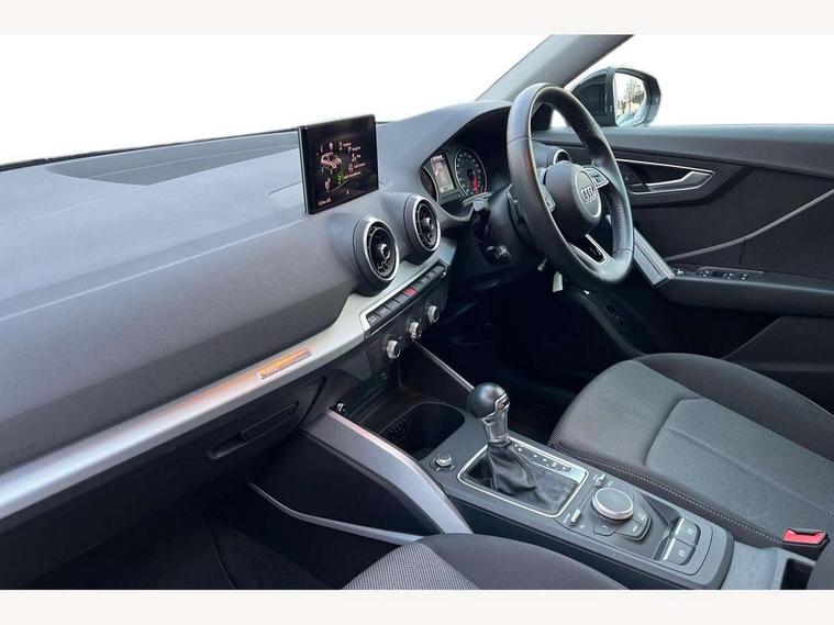 Audi drive select, Audi smartphone interface, Automatic start/stop system with recuperation, Bluetooth interface includes bluetooth audio streaming, Cruise control, MMI - Multi Media Interface control system, MMI SD card integrated nav with 3D map display, dynamic route guidance with TMC, MMI search, natural voice recognition and myAudi special destinations, Power operated tailgate, Progressive steering, Service interval indicator, Dynamic suspension, 2 x SDXC card reader, Audi music interface - apple iPod, apple iPhone, USB storage media, compatible MP3 players, 2 x USB charging points and 1 x Aux-in, CD Drive, DAB digital radio and AM/FM radio, MMI radio plus with 7" colour MMI screen and MMI controller, Air inlet in manhattan grey metallic, Black window trims, Body colour door mirrors, Chrome exhaust tailpipe, Electrically adjustable and heated door mirrors with integrated LED side indicators, Front and rear electric windows, Front underbody guard and rear diffuser trim in selenite silver, Front windscreen with grey tinted sunband, Halogen headlights including headlight range adjustment, High gloss black radiator grille, Interior mirror, LED indicator lights, Manual folding door mirrors, Rain and light sensors, Rear wiper, Side skirts in manhattan grey, Wheel arch trims in manhattan grey, 60/40 split folding rear seat bench, Door sill trims with aluminium inlay, Electronically operated child locks, Front centre armrest, Front headrests, Front sports seats, Front/rear floor mats, Height/reach adjust steering wheel, ISOFIX child seat mounting for front passenger with airbag deactivation and outer rear seat including top tether attachment point for outer rear seats, Manual seat adjustment including seat height adjustment for front seats, Storage compartments - Glovebox, cupholder compartment in centre console, storage compartment in rear centre console, front and rear door pockets, Three rear headrests, Titanium grey cloth headlining, Non smoking pack - Q2, 3x3 point rear seatbelts, 6 airbags - Front, curtain and front side airbags, Electromechanical parking brake, Electronic stabilisation control including ABS, ASR and EDL, Extended and proactive pedestrian protection, Hill hold assist, Multi collision brake assist, Pre-sense front with pedestrian recognition, Seatbelt monitoring, Tyre pressure warning light, Warning triangle and first aid kit, Anti theft alarm, Anti theft wheel bolts, Central locking system with remote control key, Aluminium interior element,